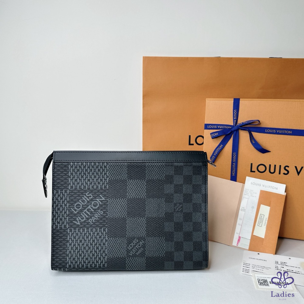 產品信息 【LV 棋盤格Voyage手拿包】 #閒置近新 #晶片版 #專櫃價約4萬 採用耐用的灰黑Damier Graphite帆布打造 可容納日常隨身物,6個內部信用卡夾層/1個內貼袋 整體包況約9成8新,二手商品均有正常使用/存放痕跡 型號:N60444 尺寸:27x21x6cm 附件:原廠盒、原廠紙袋、台灣購證(去個資)、發票、緞帶小卡 #B114062701