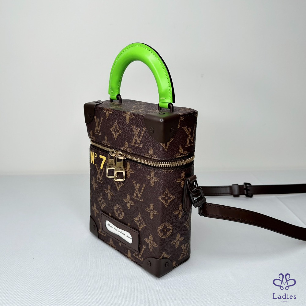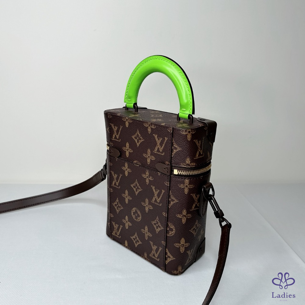 產品信息 【LV Vertical Box Trunk盒子包】 #晶片款 綴有Virgil Abloh第七個路易威登創作系列的「N°7」標誌 手袋造型小巧,但容量寬敞,足以收納日常必需品 配備螢光綠色手柄和襯裡,增添一抹亮麗色彩 設計獨特現代,適合日常使用 整體包況約9成新,二手商品均有正常使用/存放痕跡 型號:M59664 尺寸:15.5x22x7.5cm 附件:原廠盒、原廠防塵袋 #B114071601