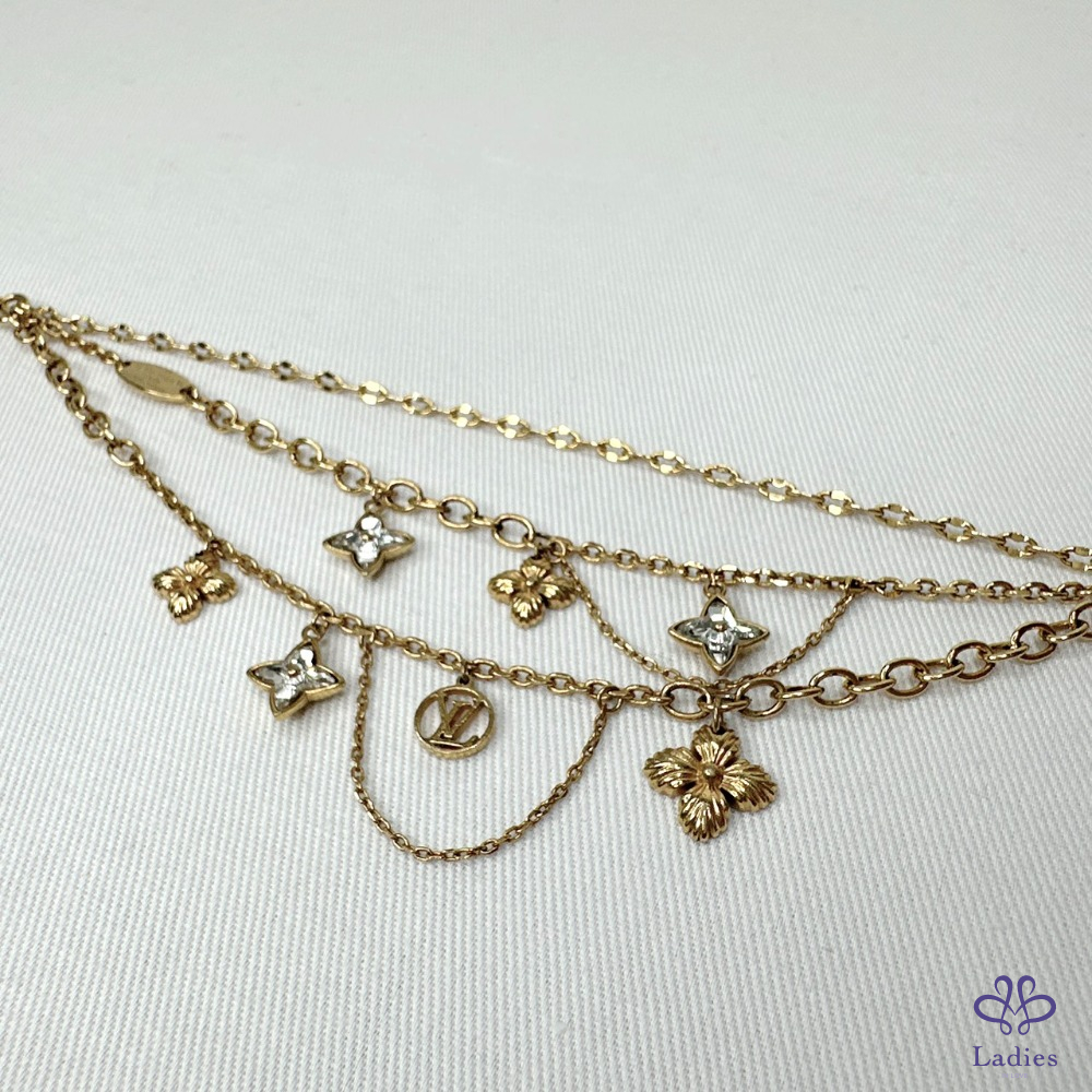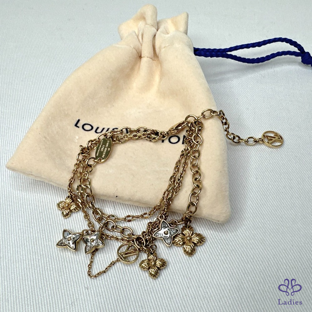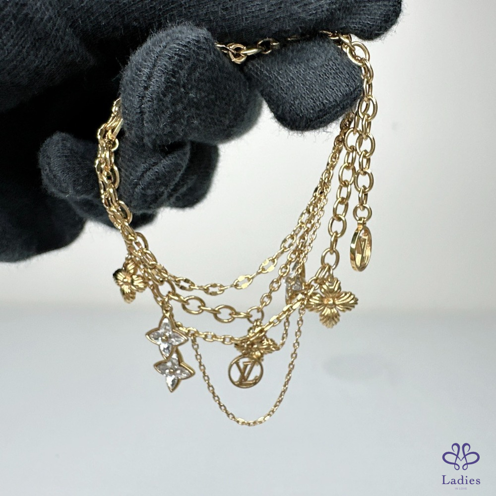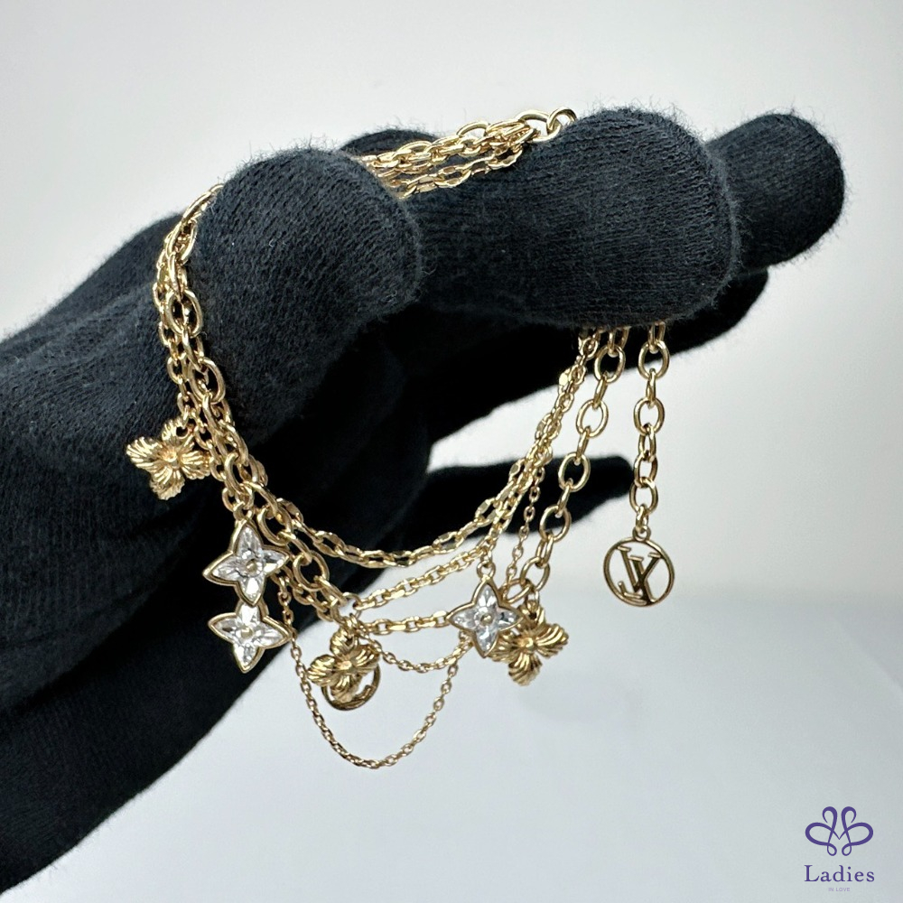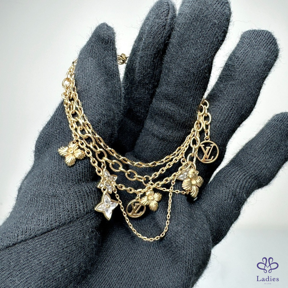 產品信息 【LV BLOOMING STRASS吊墜手鏈】 超仙的一款手鏈 一眼心動 戴起來三層細鏈吊墜效果 真的絕美 上手超好看 整體品項約9成新,二手商品均有正常使用/存放痕跡 型號:M68375 尺寸:15-19cm 附件:原廠盒、原廠防塵袋、台灣購證(去個資) #B114071501