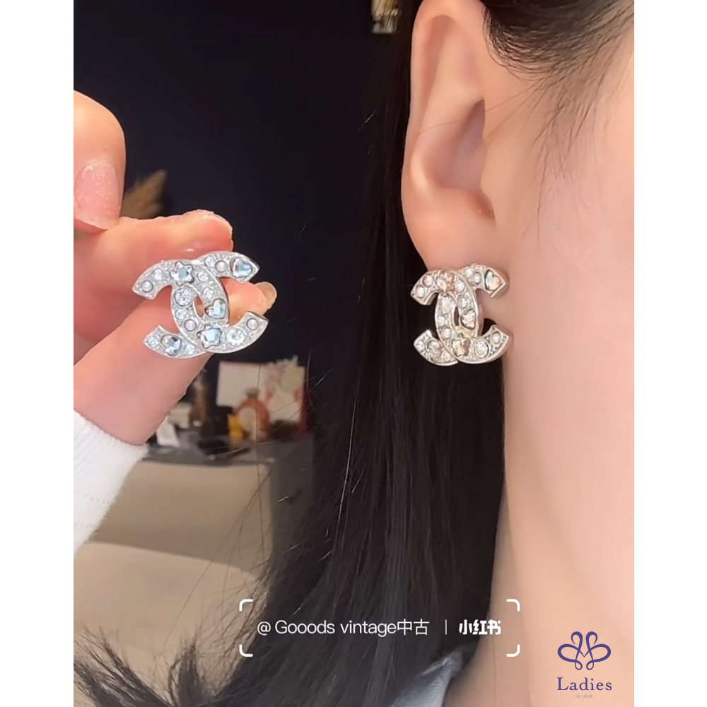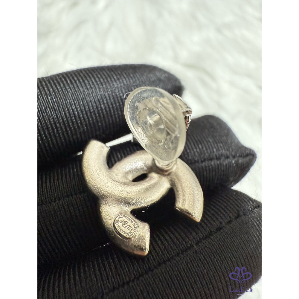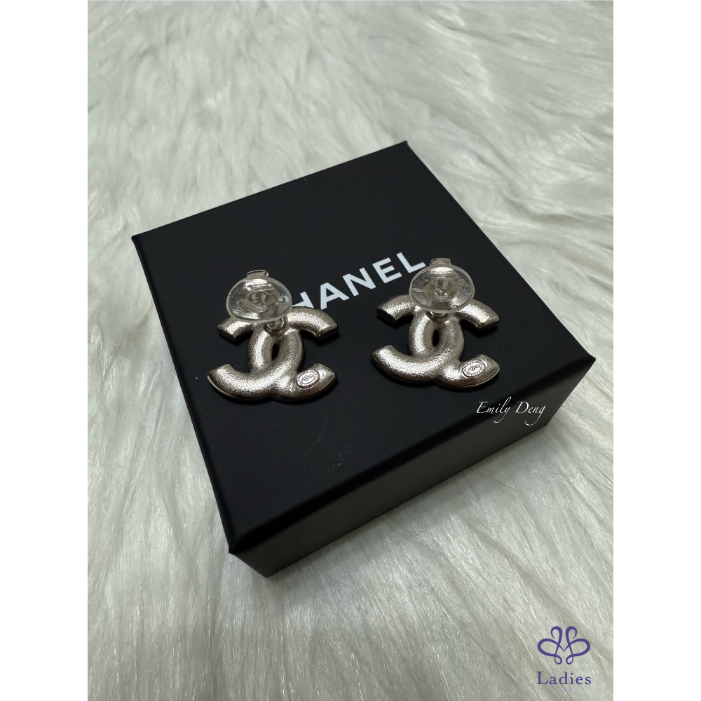 售# 小 香25P 銀色logo夾式耳環