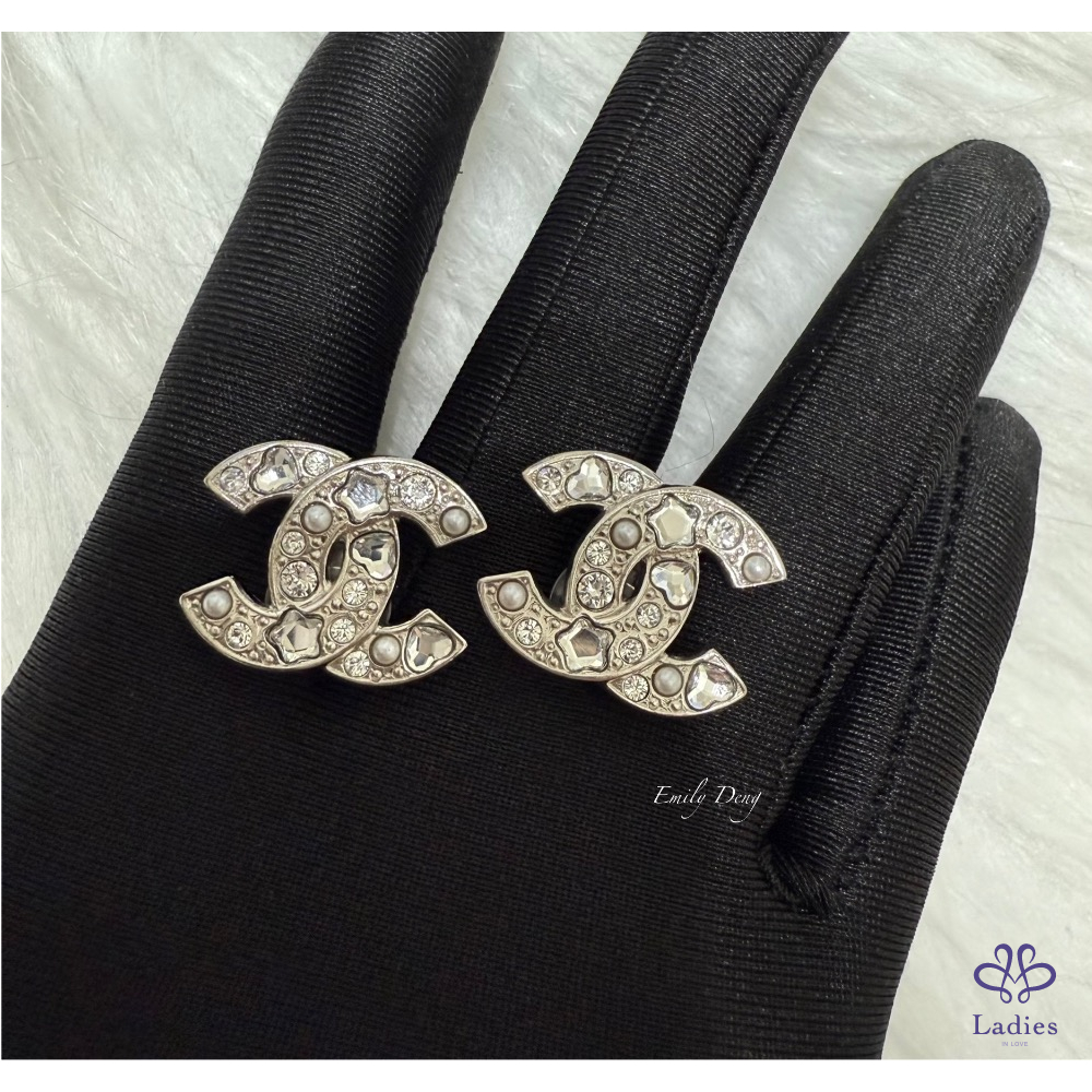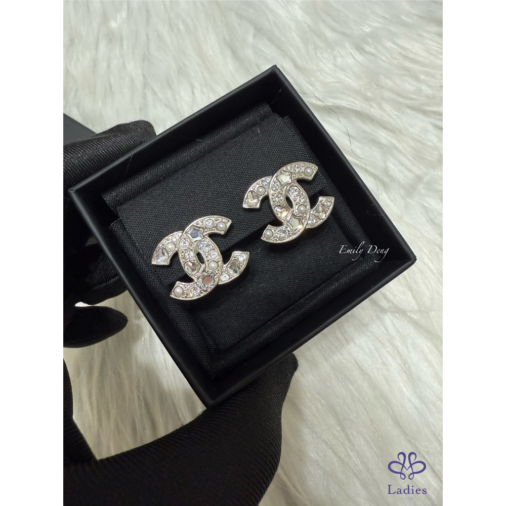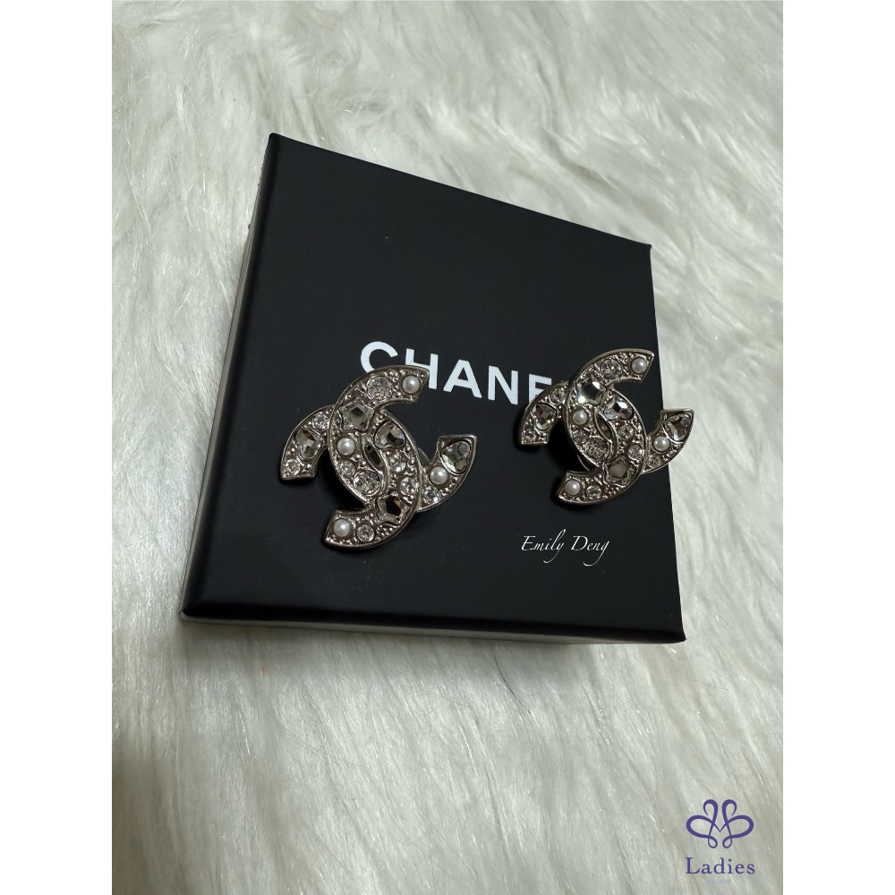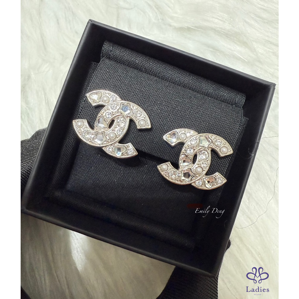售# 小 香25P 銀色logo夾式耳環