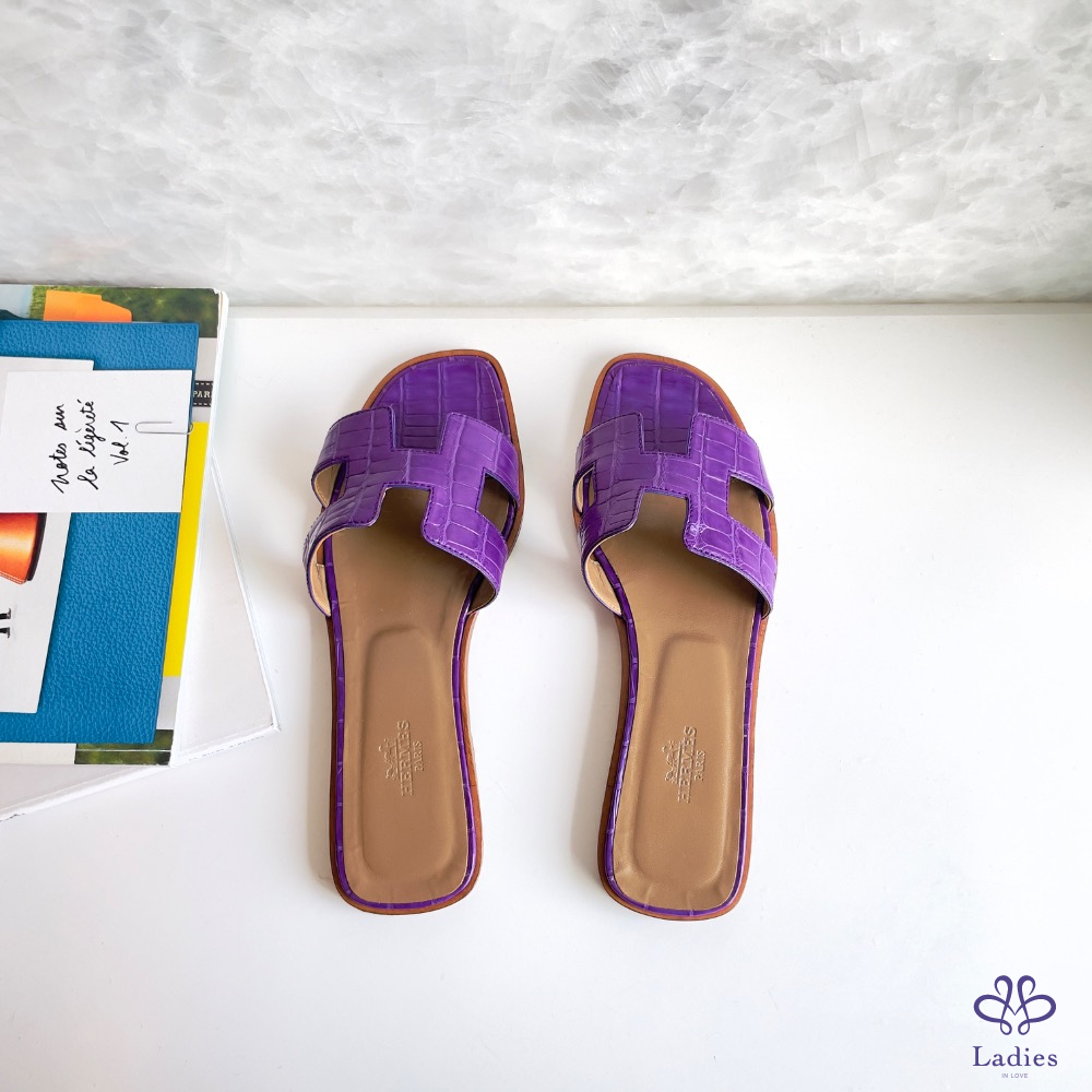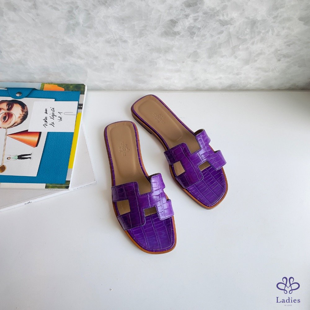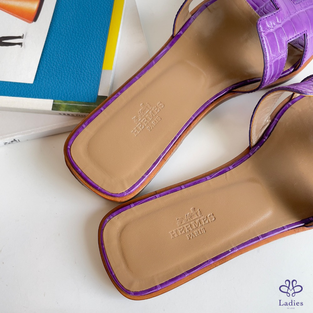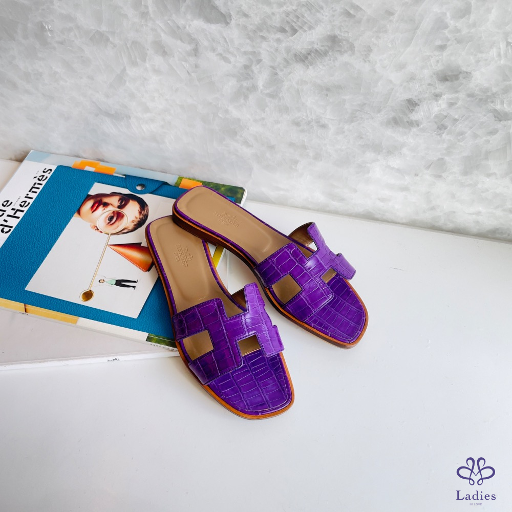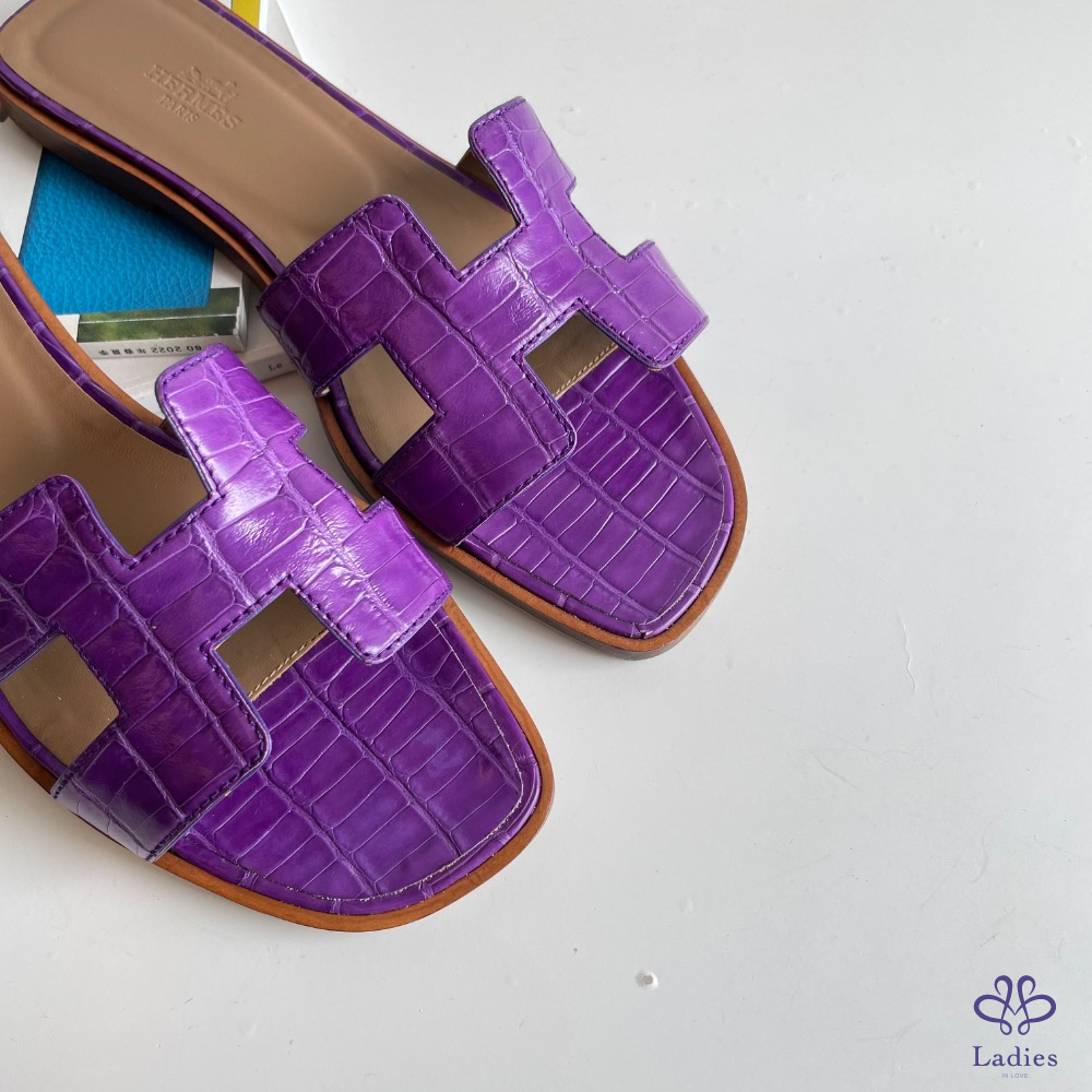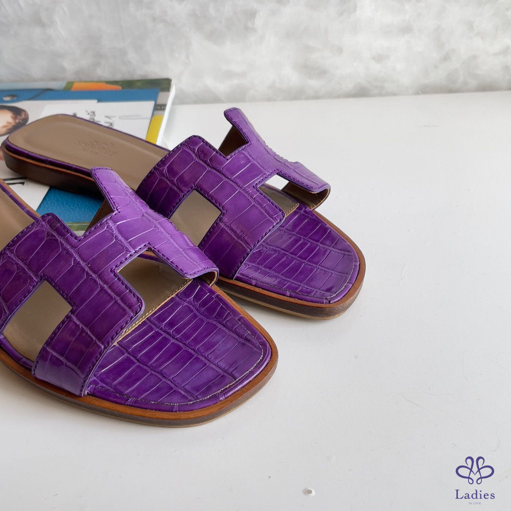 H 拖鞋 紫色鱷魚皮