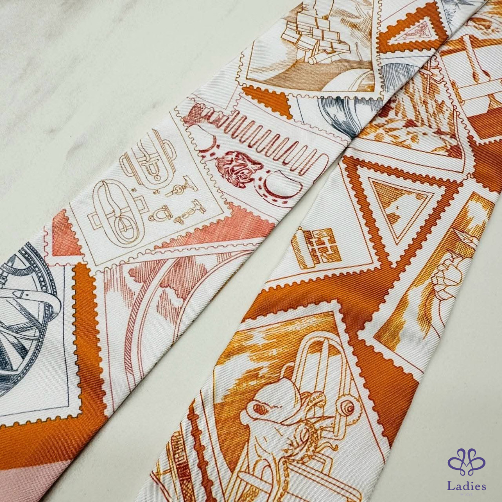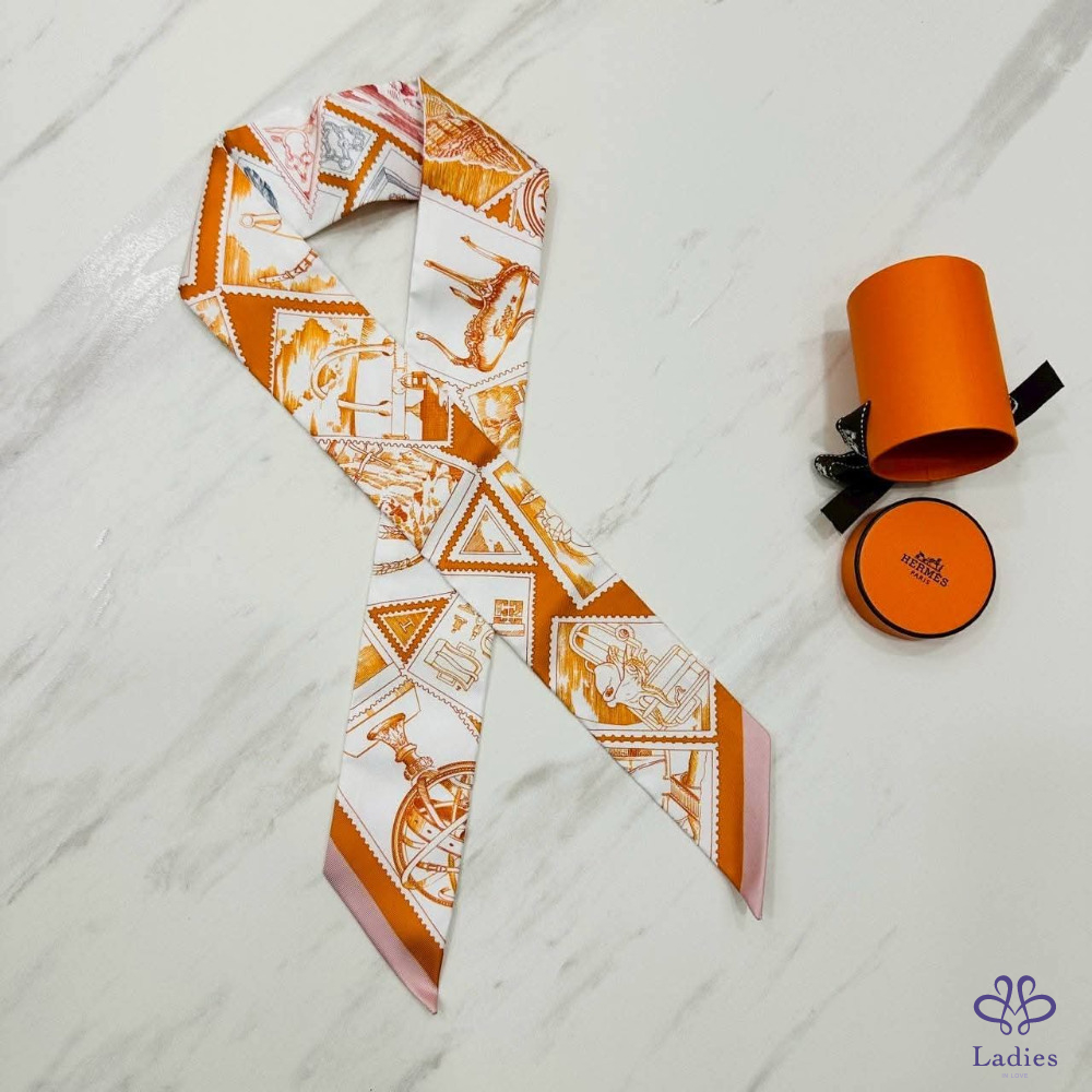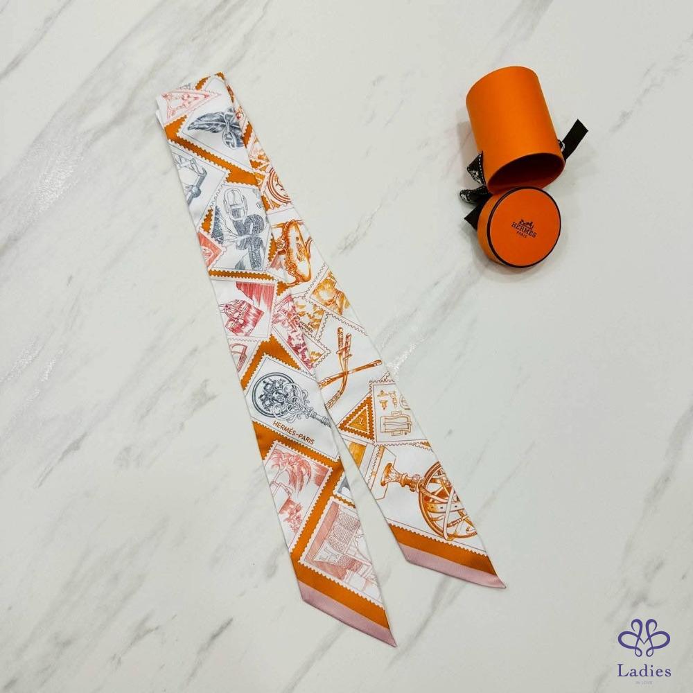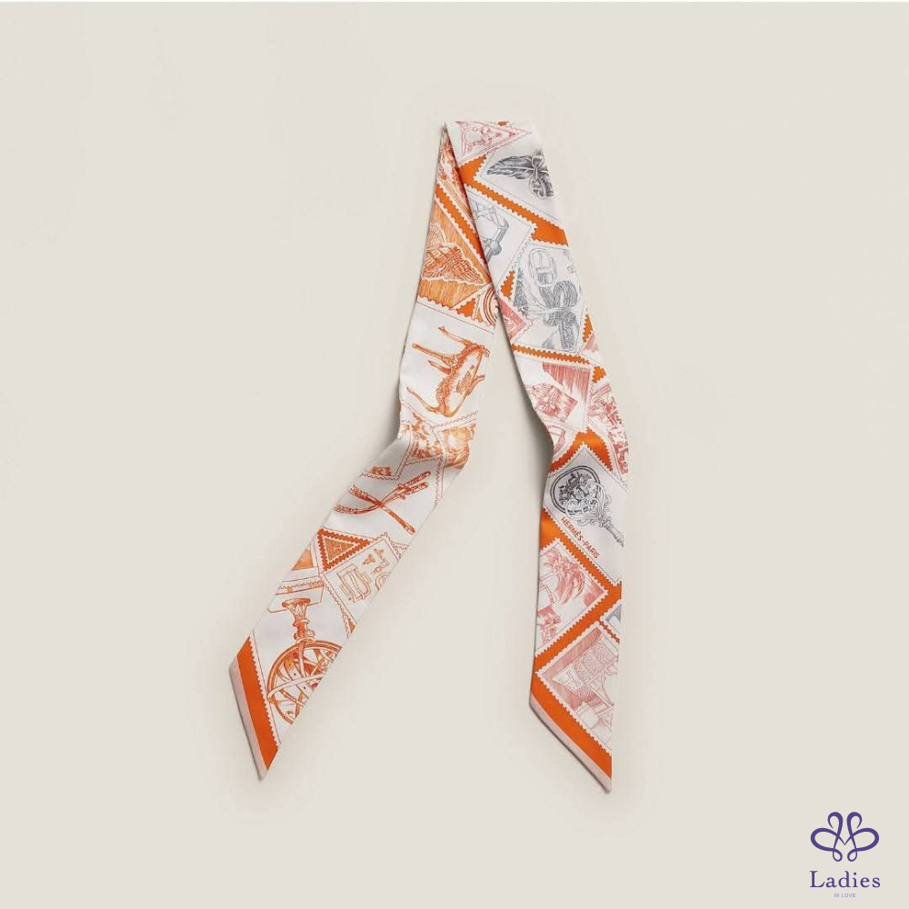 Le Philateliste du Faubourg Twilly x orange cuit/gris/corail 福寶集郵 深橘/灰/珊瑚紅 綁帶長絲巾領巾
