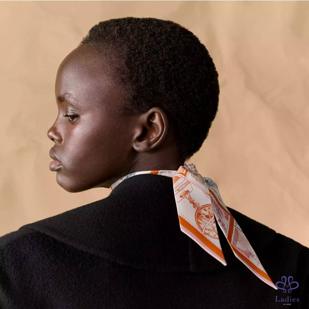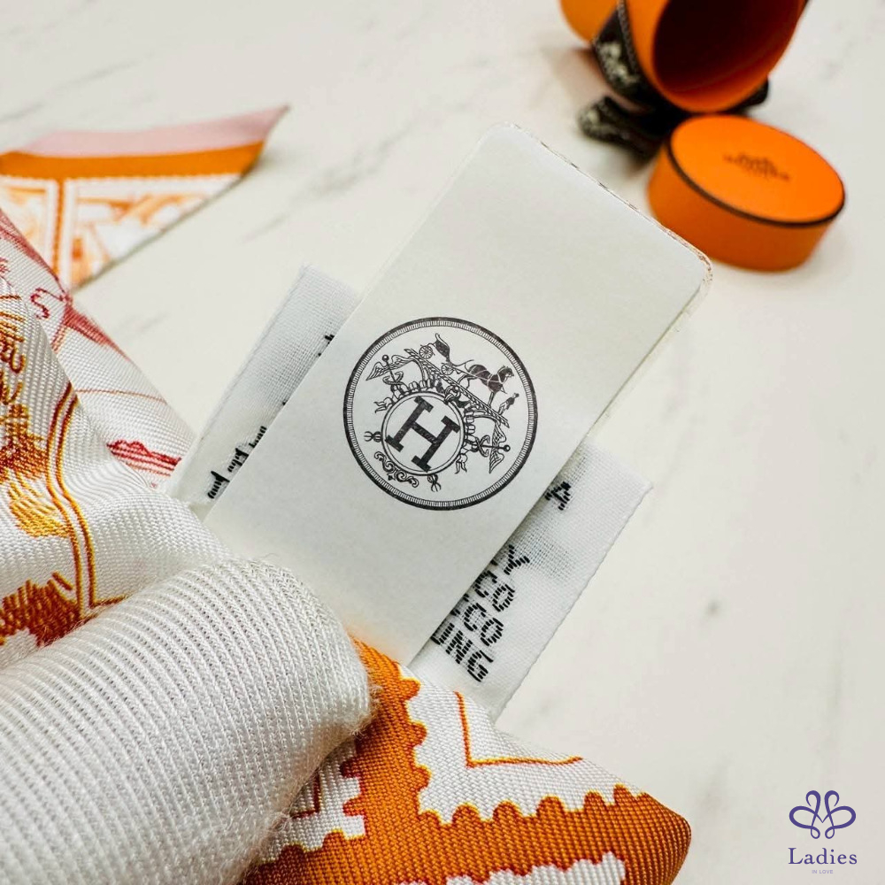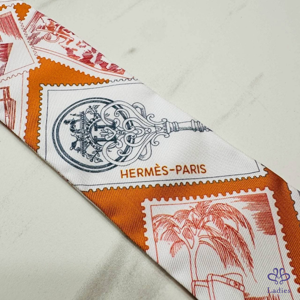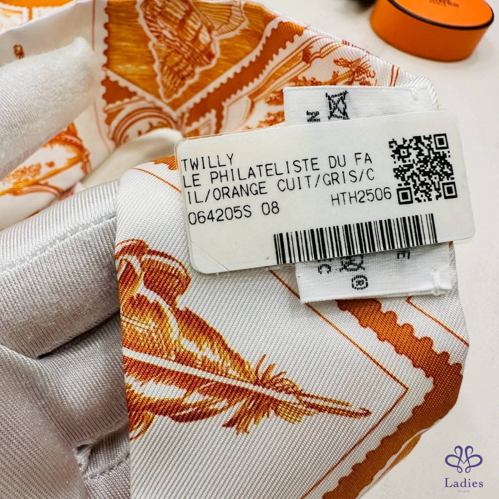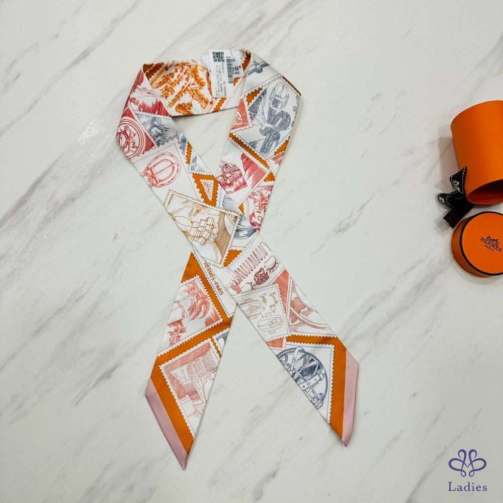 Le Philateliste du Faubourg Twilly x orange cuit/gris/corail 福寶集郵 深橘/灰/珊瑚紅 綁帶長絲巾領巾