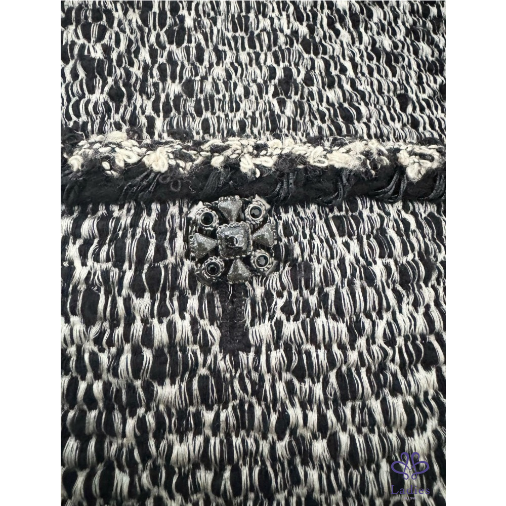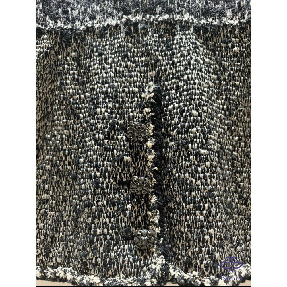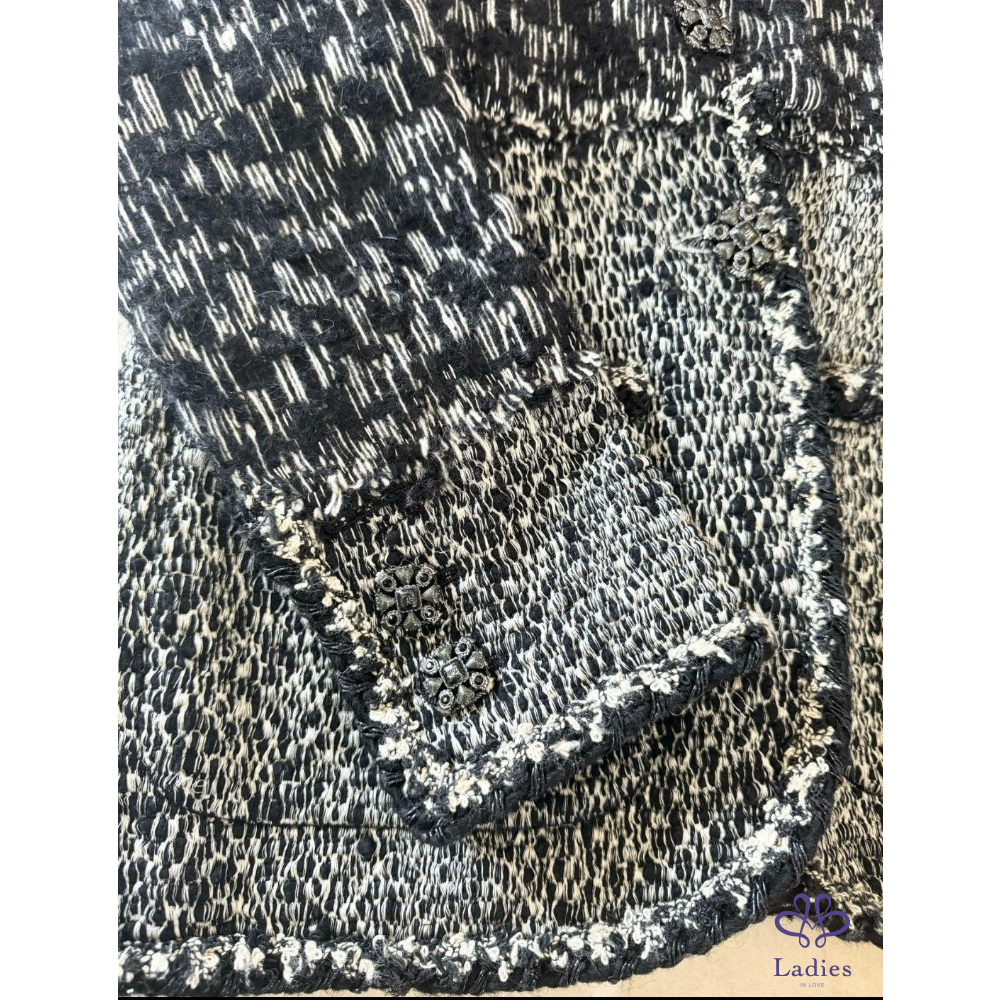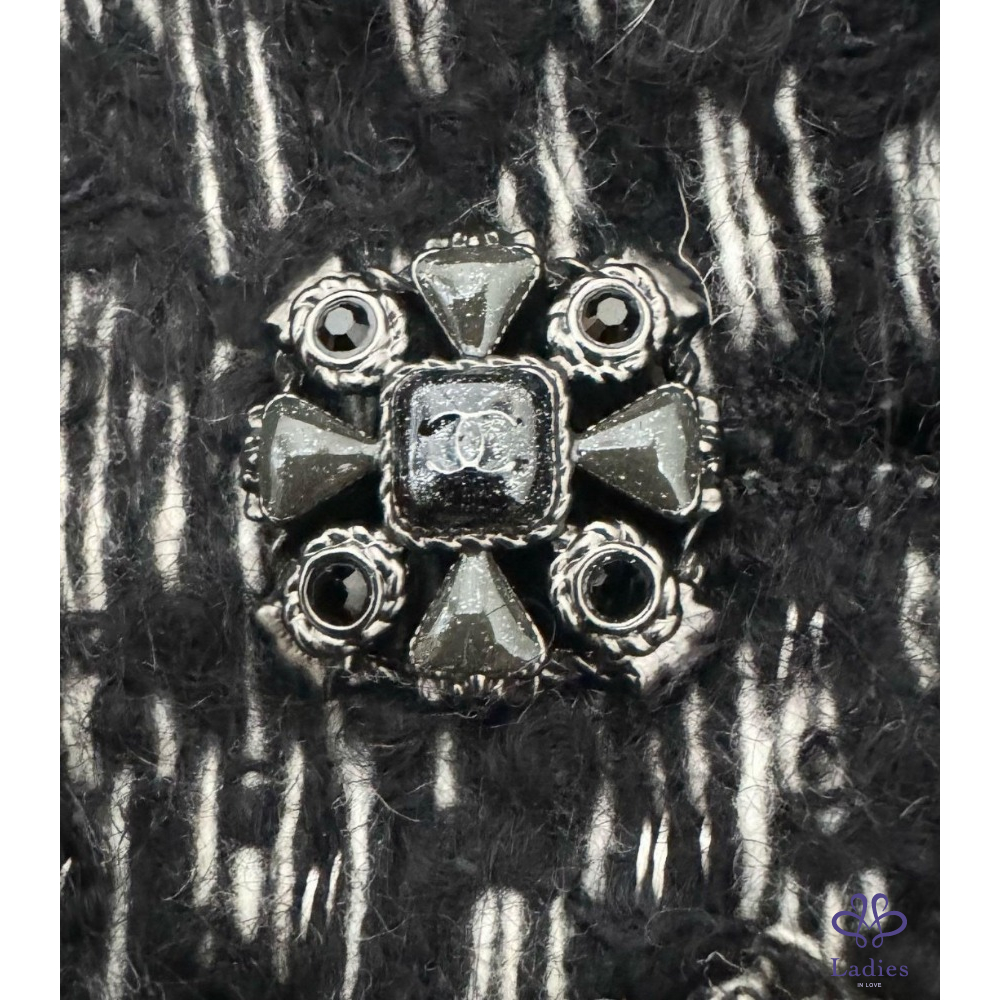 近年款 CHANEL Most Wanted Tweed 絕美重工法超級經典寶石logo釦黑白毛呢外套