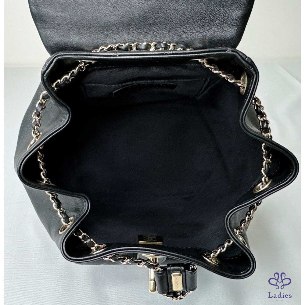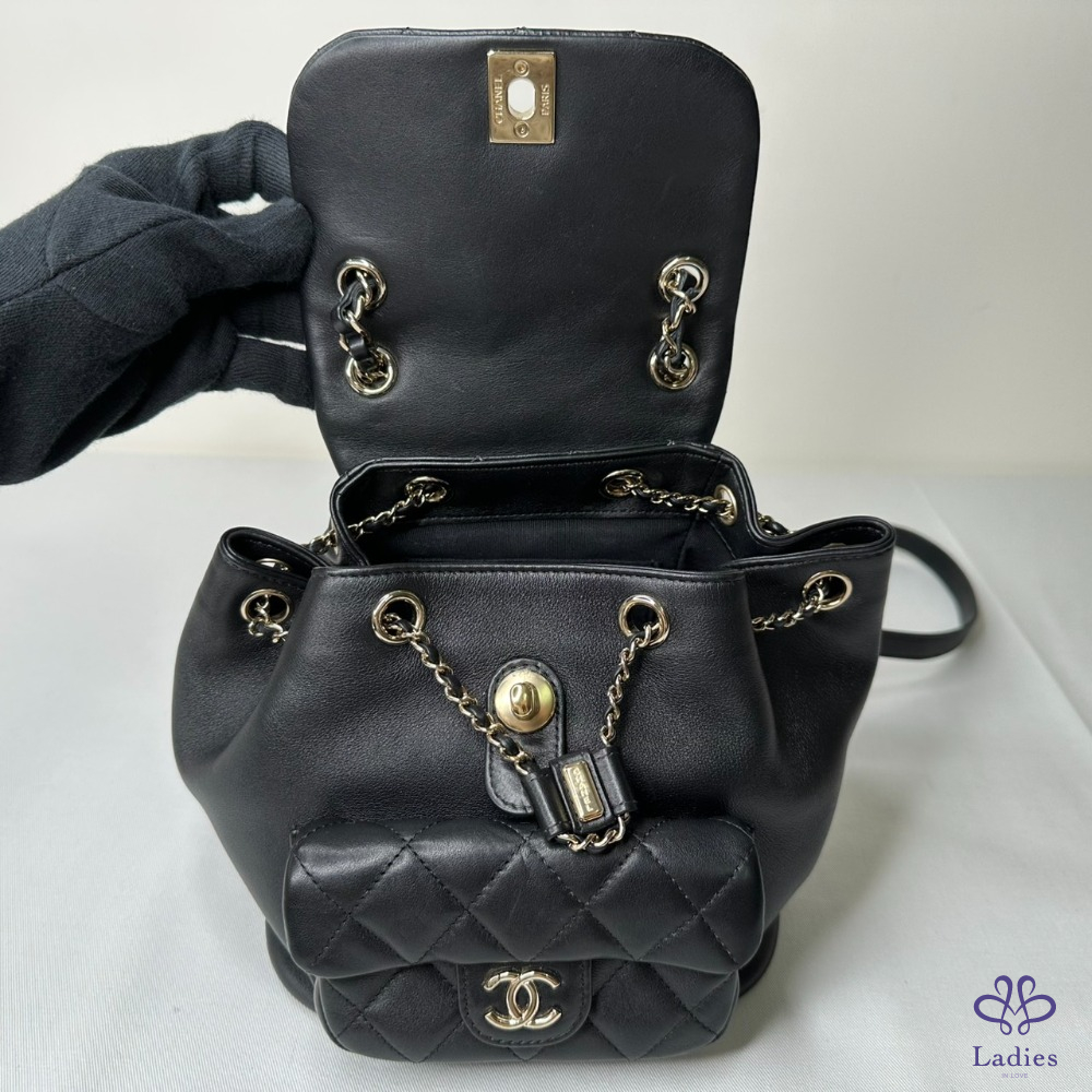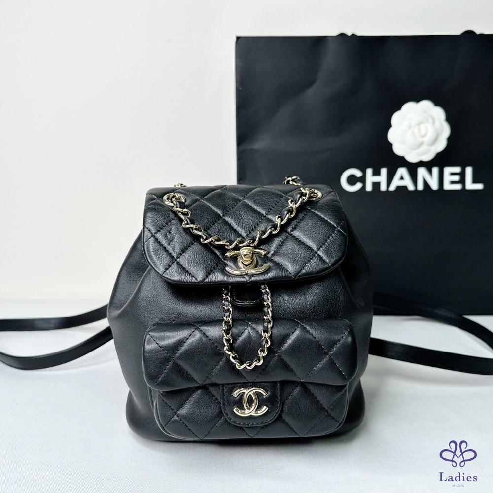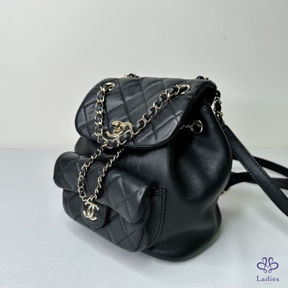 產品信息 【CHANEL DUMA小款黑金牛後背雙肩包】 #晶片版 #原廠保固至2029/9 爆款小香後背包. 櫃上搶搶搶完全看不到 先買先美,市場超搶手 找代購一樣問破頭 整體包況約9成新,二手商品均有正常使用/存放痕跡 型號:AS2908 尺寸:18.5x18x12cm 附件:原廠紙袋、原廠查碼圖 #B114072301