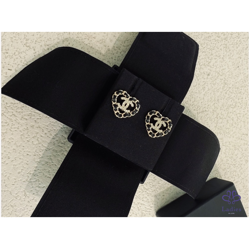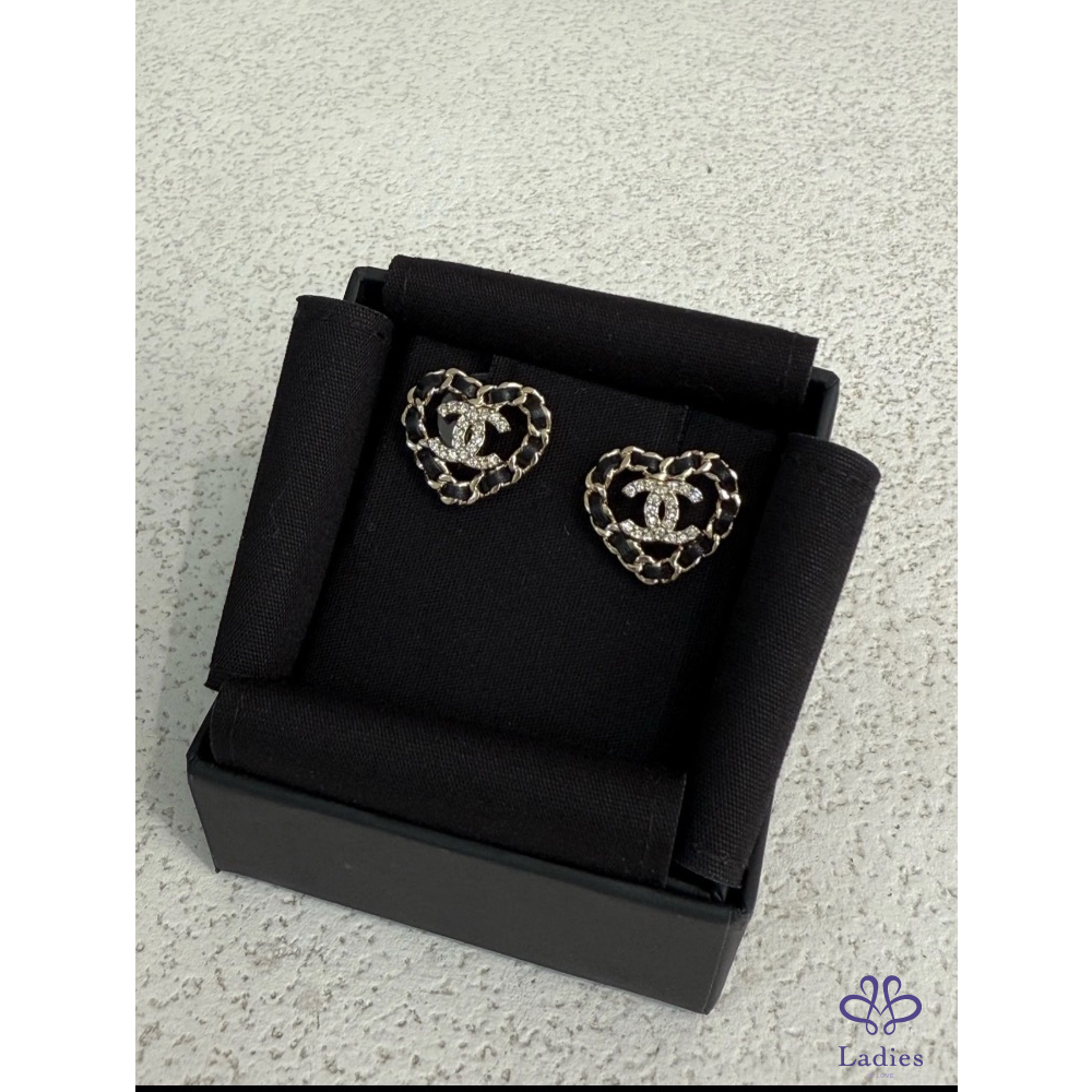 產品信息 小香➰2025新款。黑金皮穿鍊愛心🖤水鑽logo耳環 經典的皮穿鍊出現在🖤愛心上超美的 戴起來甜美又時尚,大小適中,正式休閒都很適合配戴,也是櫃上很難買的款式喔! 全新,僅拍照 尺寸約1.5cm 售$24800含運 附盒、緞帶、山茶花、紙袋,它團同步 ❌‼️請確定購買再私訊,問問考慮勿浪費彼此時間 ❌‼️習慣已讀不回、不讀不回、議價請勿擾