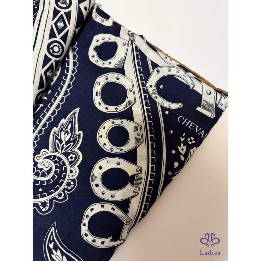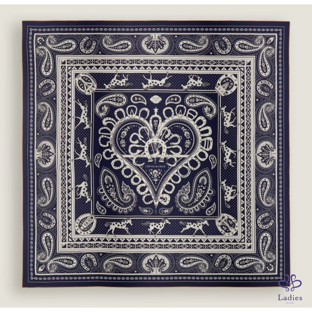 產品信息 140 cashmere 絲巾 披肩 圍巾 - 心之馬 Bandana - 藍色 - 全新 - 尺寸:140*140 - 專櫃價近5萬 - 法國製 70% cashmere +30% 真絲 混紡材質柔軟輕盈 附:橘盒、緞帶、購證影本去個資 台北新竹台中可面交 郵寄、店到店、宅配 實穿照為網路抓圖,不妥可告知