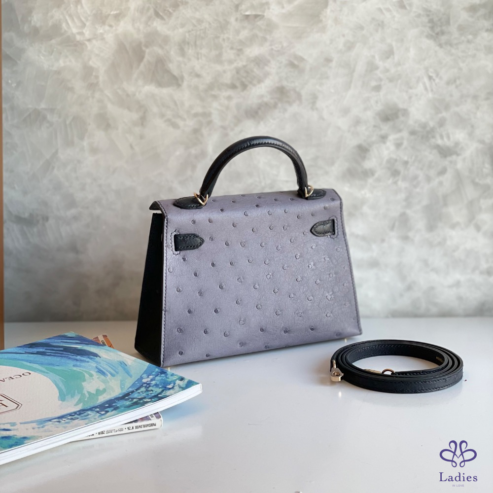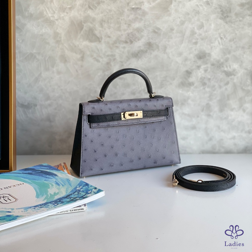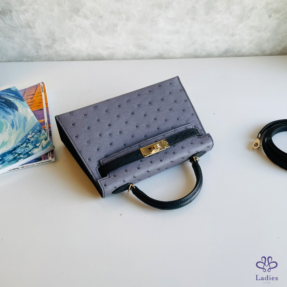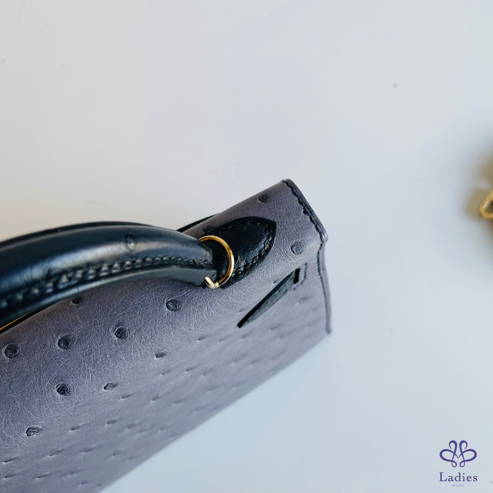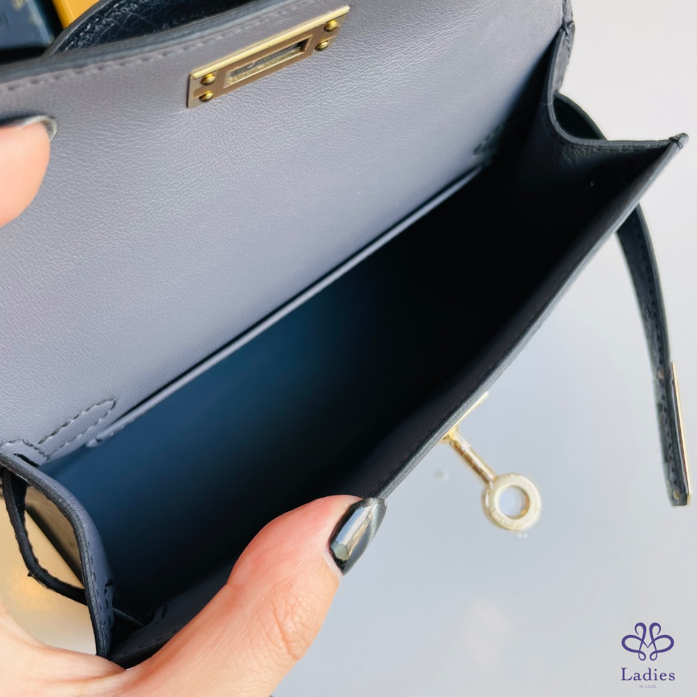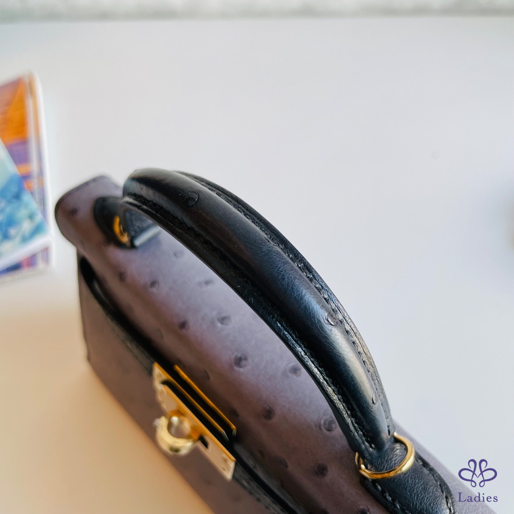 愛馬仕 mini Kelly ii 黑灰金釦