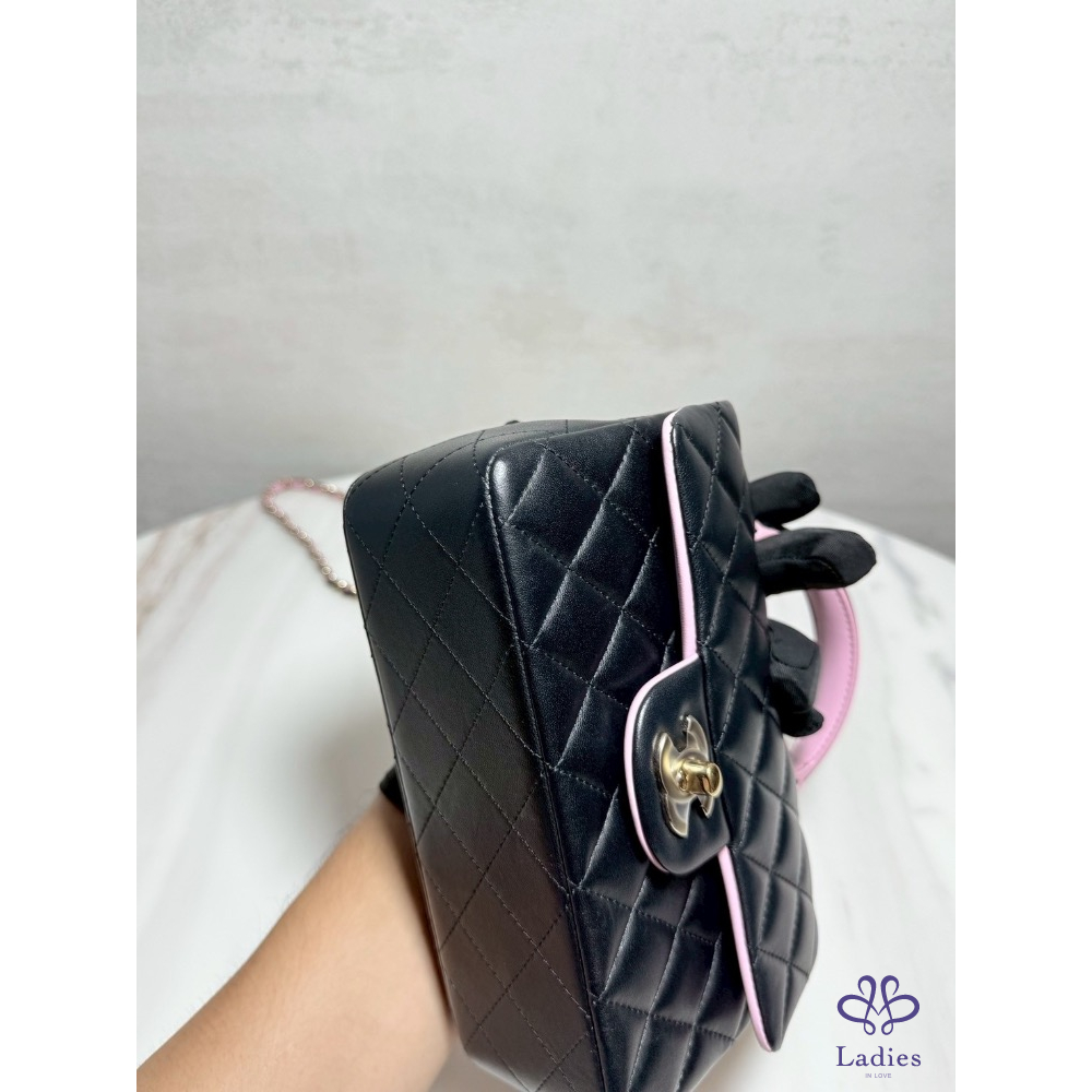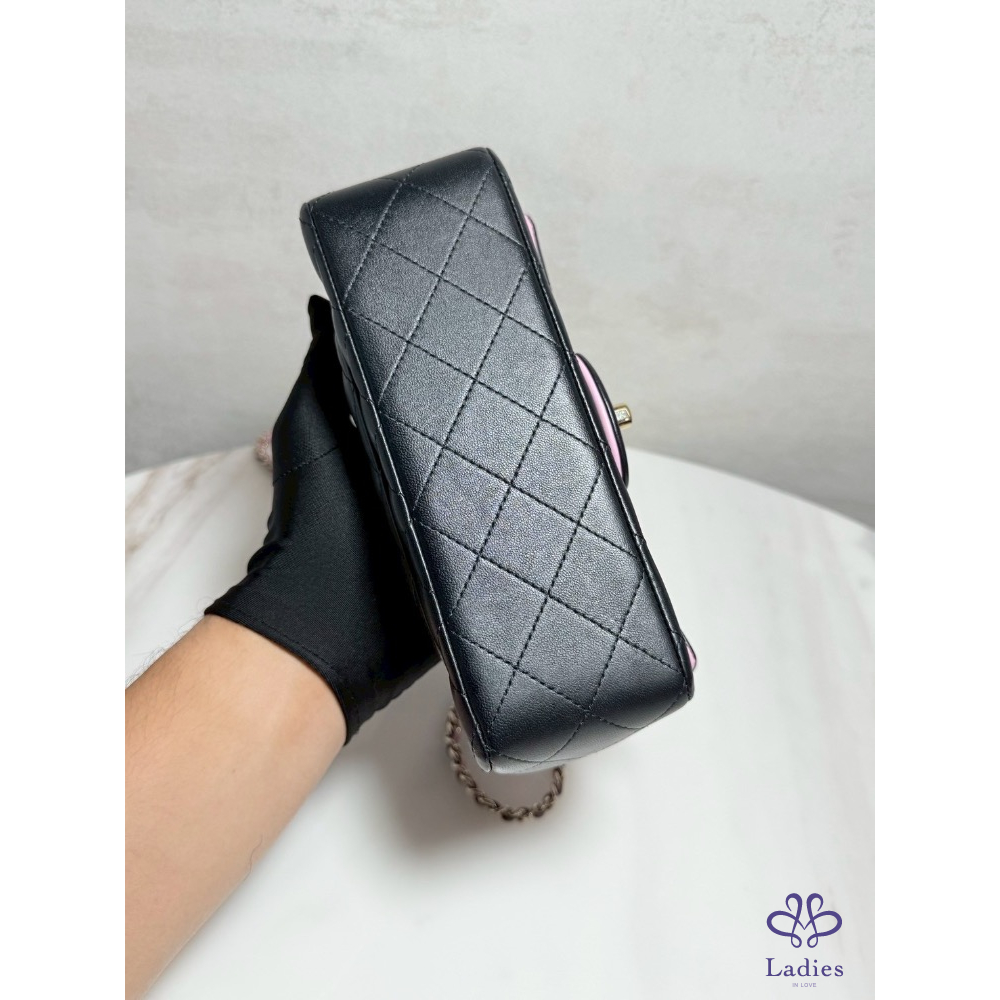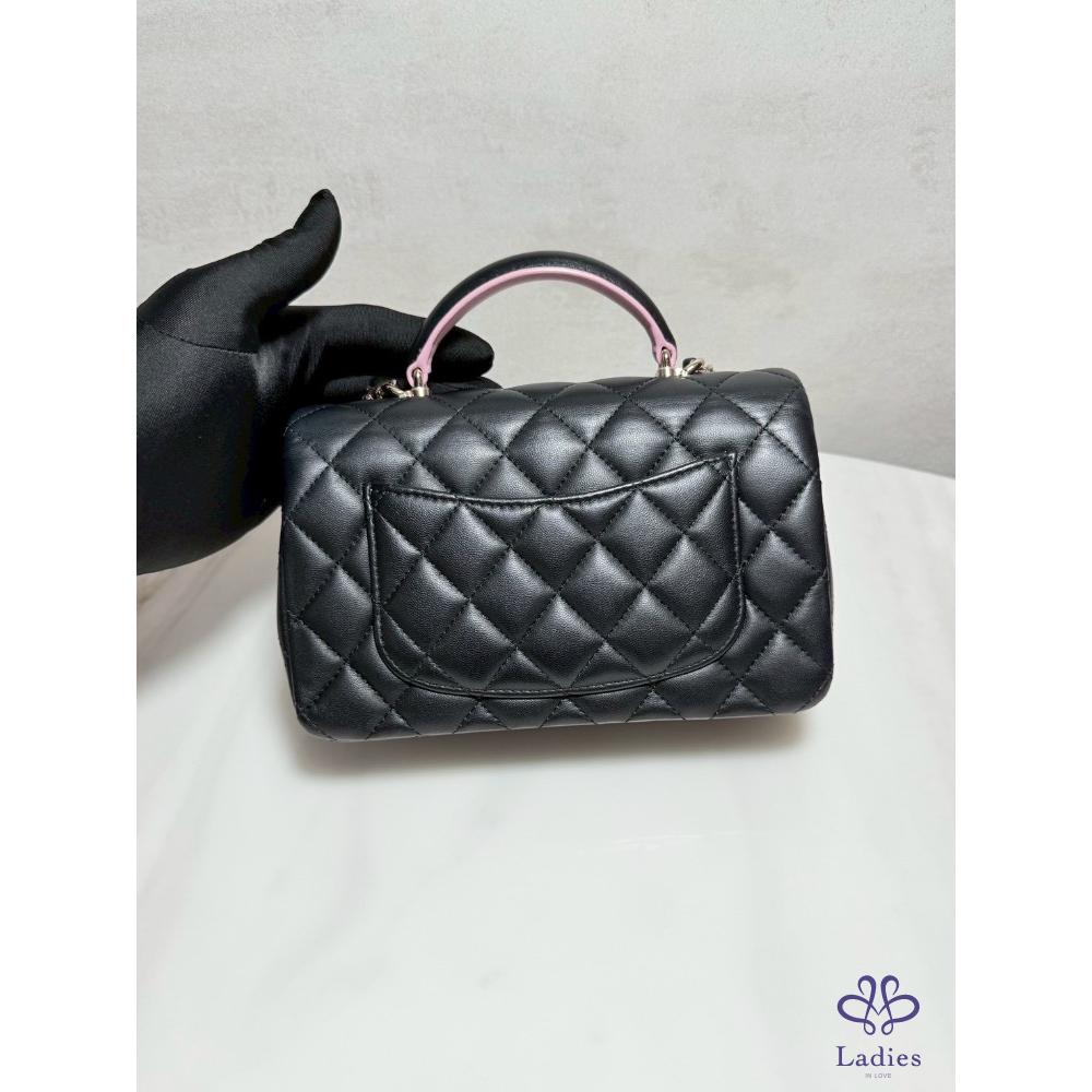 Chanel CF20 Mini Handle 20黑拼粉 晶片款 99新全配 膠膜未撕