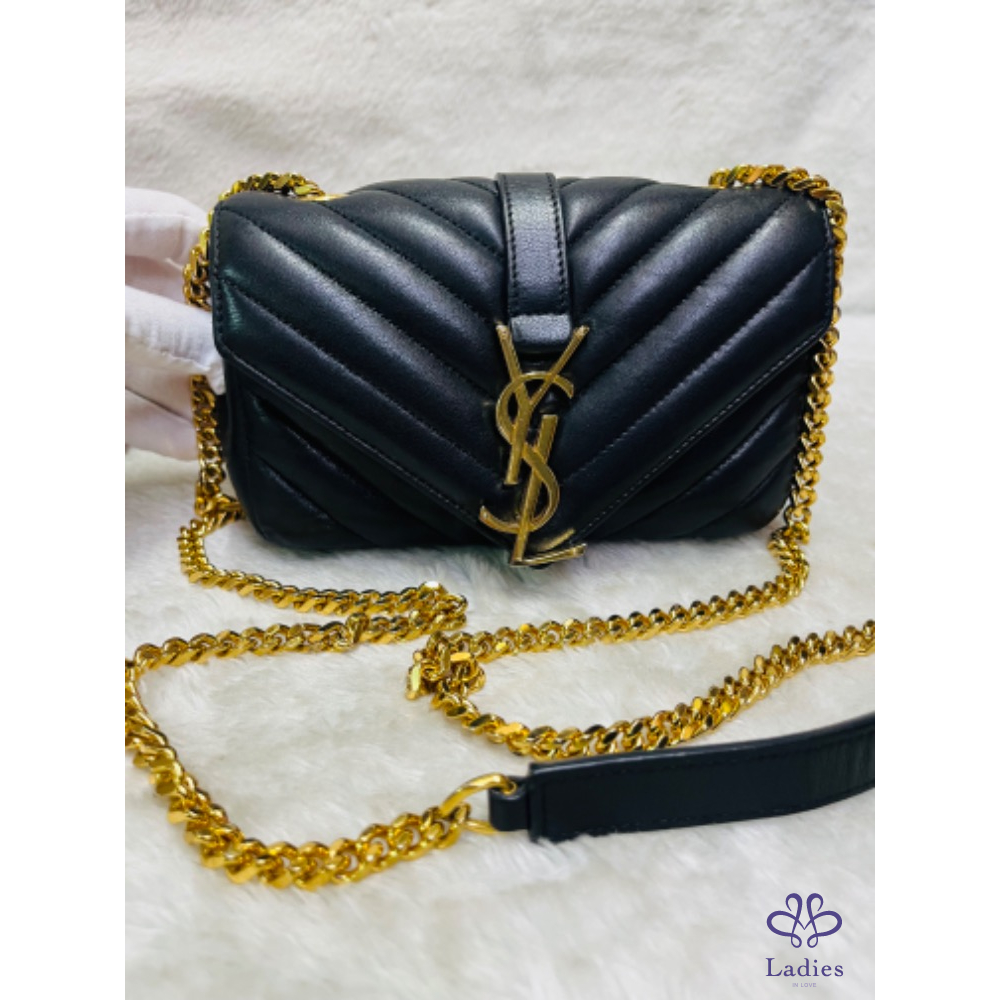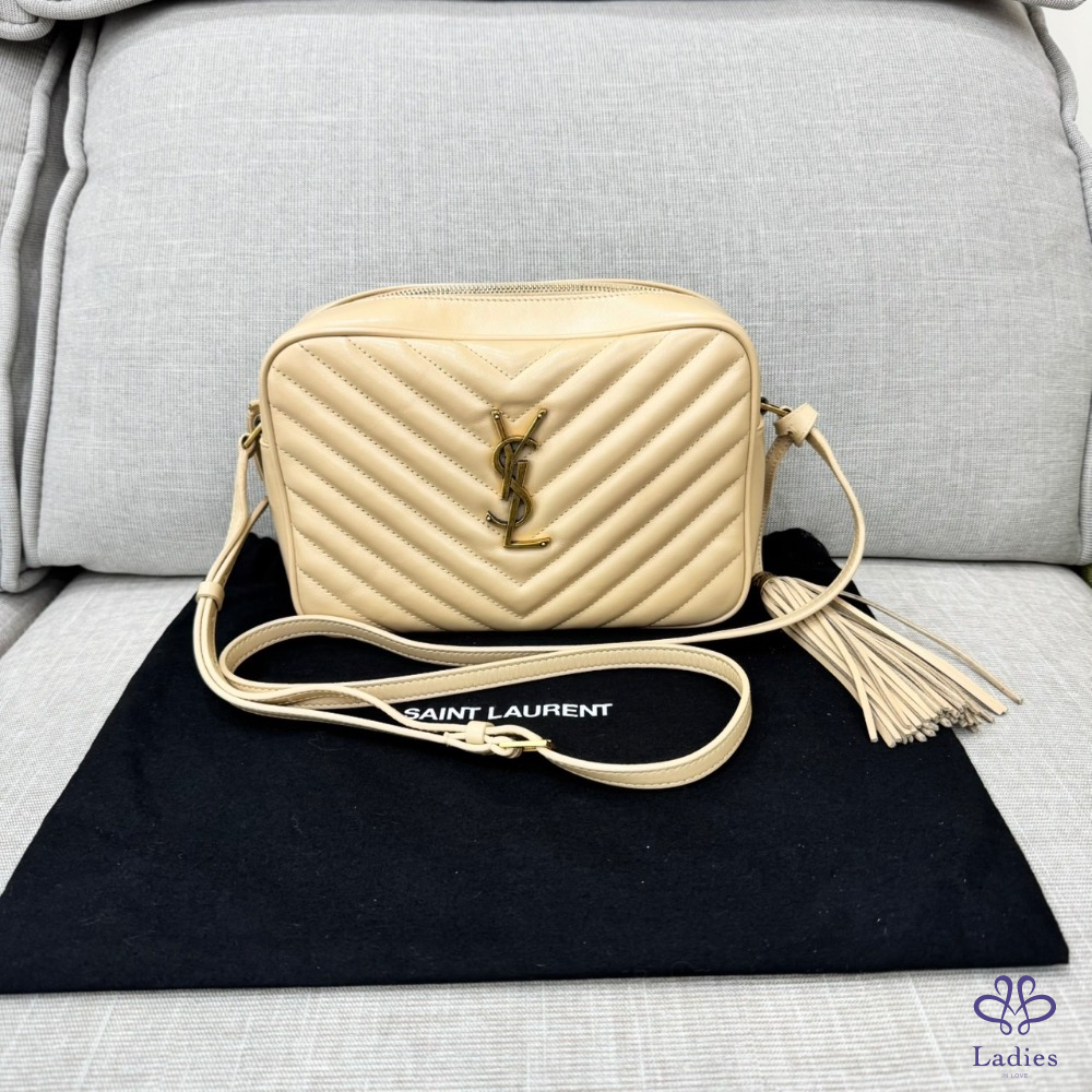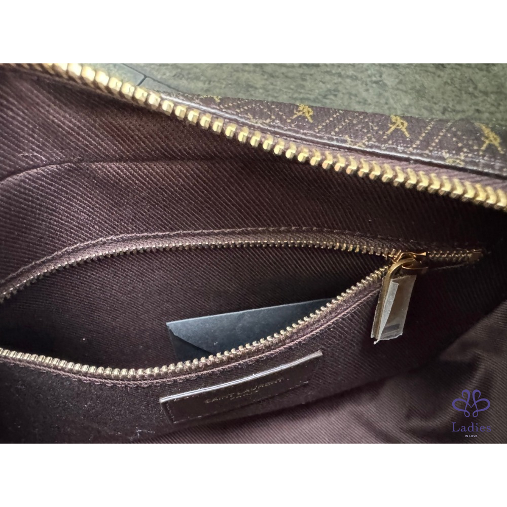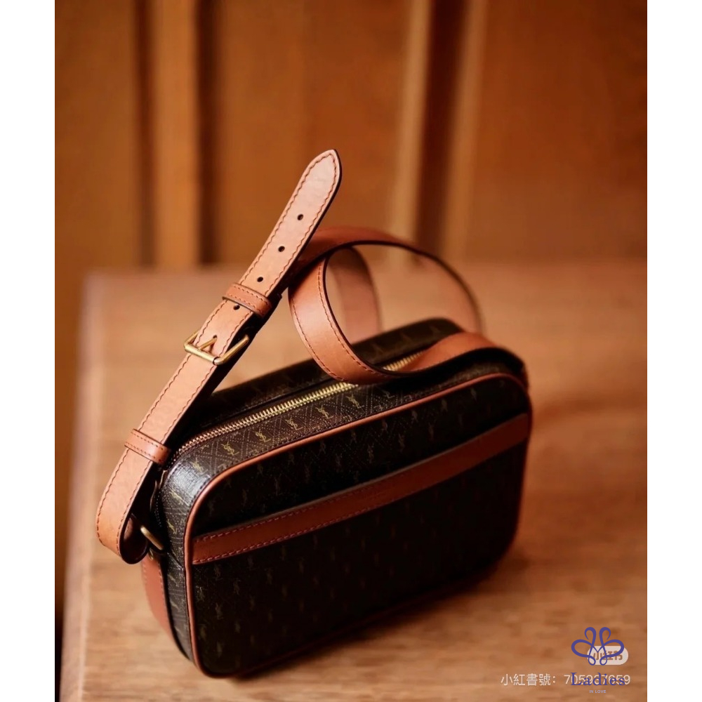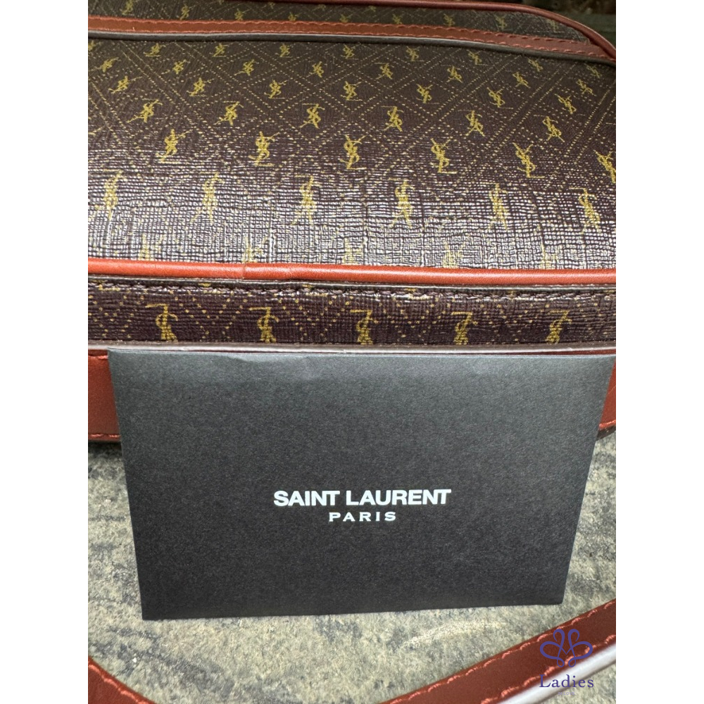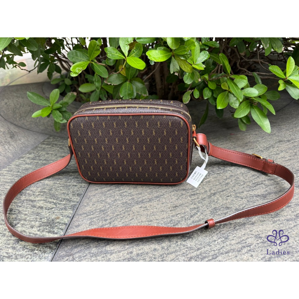 YSL Saint Laurent Le Monogramme 老花帆布小牛皮斜背相機包(棕色)