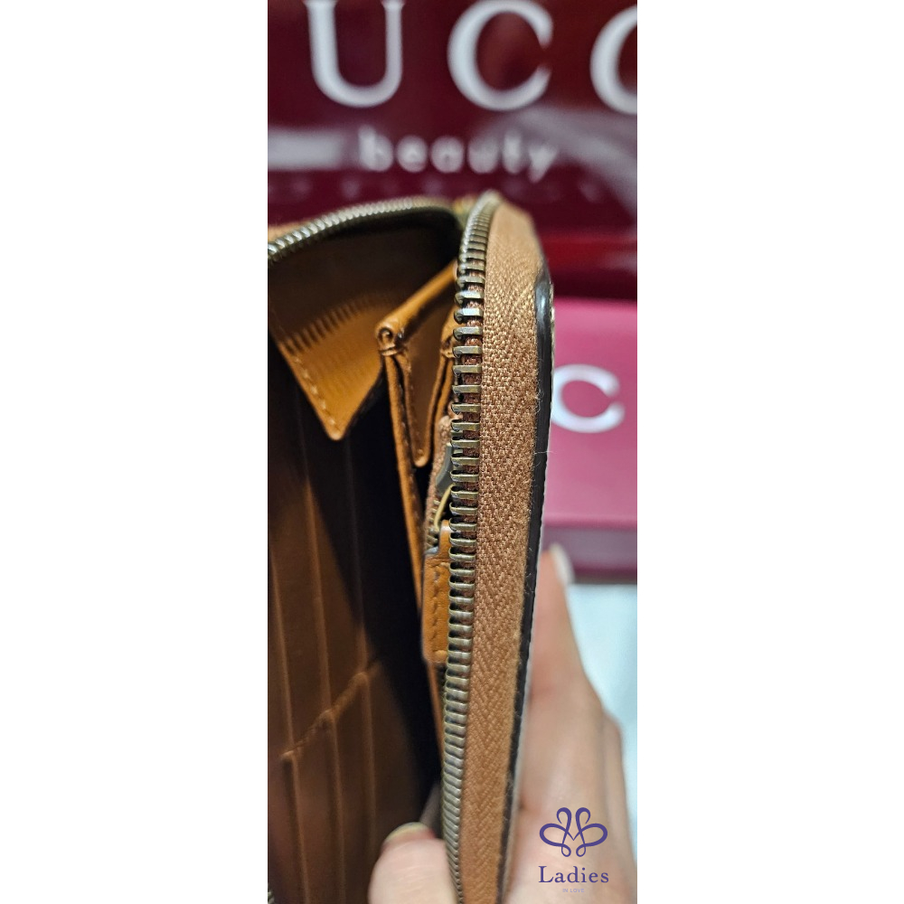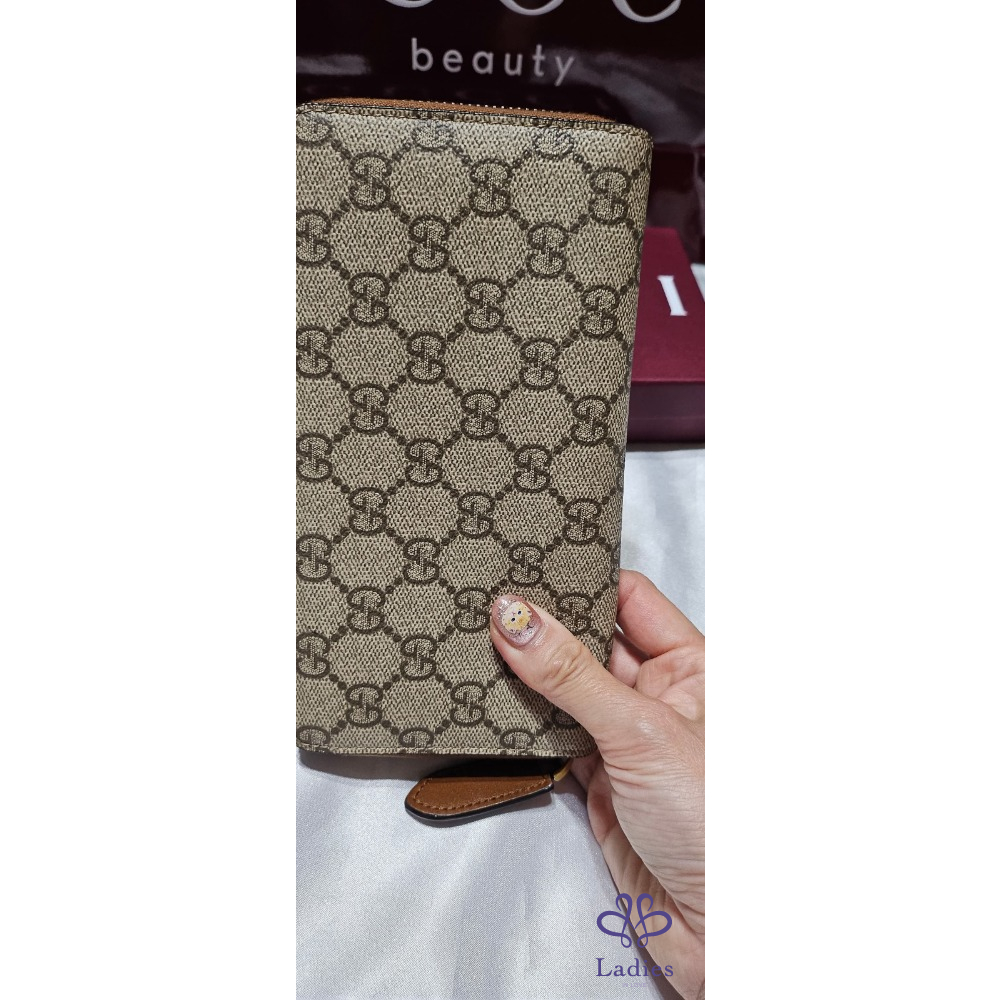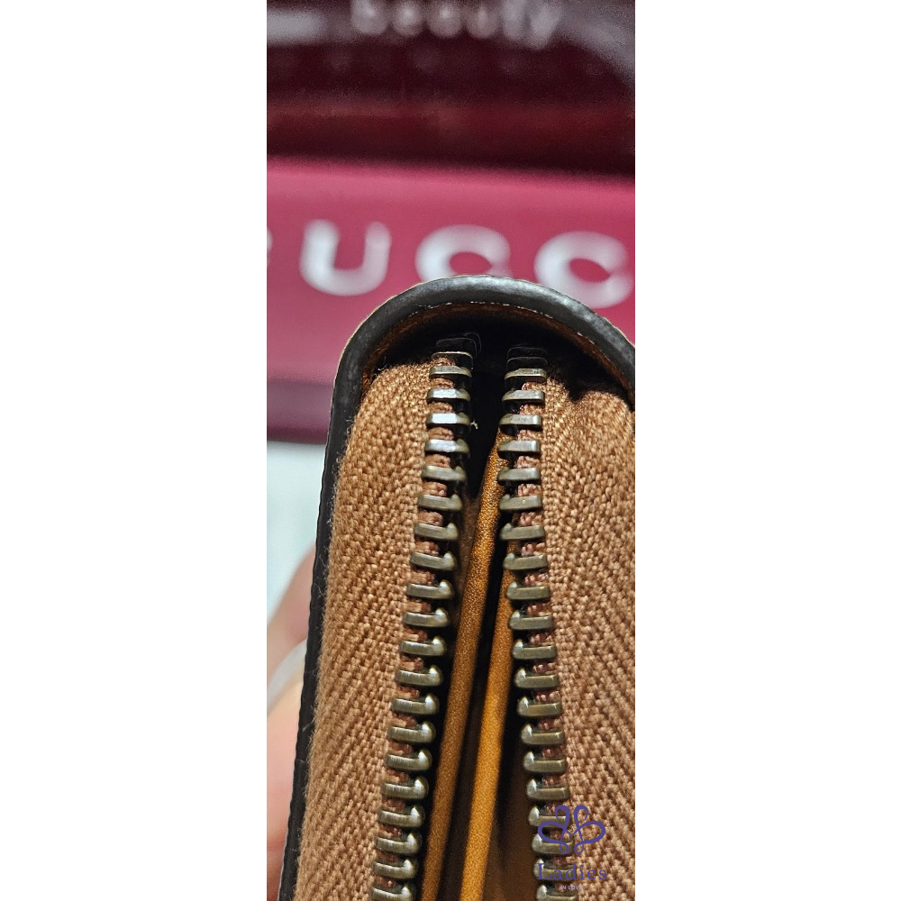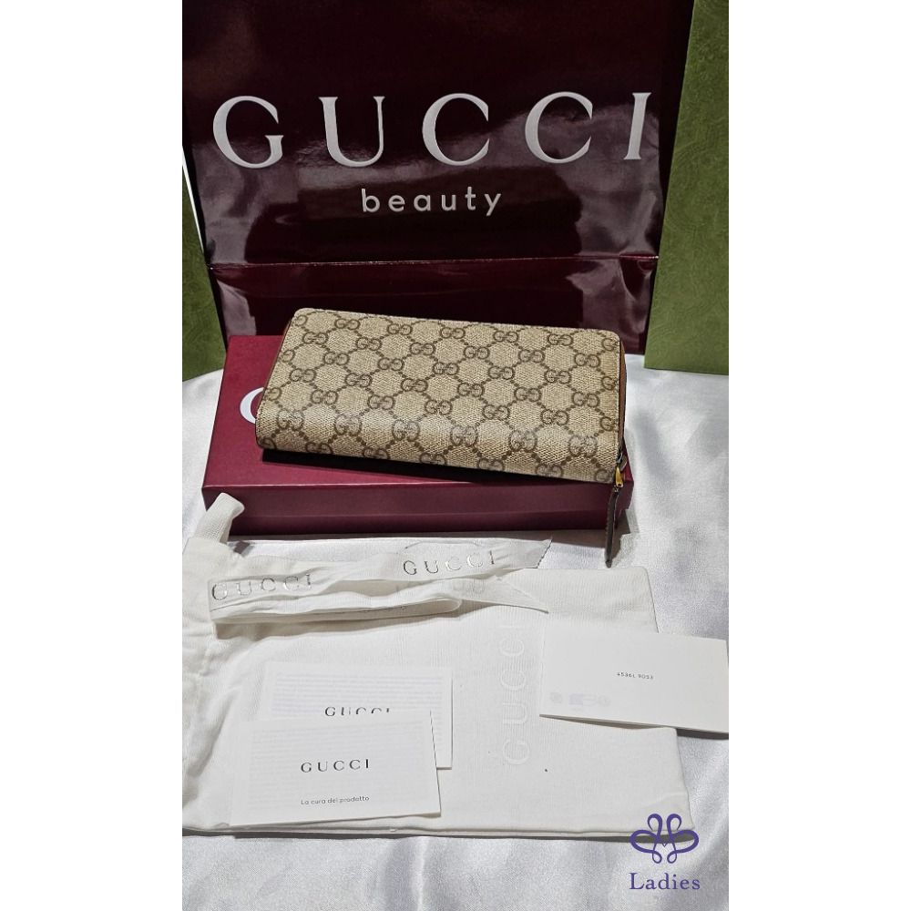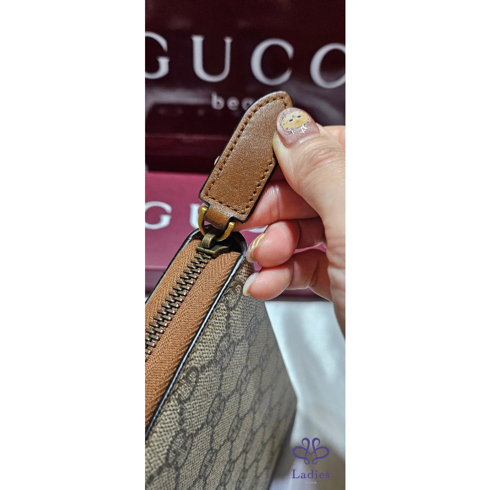 Gucci新款GG Emblem 系列帆布年牛皮拉鏈長夾