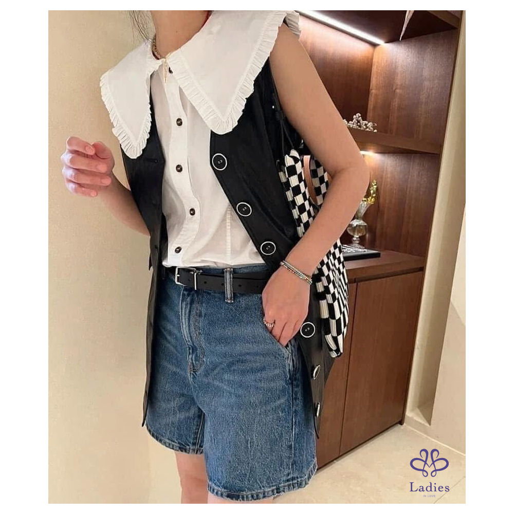 全新丹麥GANNI 荷葉領娃娃領背心襯衫 ,甜美少女風