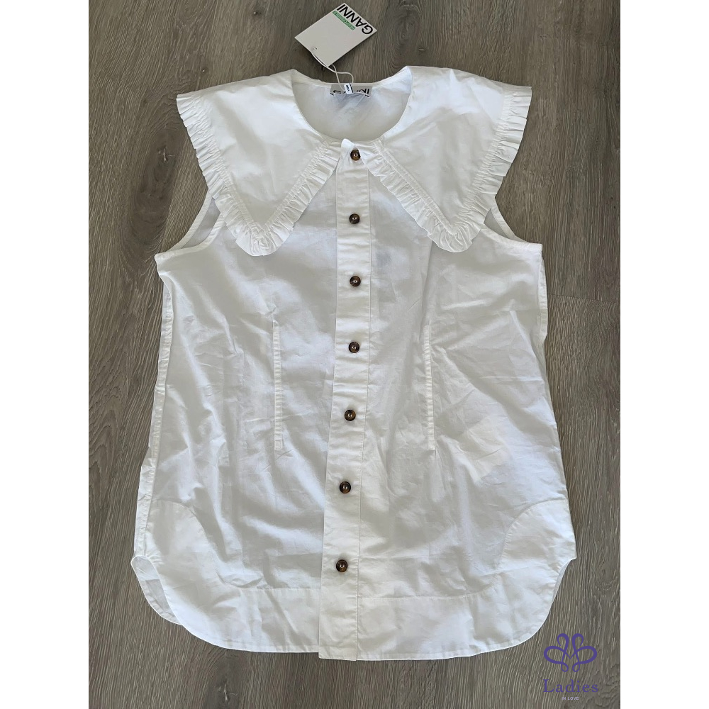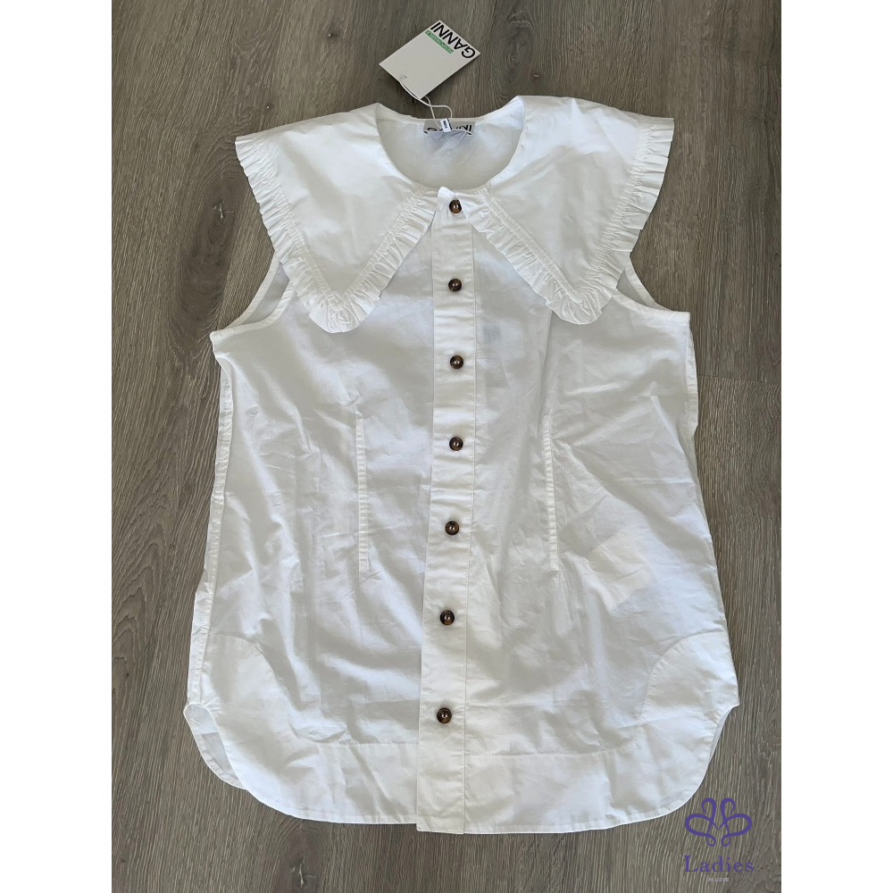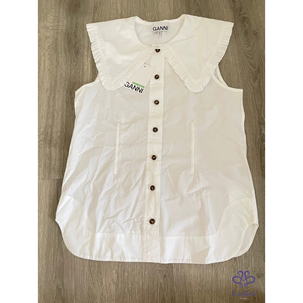 首頁 精品服飾 全新丹麥GANNI 荷葉領娃娃領背心襯衫 ,甜美少女風