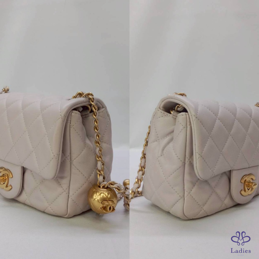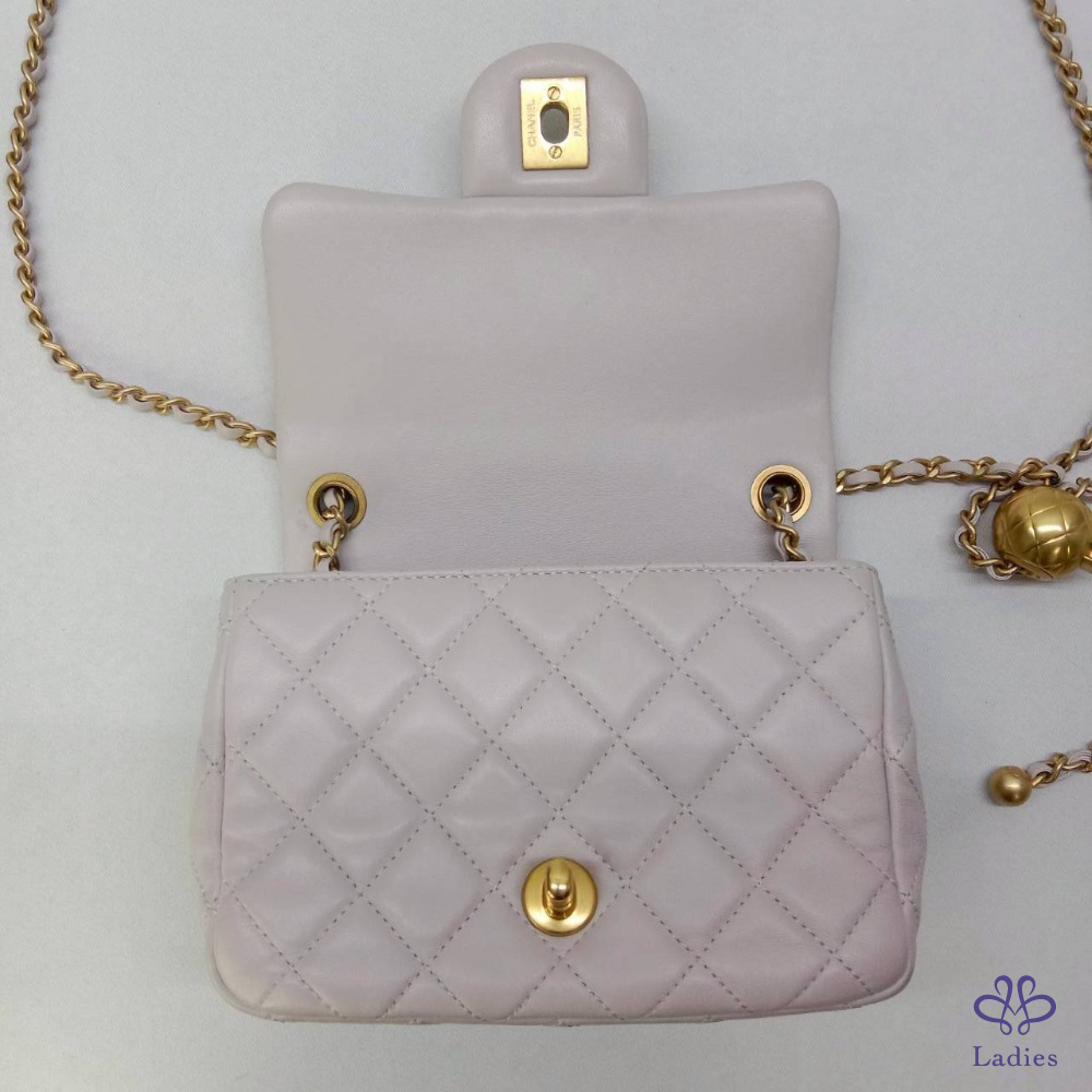 產品信息 【CHANEL 淡紫灰金球方胖】 #陽光下帶點淡紫色 #室內日光呈淡芋紫灰 採用菱格紋小羊皮製作,觸感柔軟,配有雙C標誌,展現經典優雅 鏈帶附可調節長度金球,方便調整背帶長度可手提、斜背或側背等多種方式 ⚜️整體包況9成新,二手商品均有正常使用/存放痕跡 ⚜️型號:AS1786 ⚜️尺寸:17x11.5x6cm ⚜️附件:盒子、防塵袋、卡冊、Entrupy證書 #A114080401