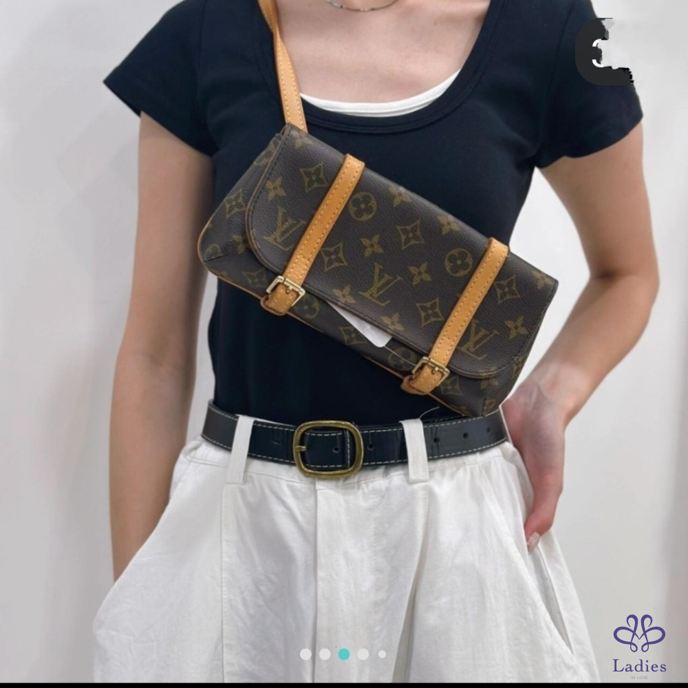 LV經典花紋雙扣穿扣式腰包/胸口包