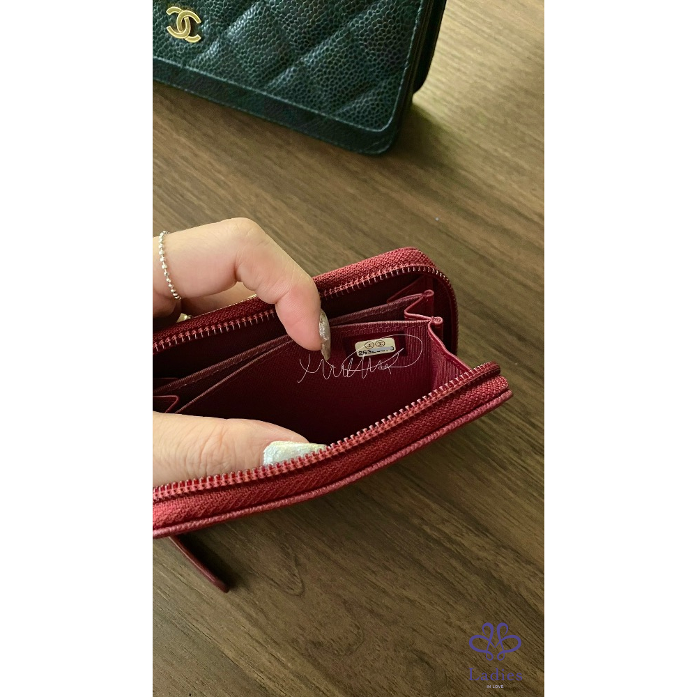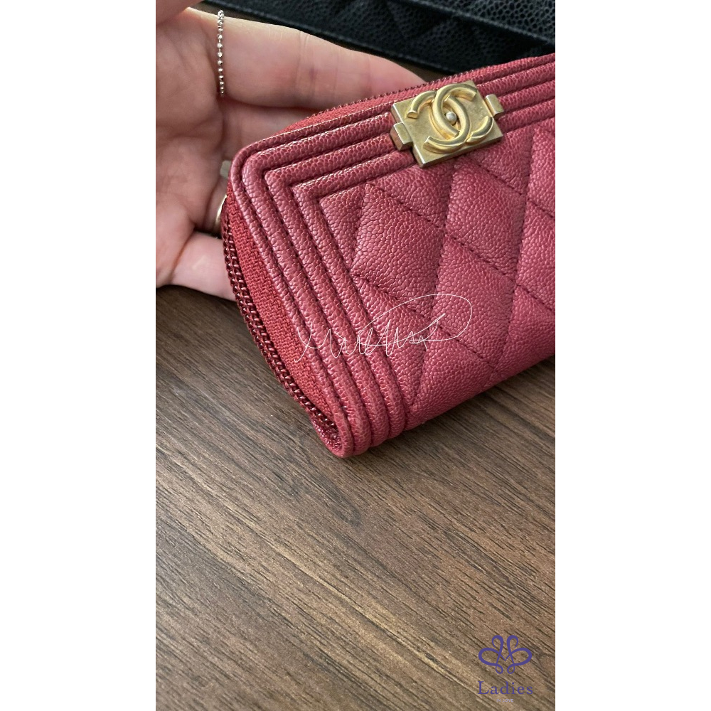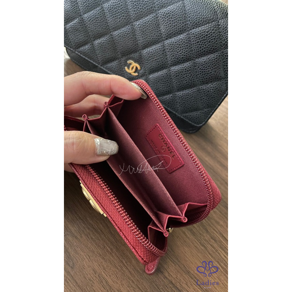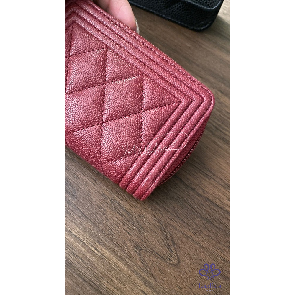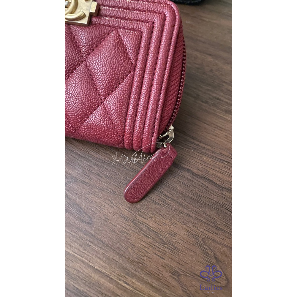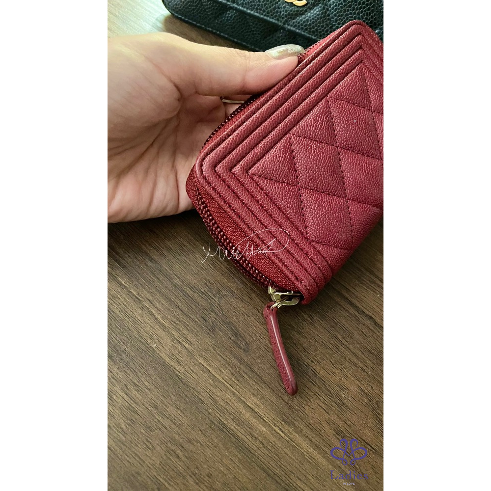 Chanel勃艮第酒紅boy拉鍊零錢包
