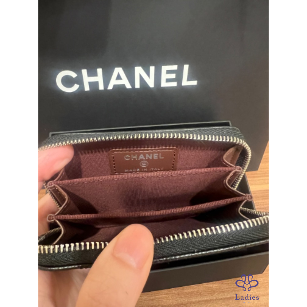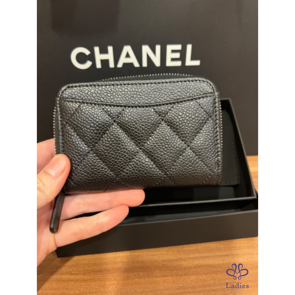 Chanel 黑色荔枝銀釦ㄇ字拉鍊零錢包