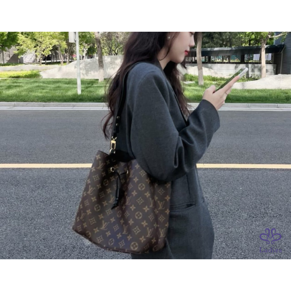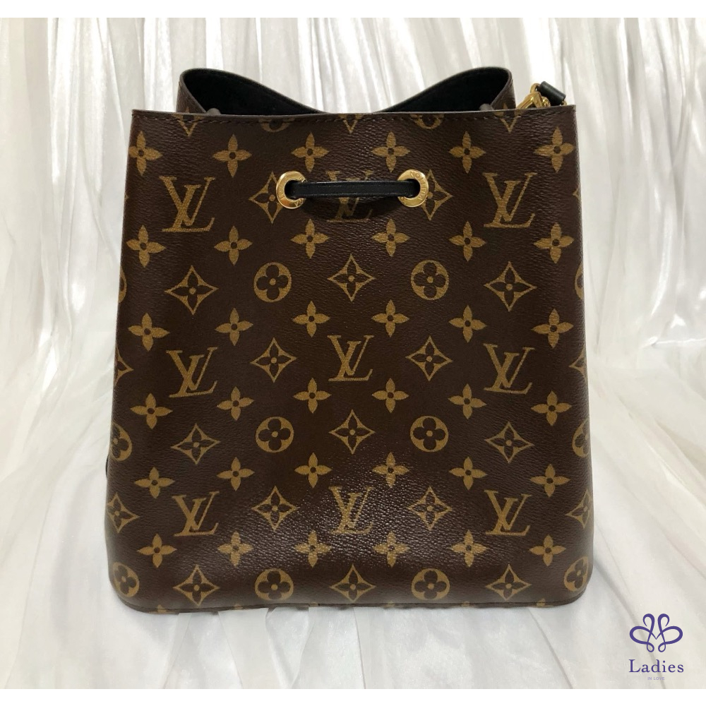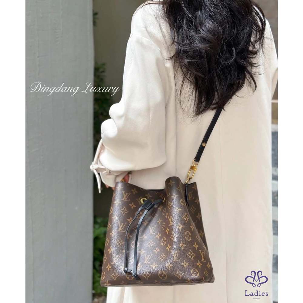 LV 經典傳統花紋 M44022 NéoNoé MM 黑色皮革 肩背 斜背 水桶包✨