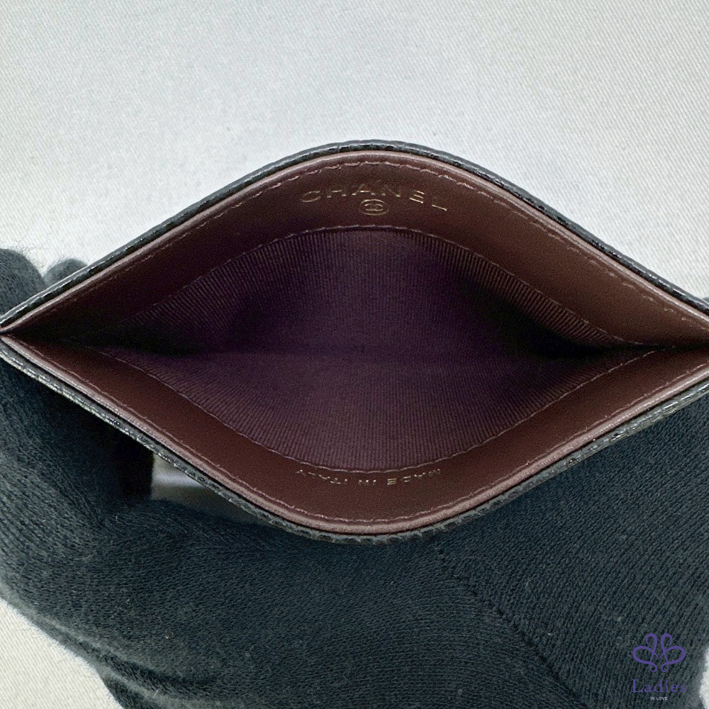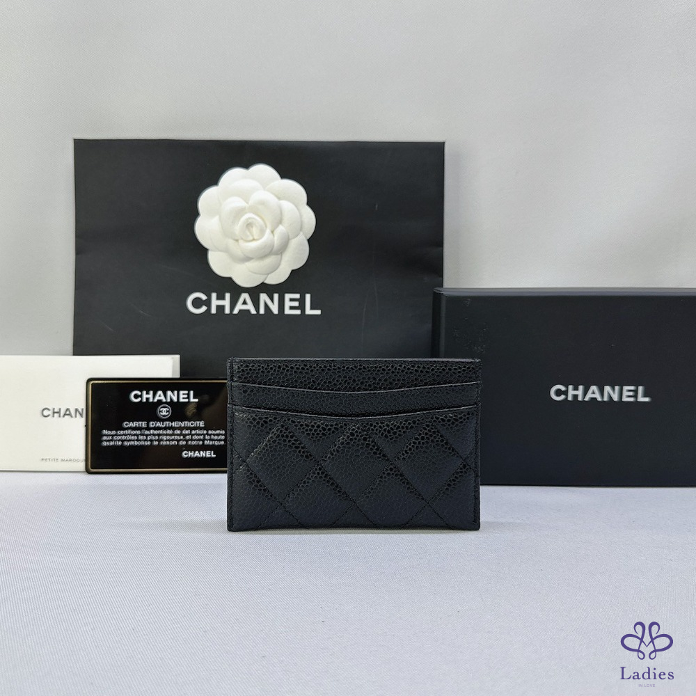 產品信息 【CHANEL 經典黑金荔枝牛卡片夾】 #31開卡標齊全 耐磨荔枝紋小牛皮,百搭黑金配色,展現優雅經典氣質 輕巧便攜,無論放入手拿包或外出隨身使用,皆顯高雅氣質 ⚜️整體包況約9成新,二手商品均有正常使用/存放痕跡 ⚜️型號: AP0213 ⚜️尺寸: 7.5x11 cm ⚜️附件: 盒子、紙袋、保卡、卡冊 #A114080701