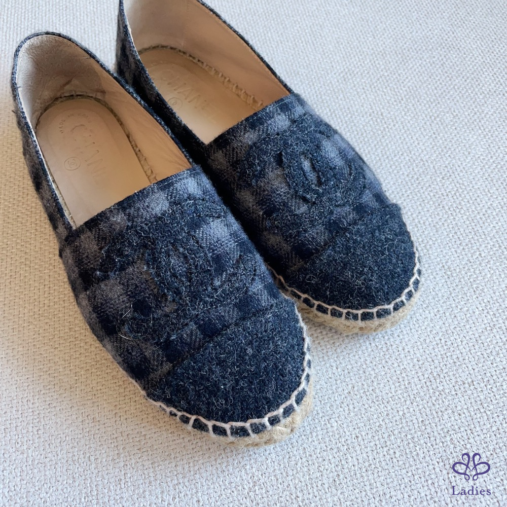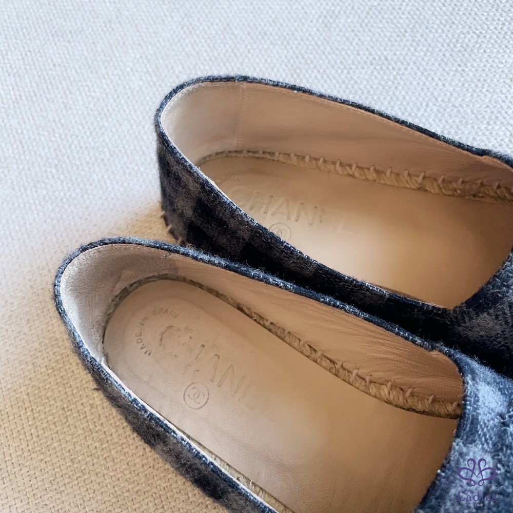 Chanel 鉛筆鞋 黑灰格紋毛呢