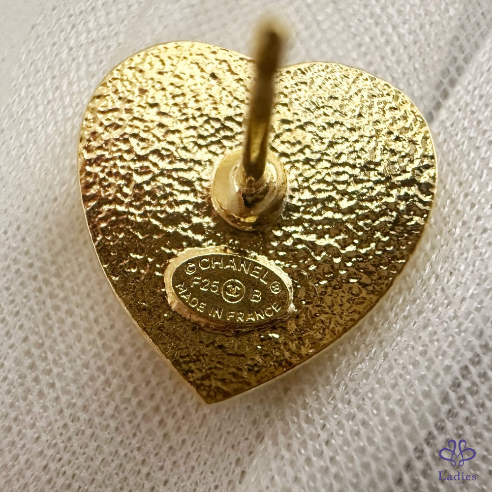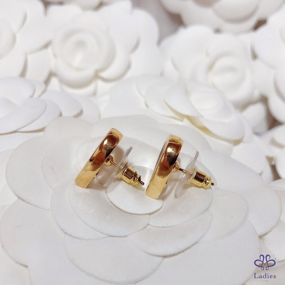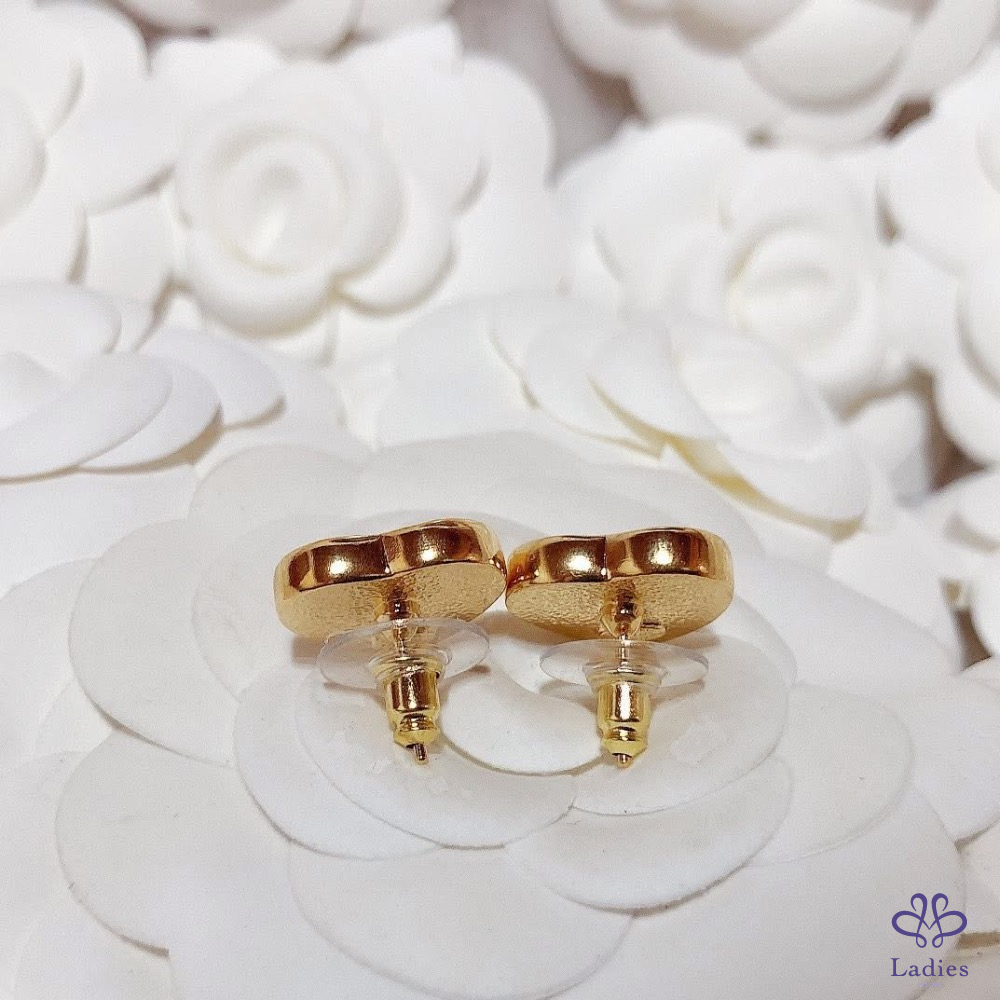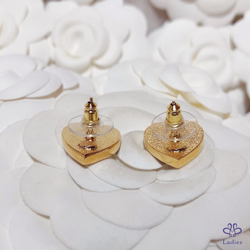 首頁 精品配件 CHANEL 香奈兒 小香 25B 黑色琺瑯 金邊 愛心 水鑽 雙C logo水鑽 針式 耳環 全新✨
