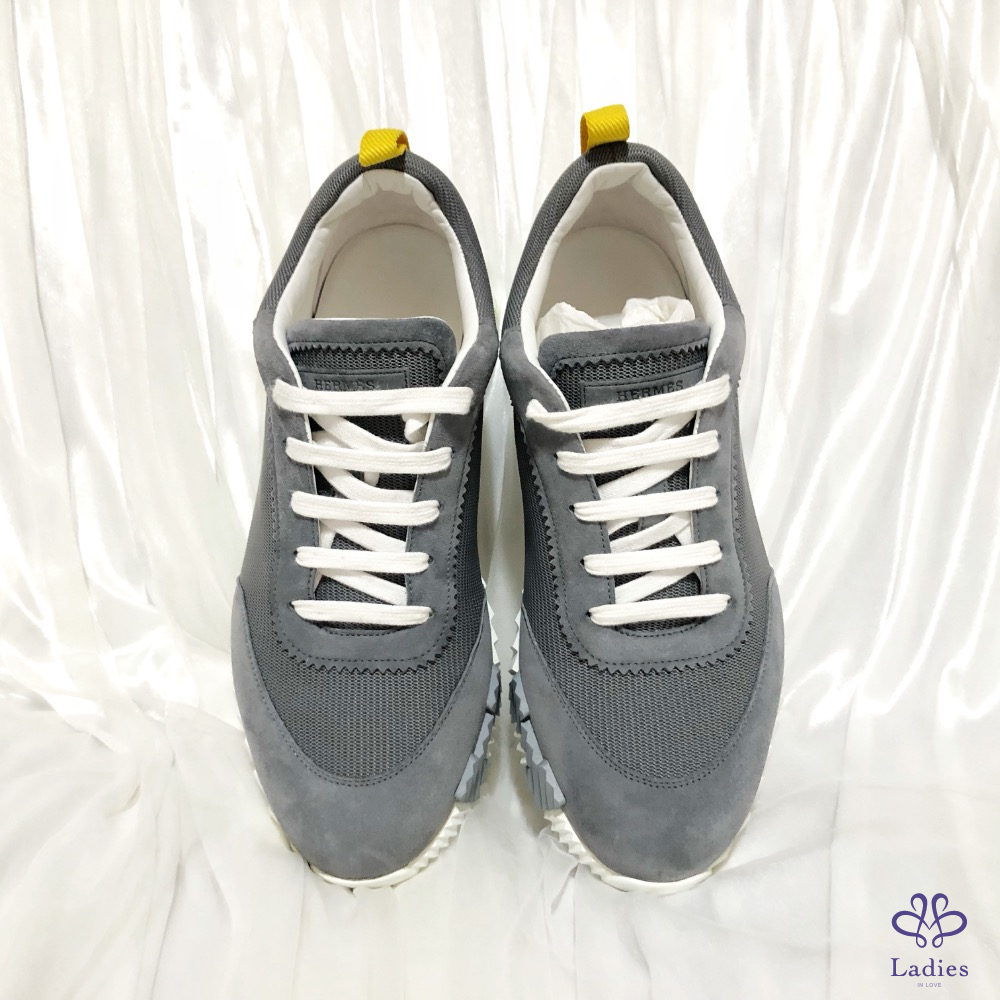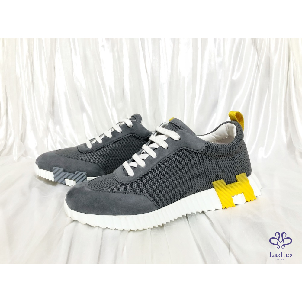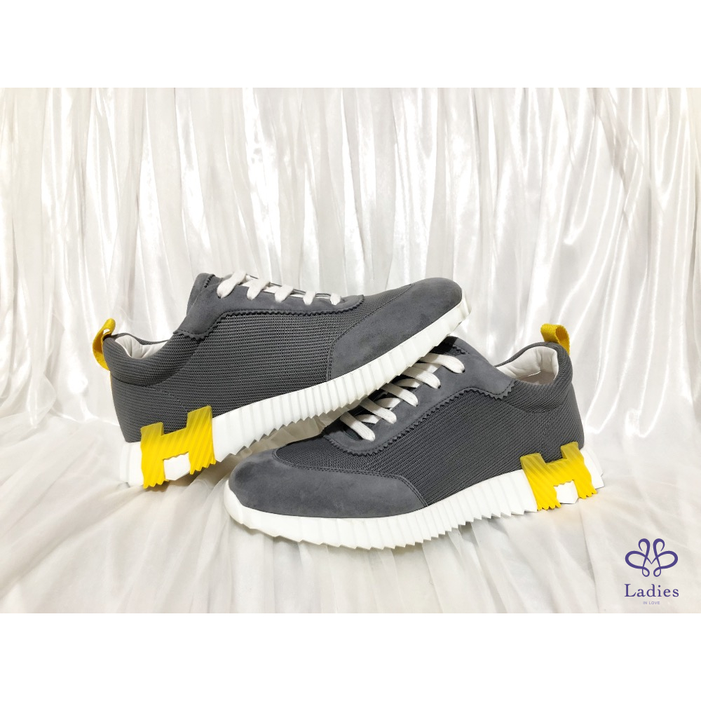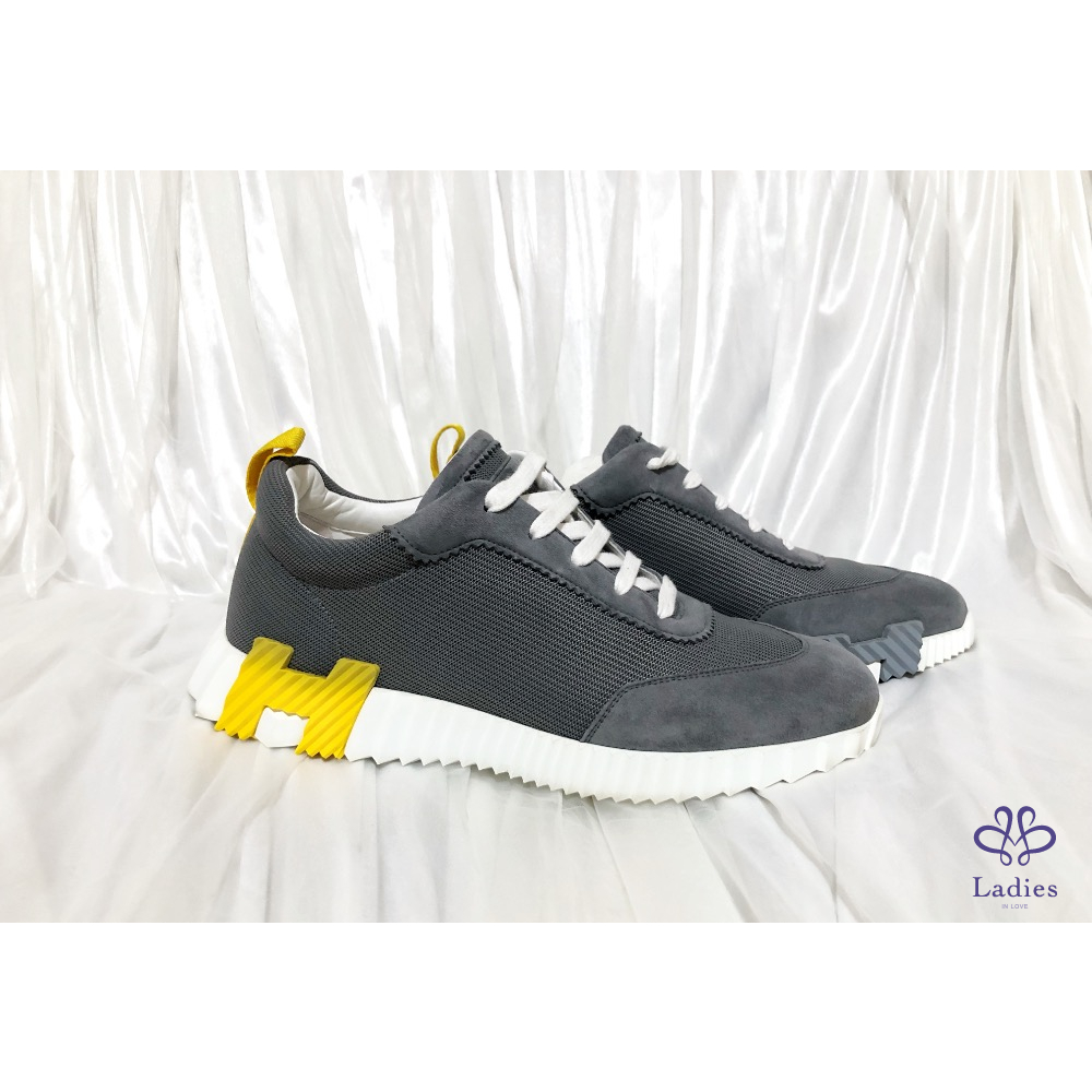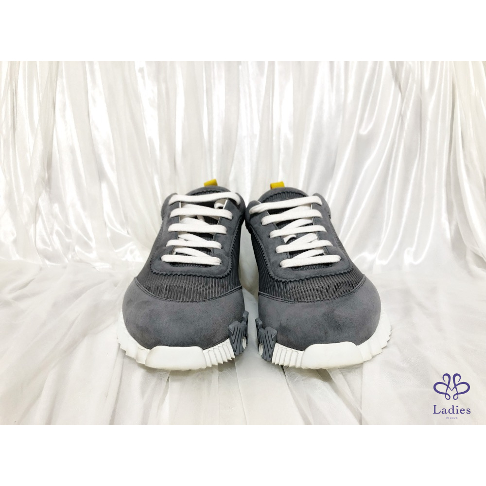 Hermes 二手美品 灰色麂皮 拼布 Bouncing 運動鞋 41.5號✨