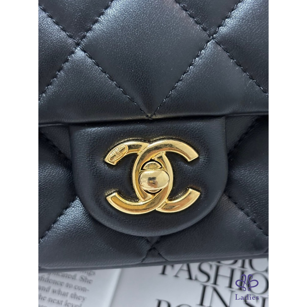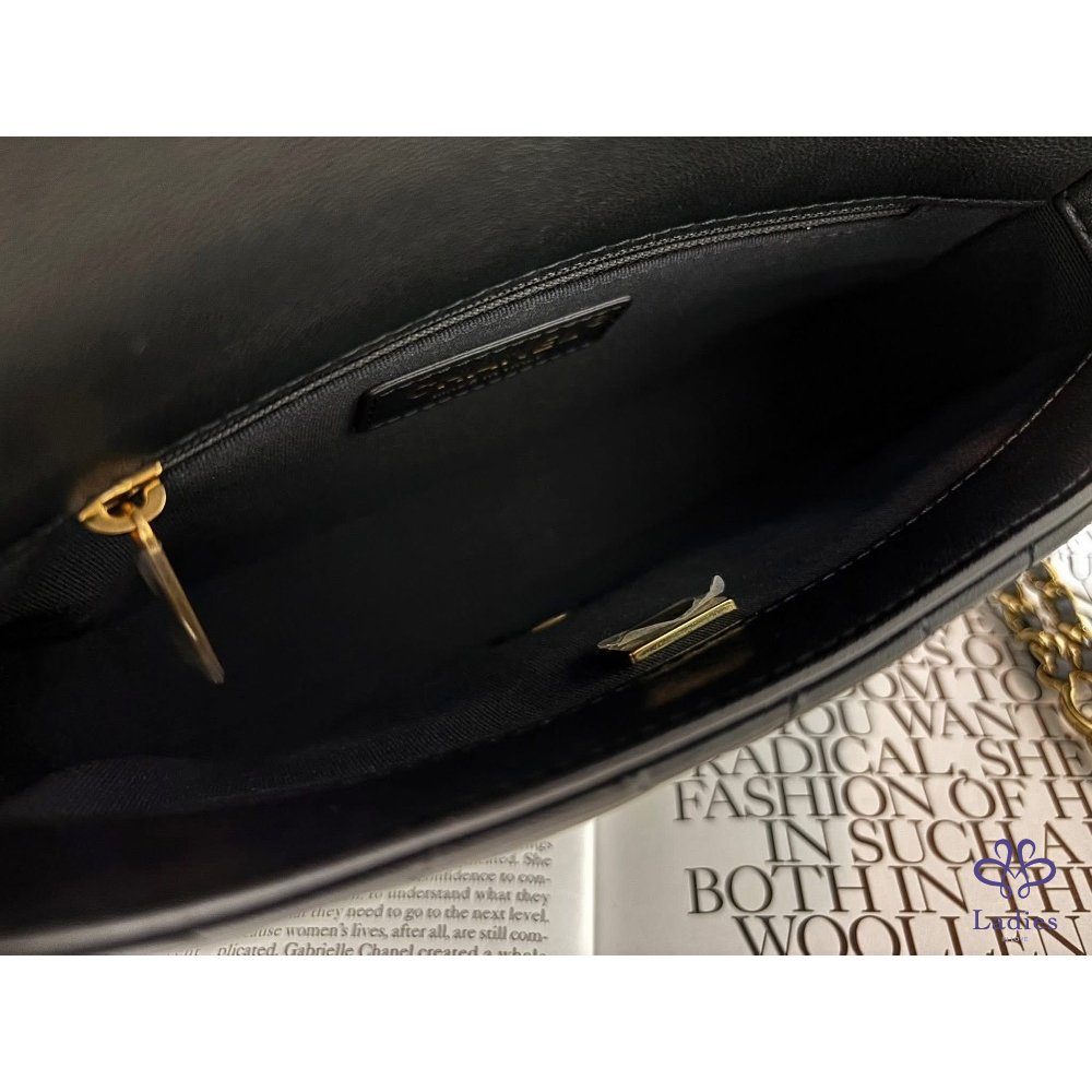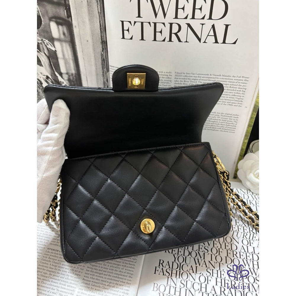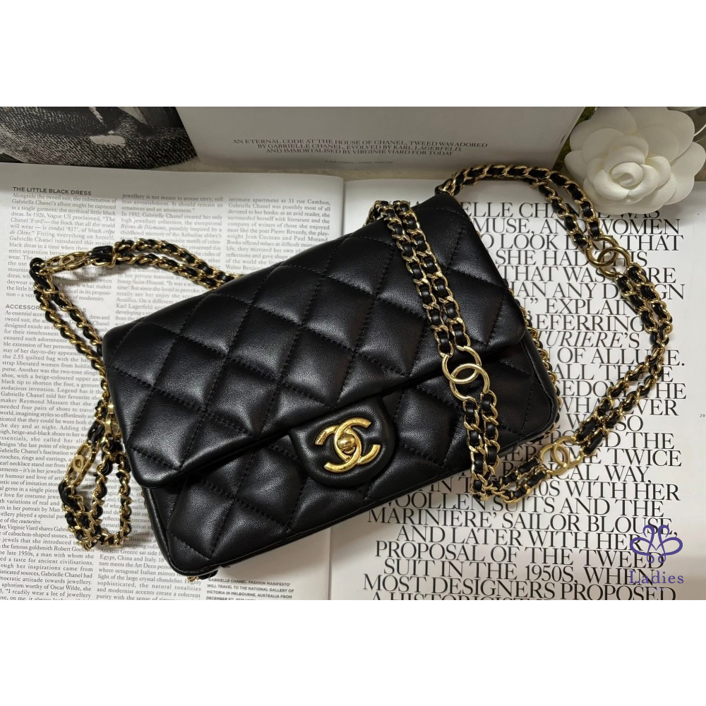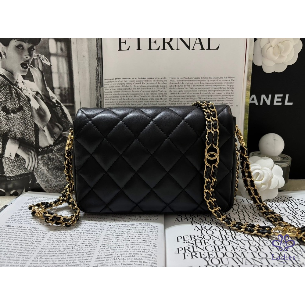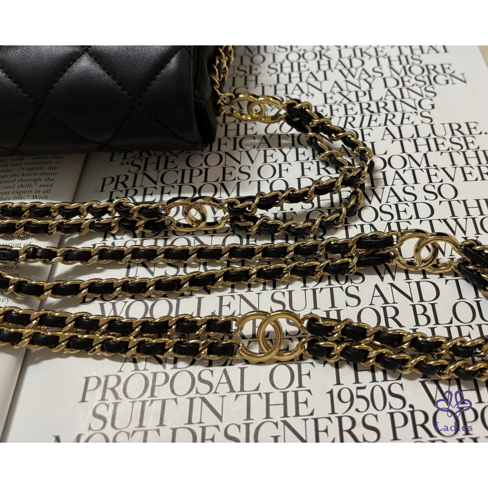 23C黑金羊皮雙鏈條滾邊mini20口蓋包
