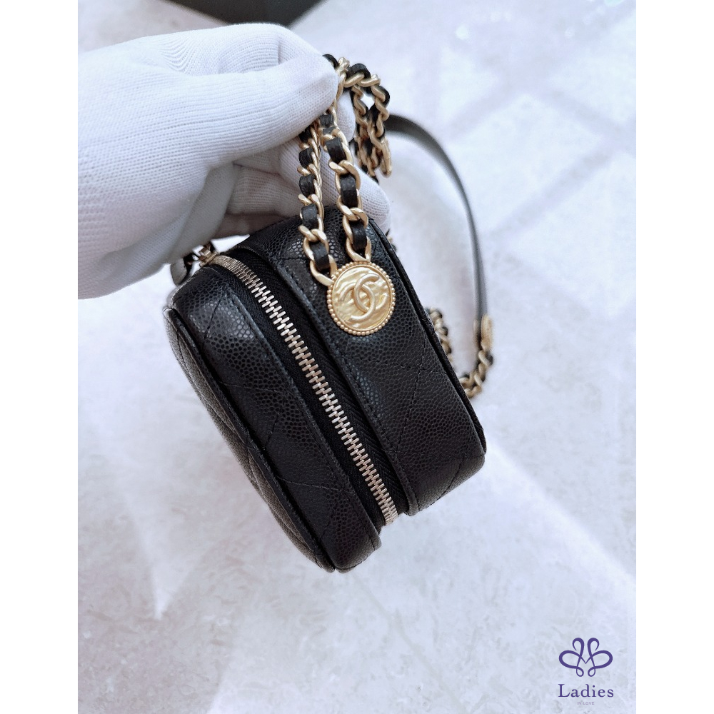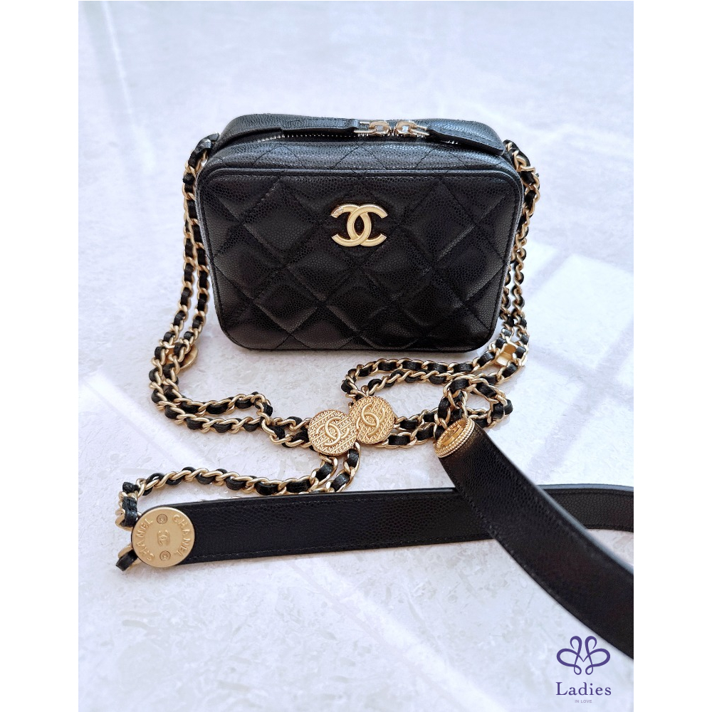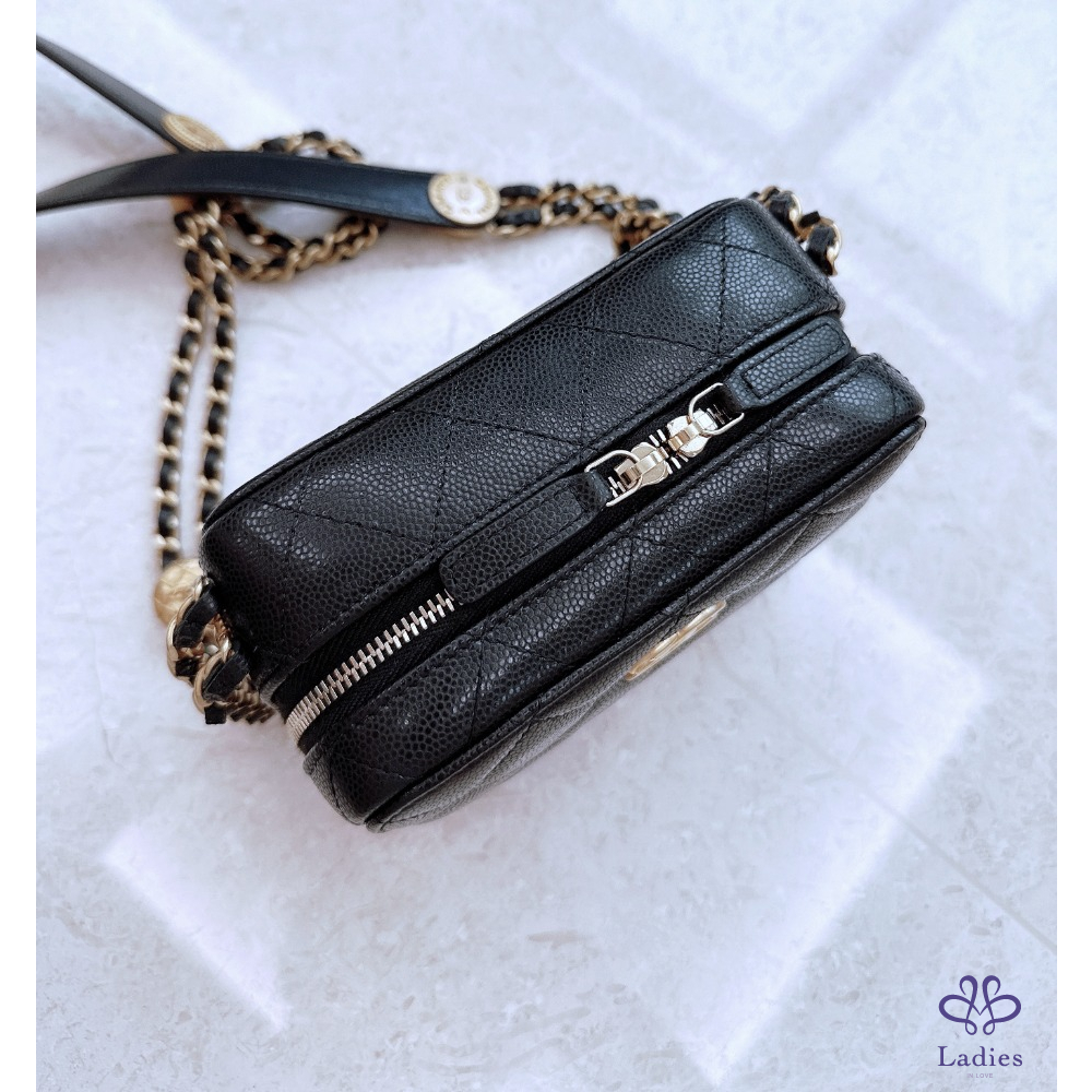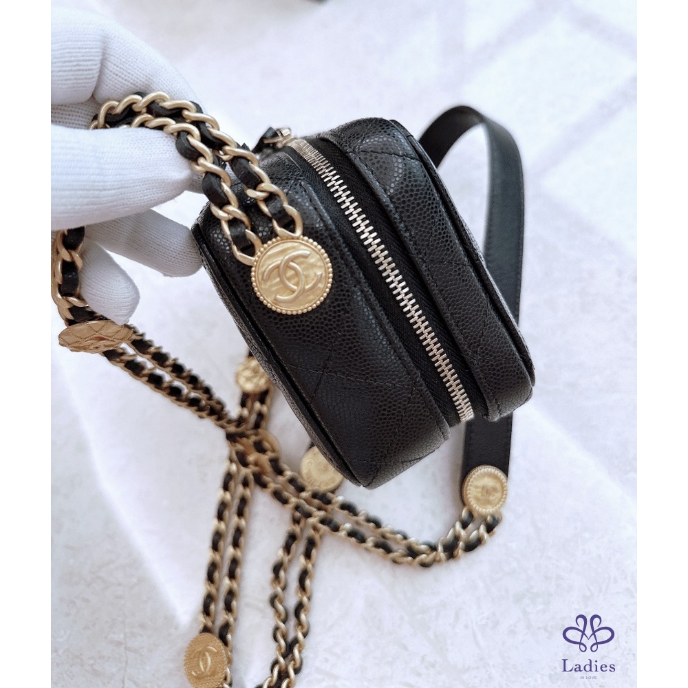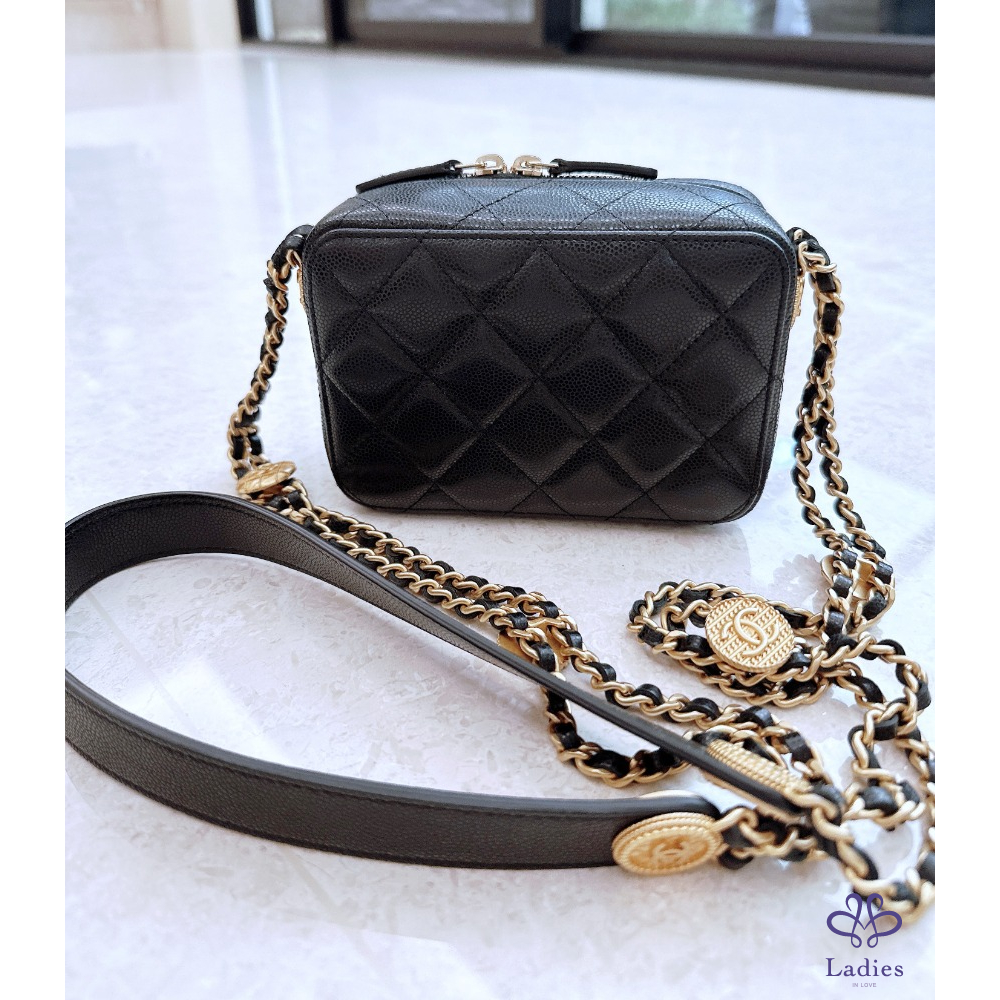 Chanel 金幣 相機包 黑金荔枝