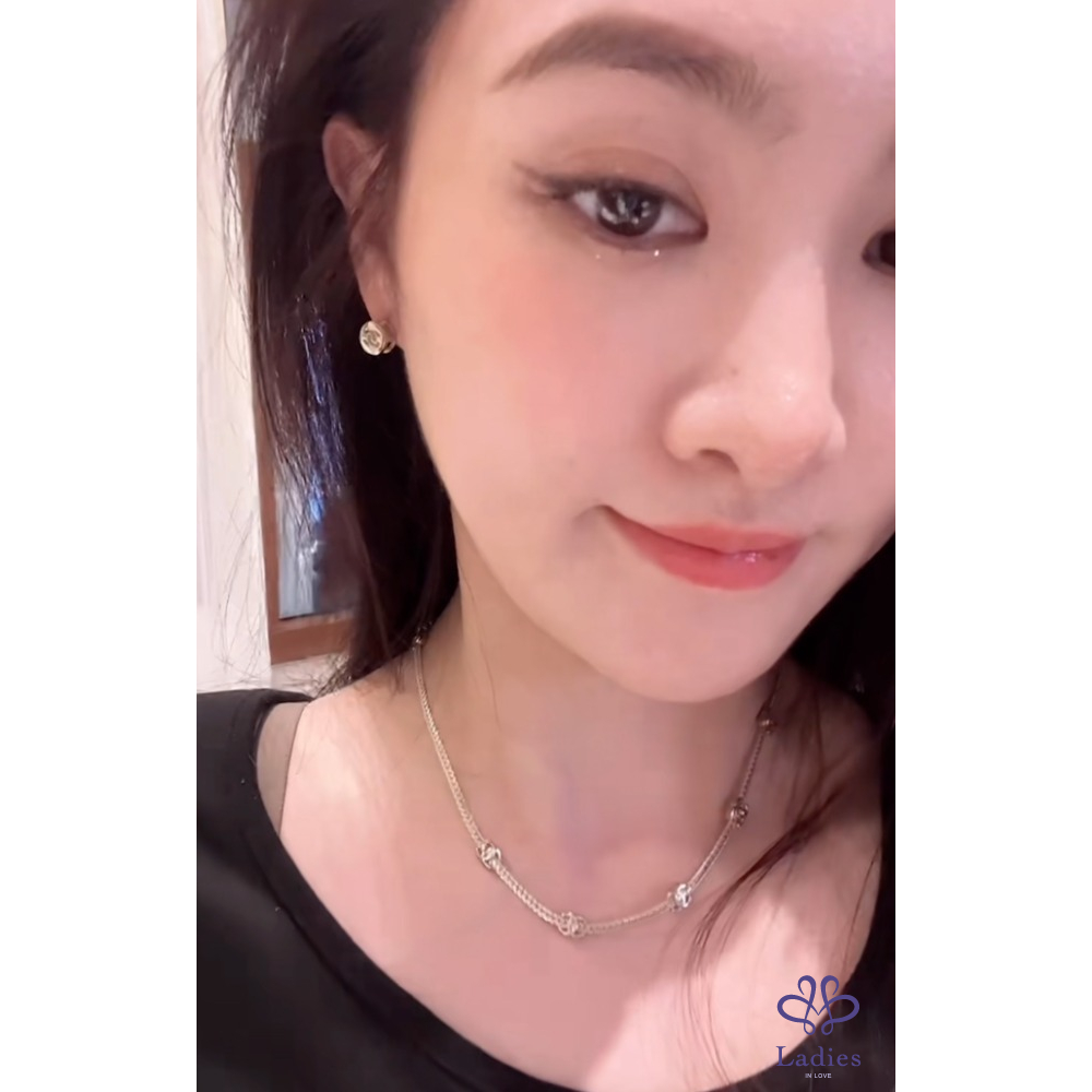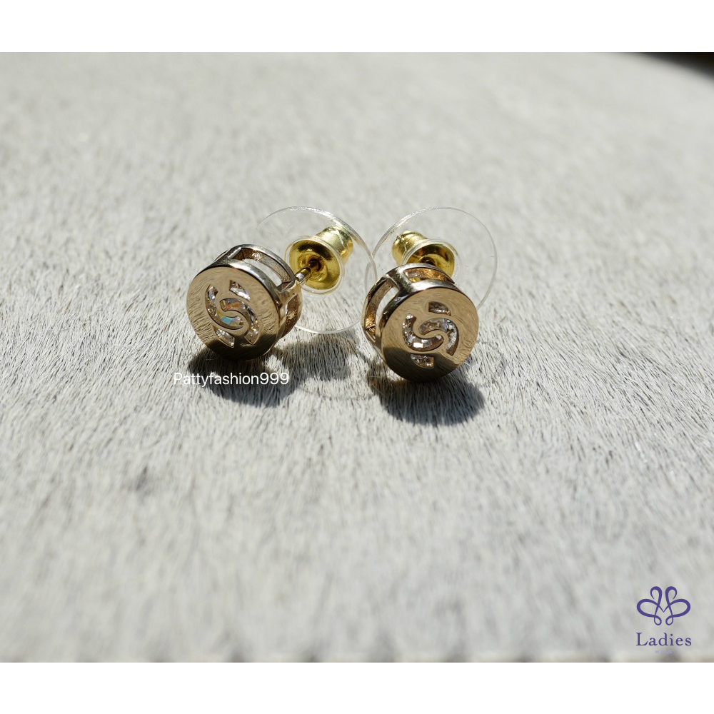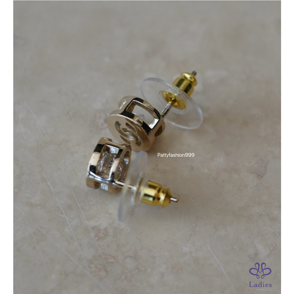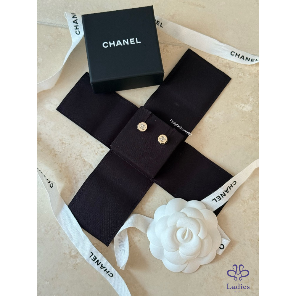 全新現貨 CHANEL 24B 小鈕扣水鑽外雙C標誌耳環/ 耳釘