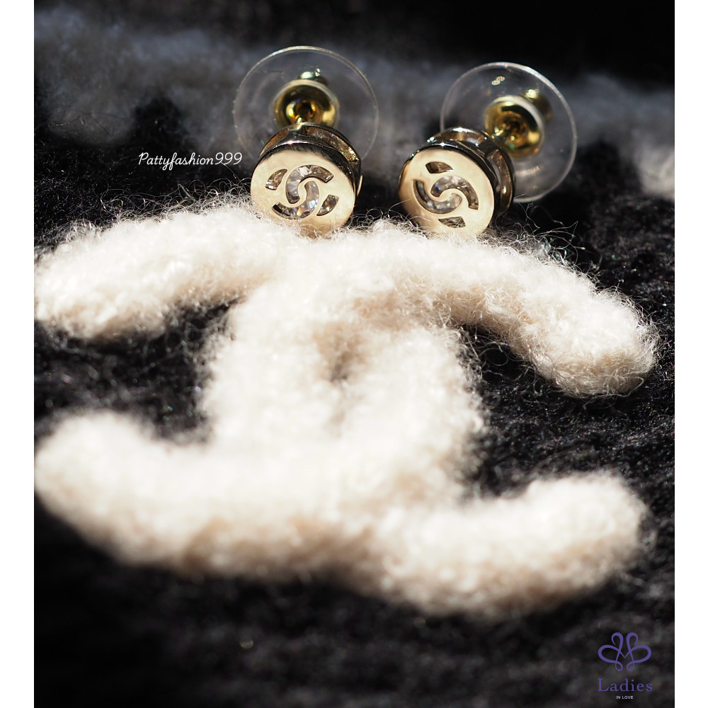 首頁 精品配件 全新現貨 CHANEL 24B 小鈕扣水鑽外雙C標誌耳環/ 耳釘