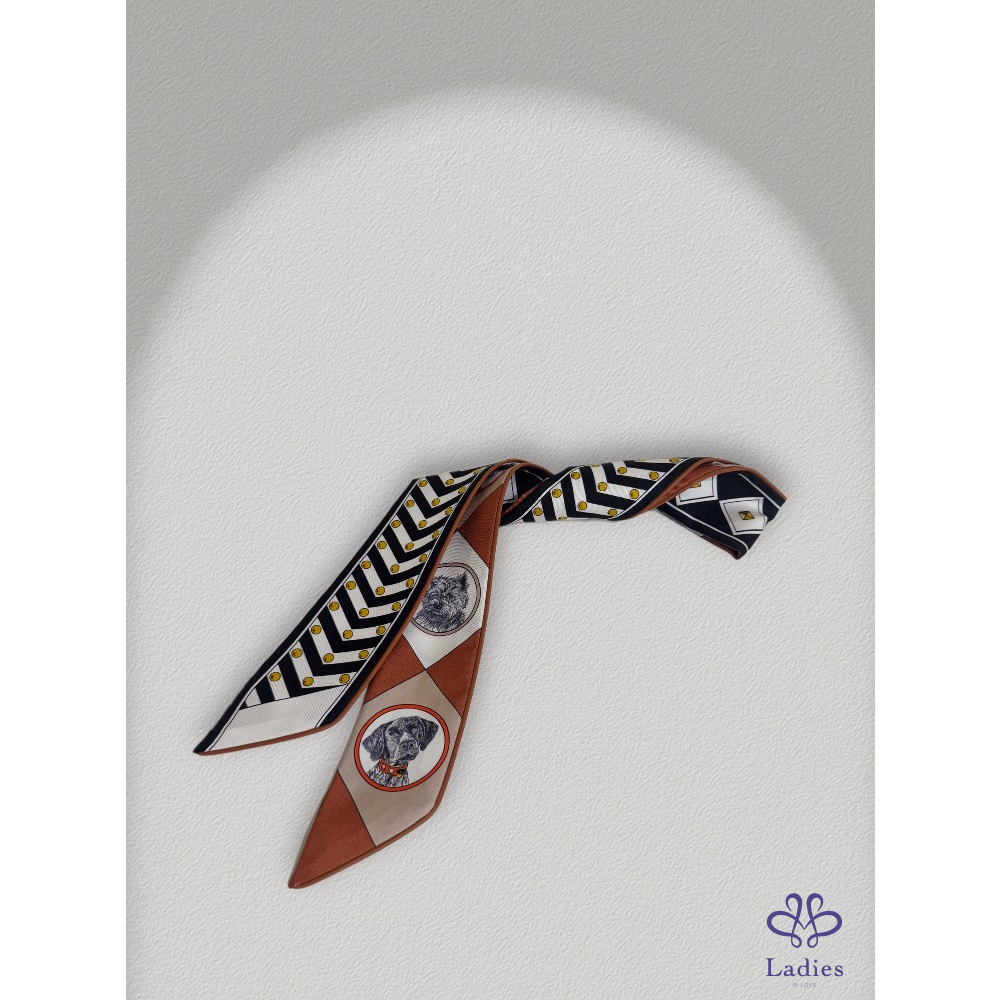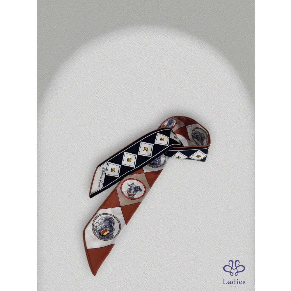 這款 Twilly 以不同犬種的精緻手繪為設計靈感,線條細膩、色彩和諧,在俏皮之餘仍保有 Hermès 一貫的典雅格調。
