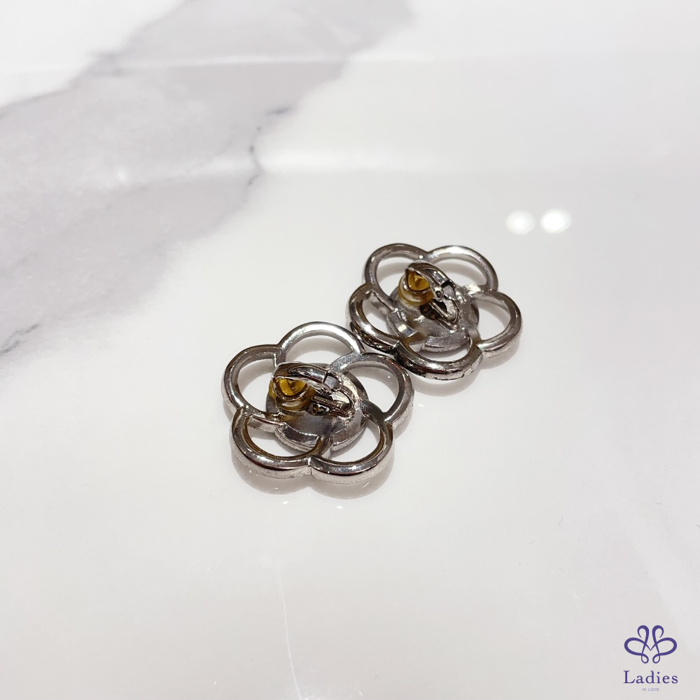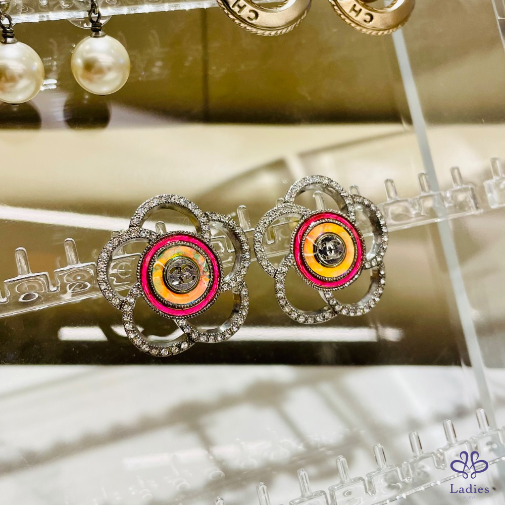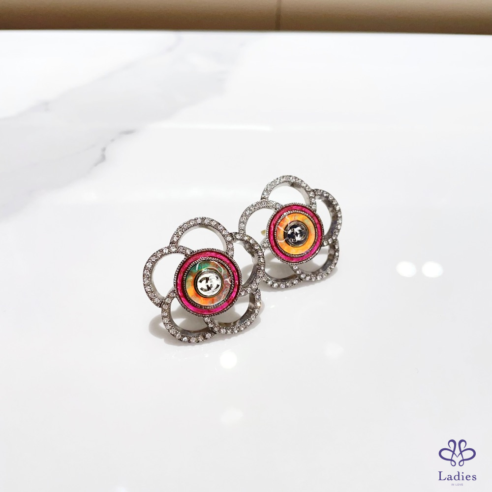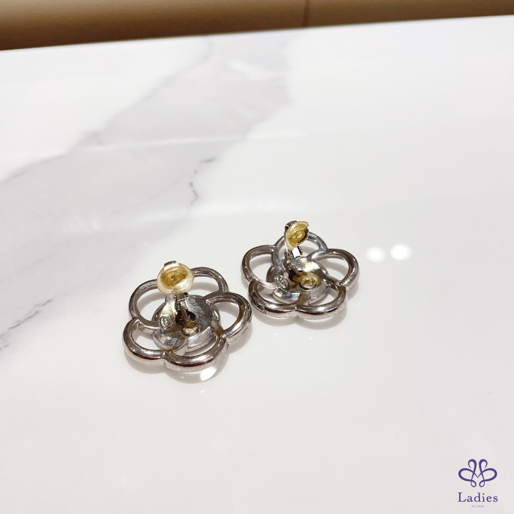 Chanel 山茶花亮鑽耳夾