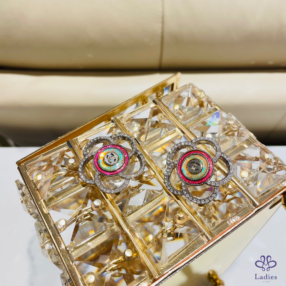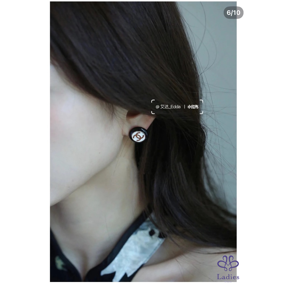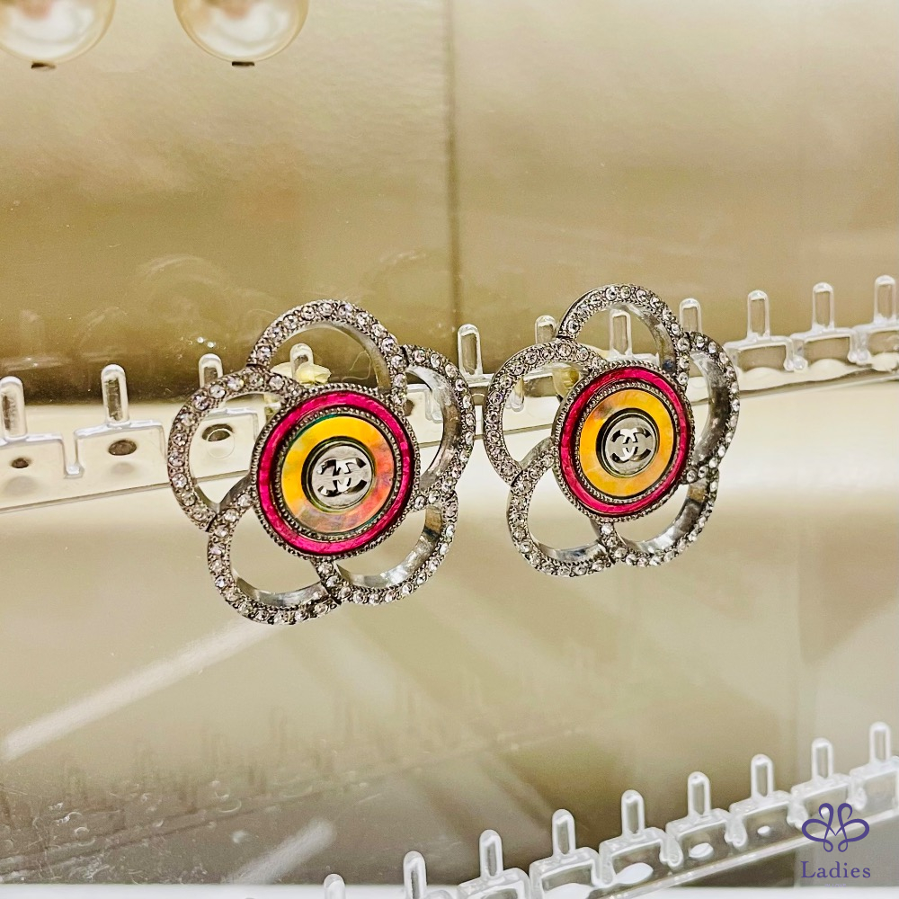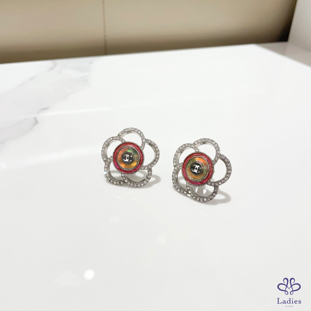 Chanel 山茶花亮鑽耳夾