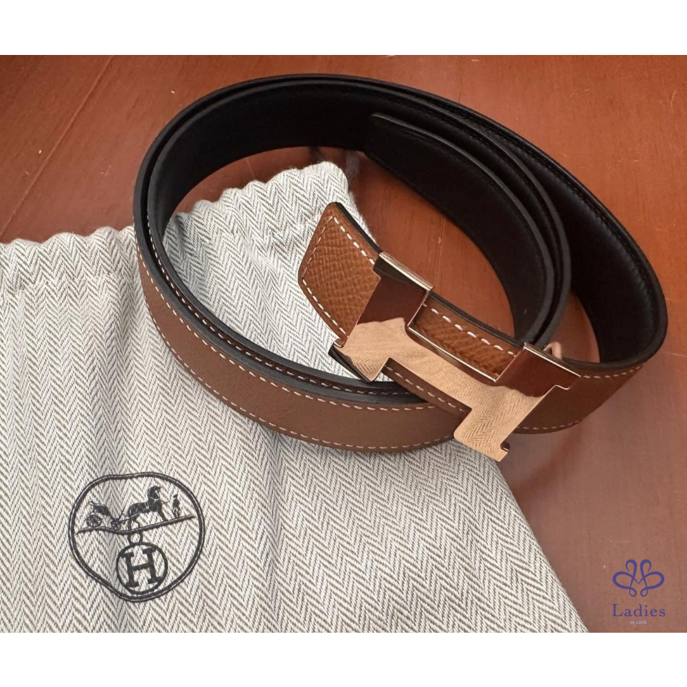 [近全新] Hermes 金棕+玫瑰金 皮帶 (24mm x 85cm)