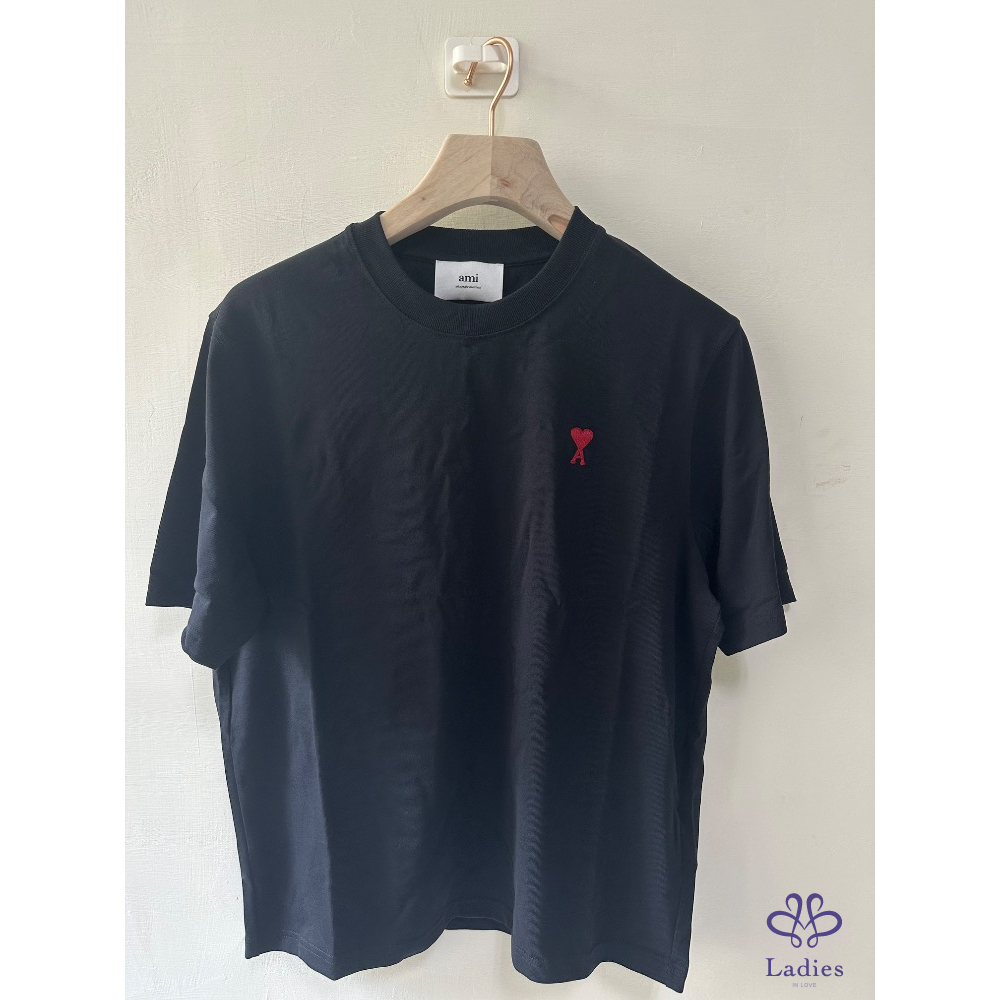 出售:全新正品 AMI 黑色刺繡小愛心短T