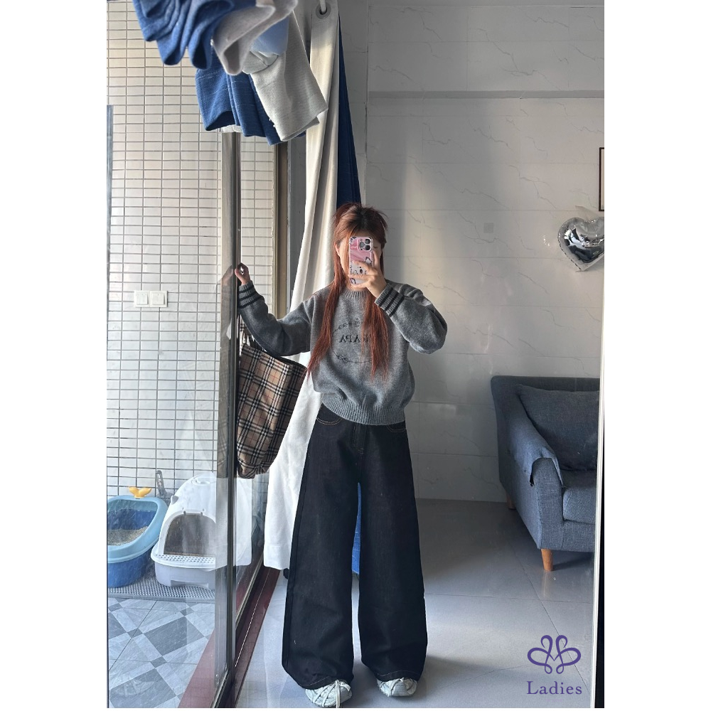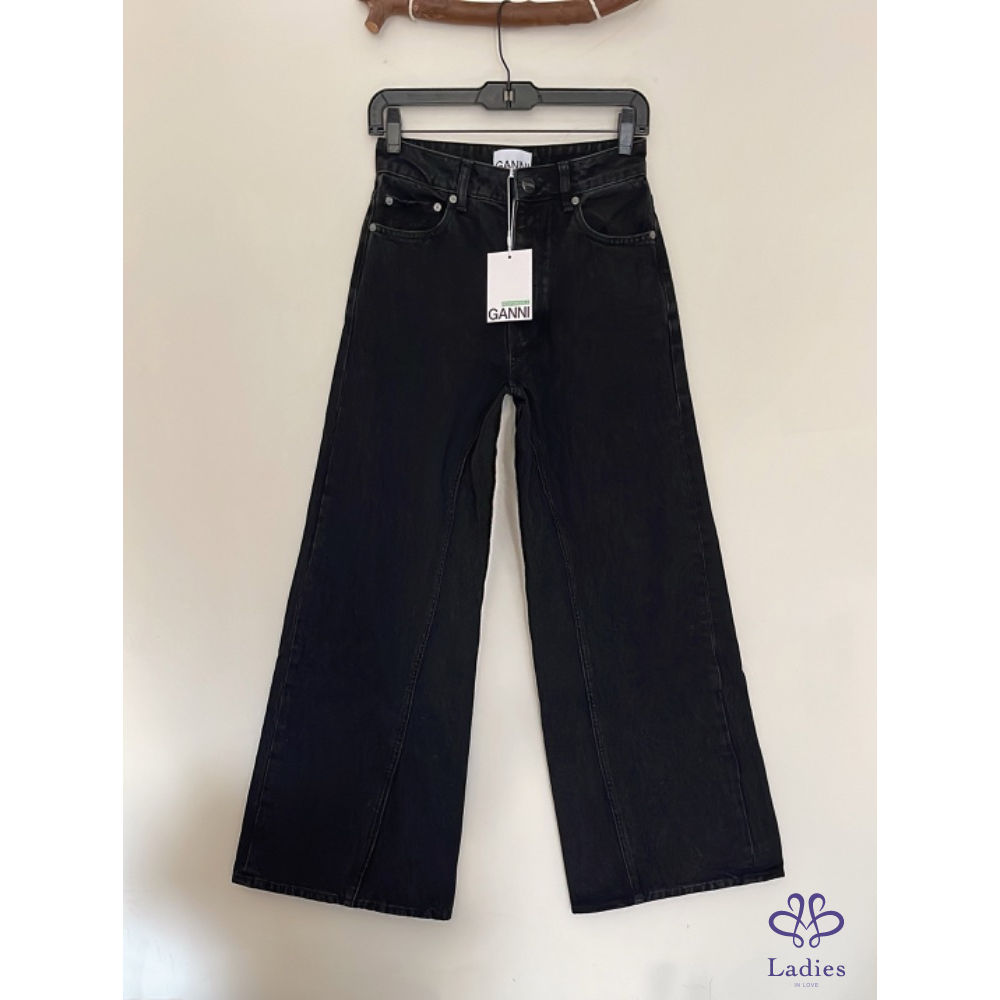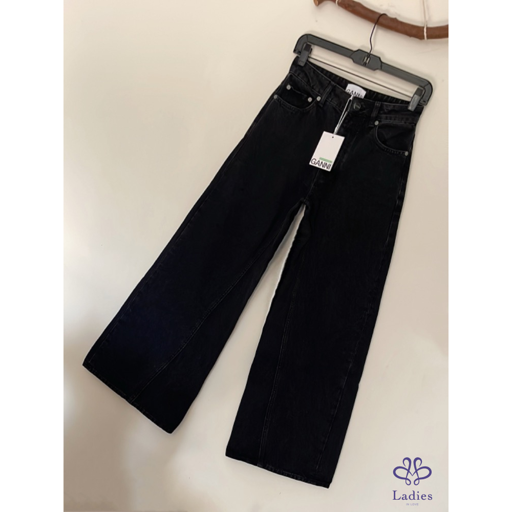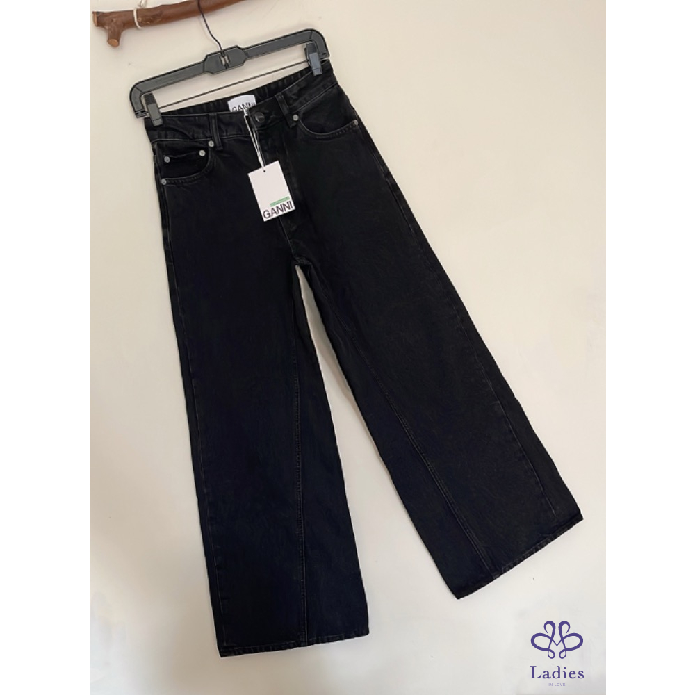 全新 GANNI率性黑色闊腿牛仔褲