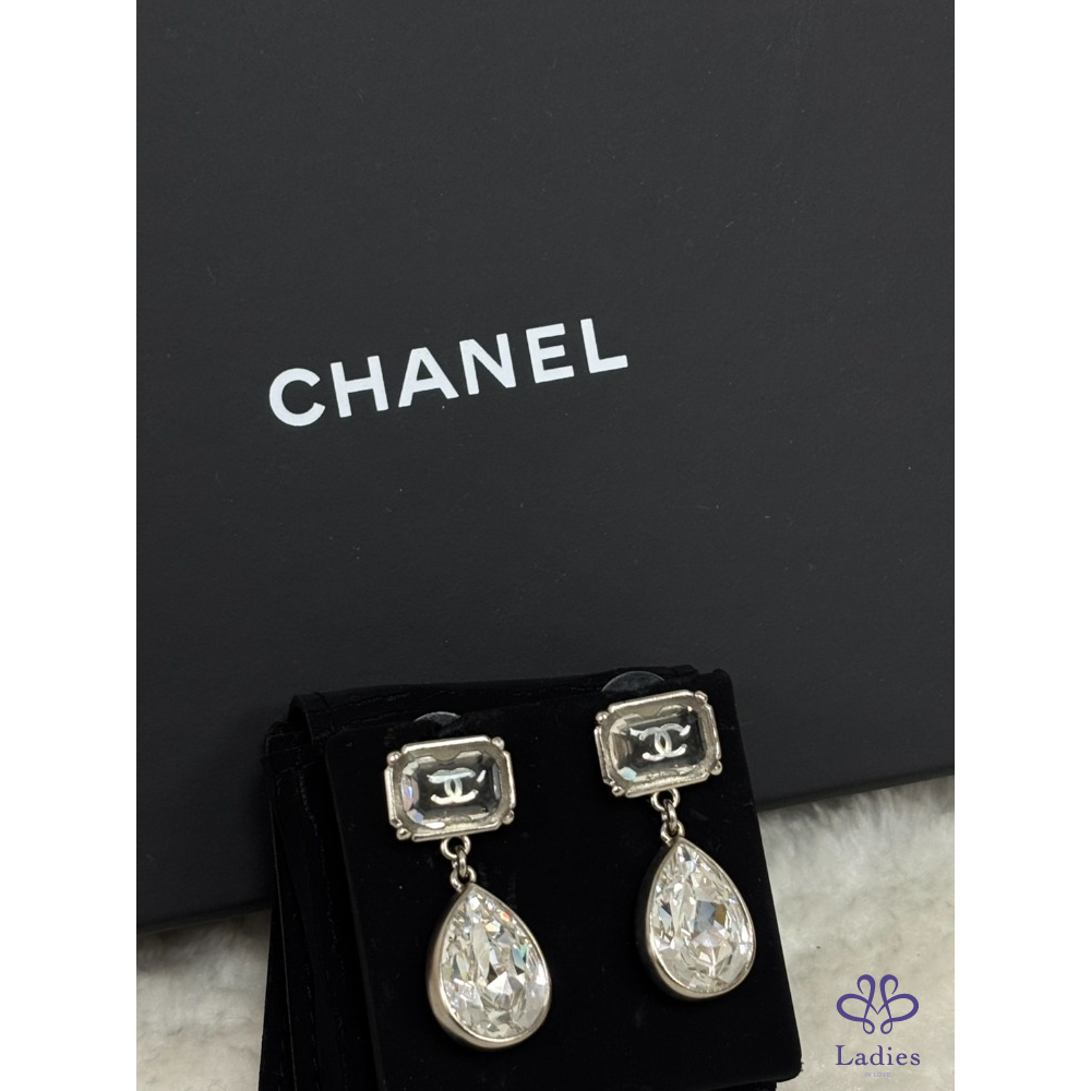 💡🐚小香 銀色吊墜水晶 耳釘