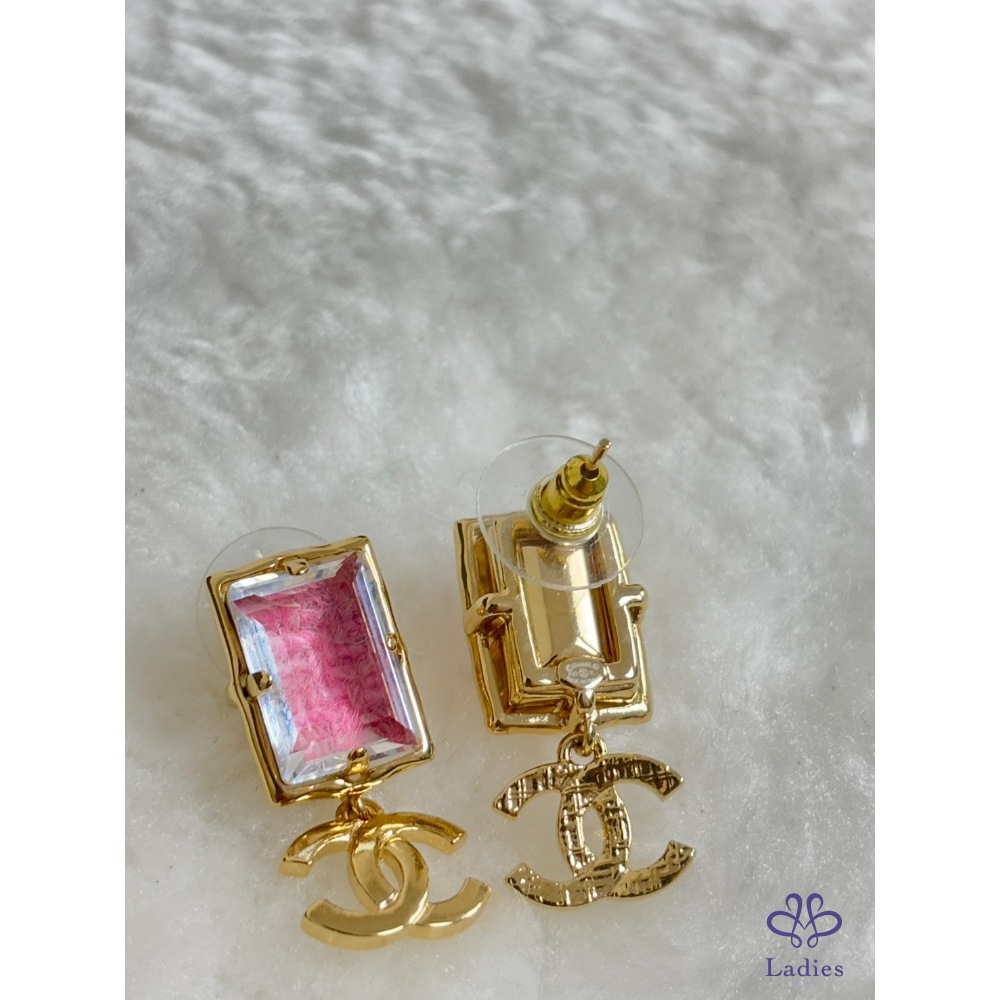 💡🐚小香 粉色水晶 淺金cc 耳釘