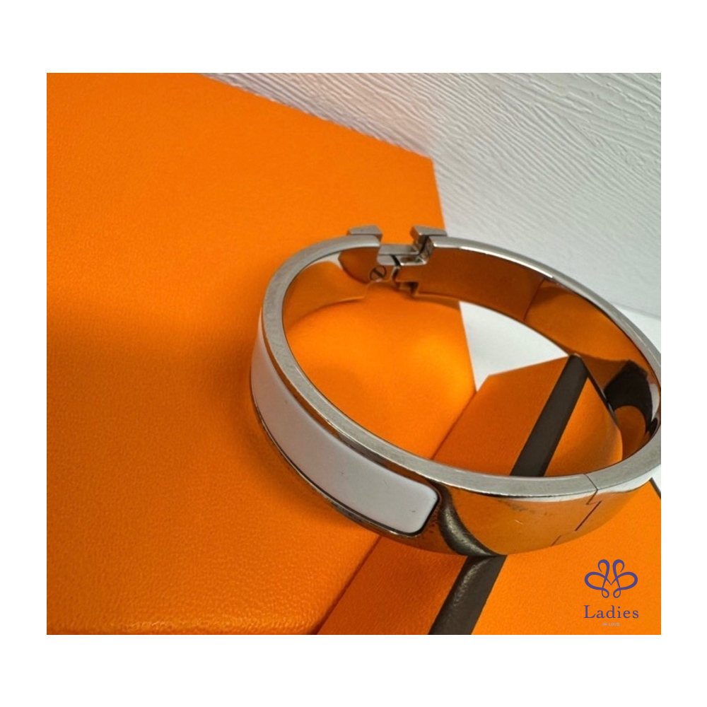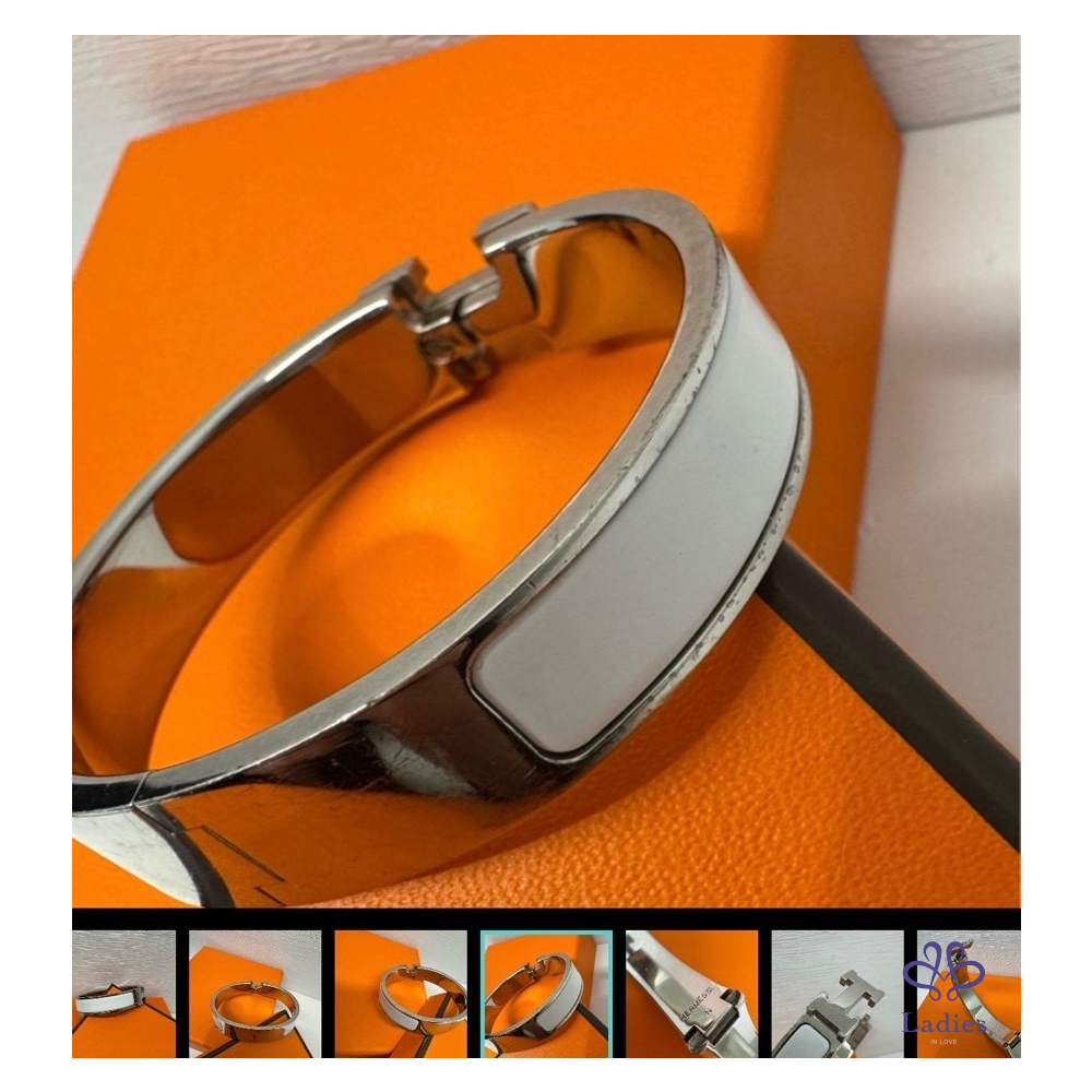 產品信息 🎀🐎Clic H手環 白色 🎀 ❤️H手環經典,且永不退流行,極具標誌性. 適合每個女孩,送禮/自用,當姊妹手環,聖誕禮物/生日禮物很棒!最紅又時尚的Blackpink團員Lisa都在戴喔💕 🌳售價:$13800 #白色金扣 #法國製 🎁附件:愛馬仕盒,防塵袋,使用小冊 🪻尺寸:PM #售出不退 #保證真品