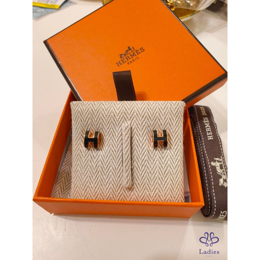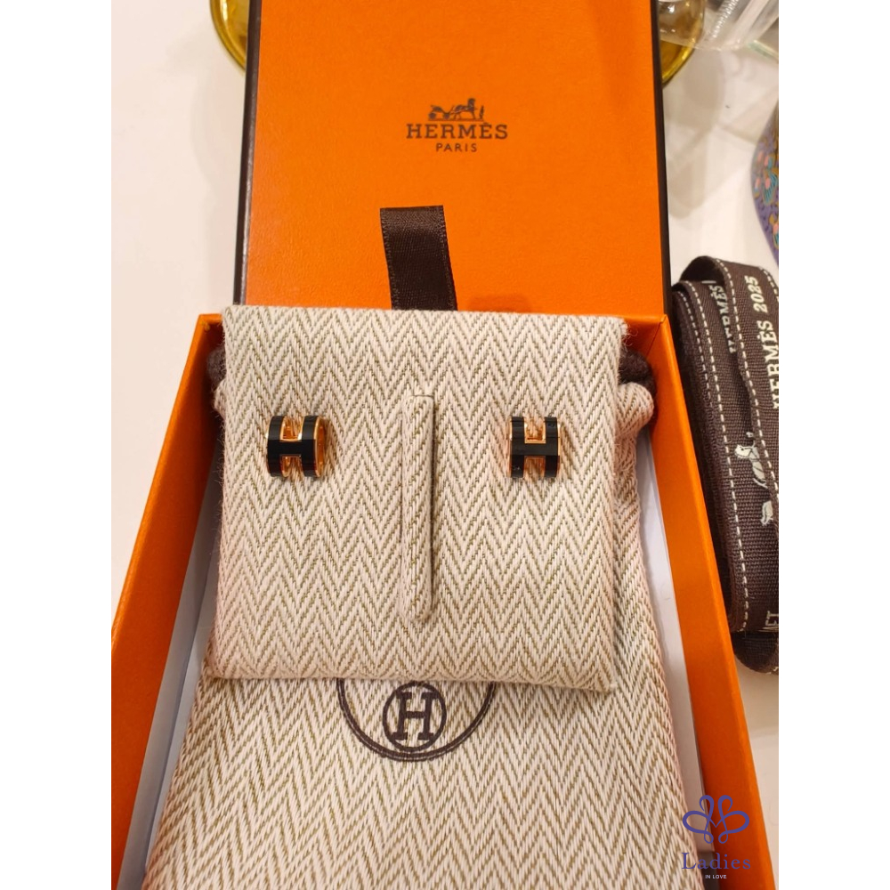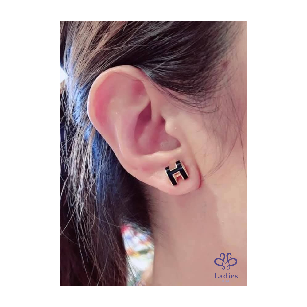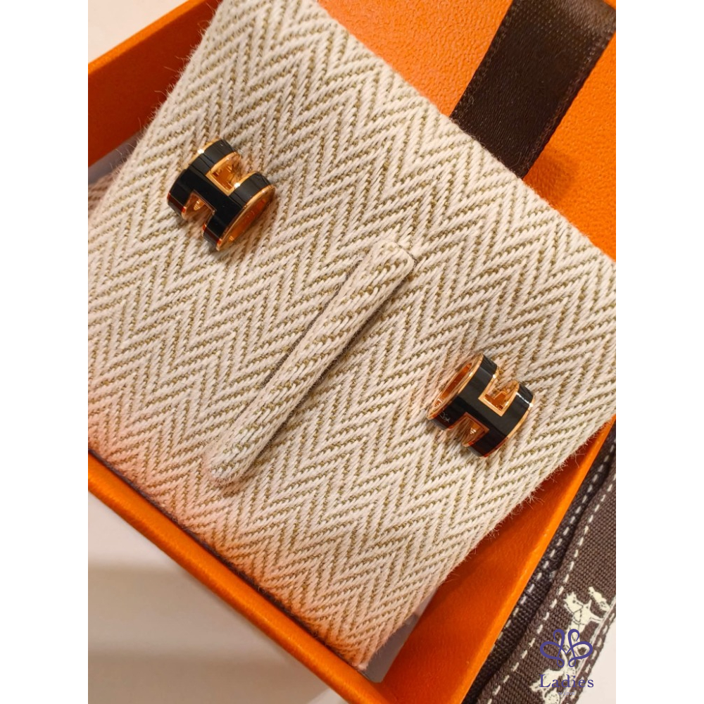 首頁 精品配件 Hermes pop H 橢圓琺瑯黑色耳環