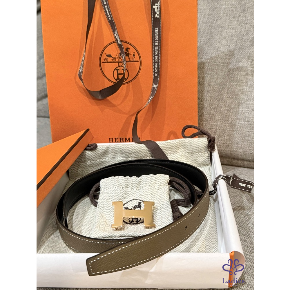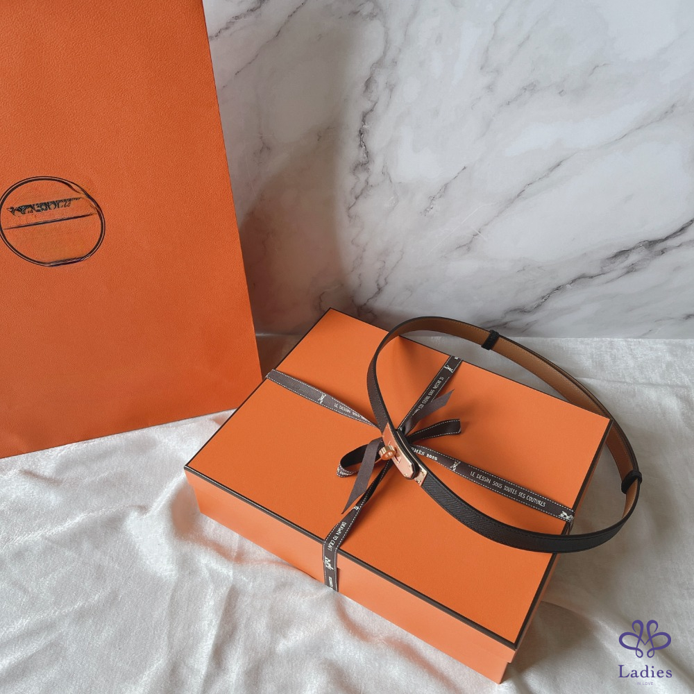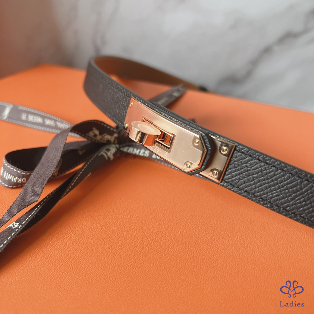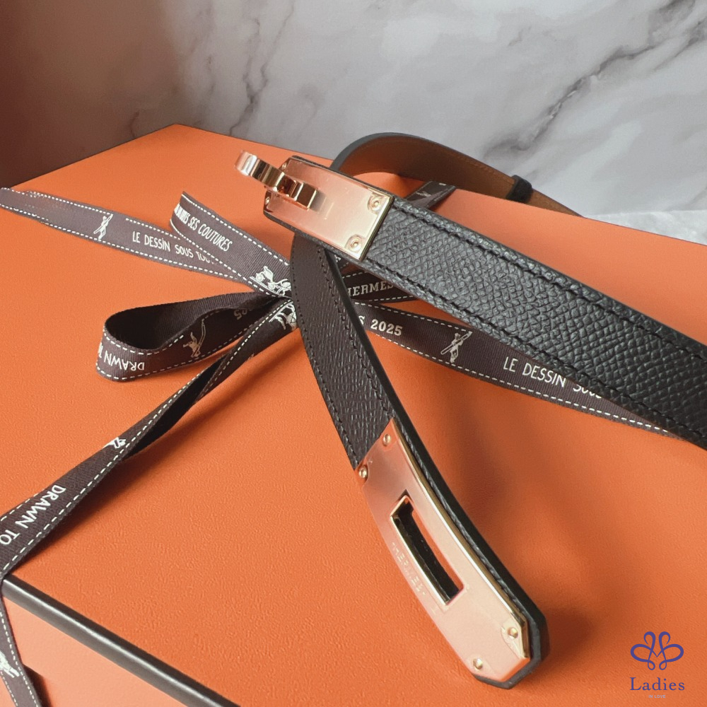 愛馬仕Hermes Kelly皮帶 黑x玫瑰金 2025K刻|丹麥購證x全配