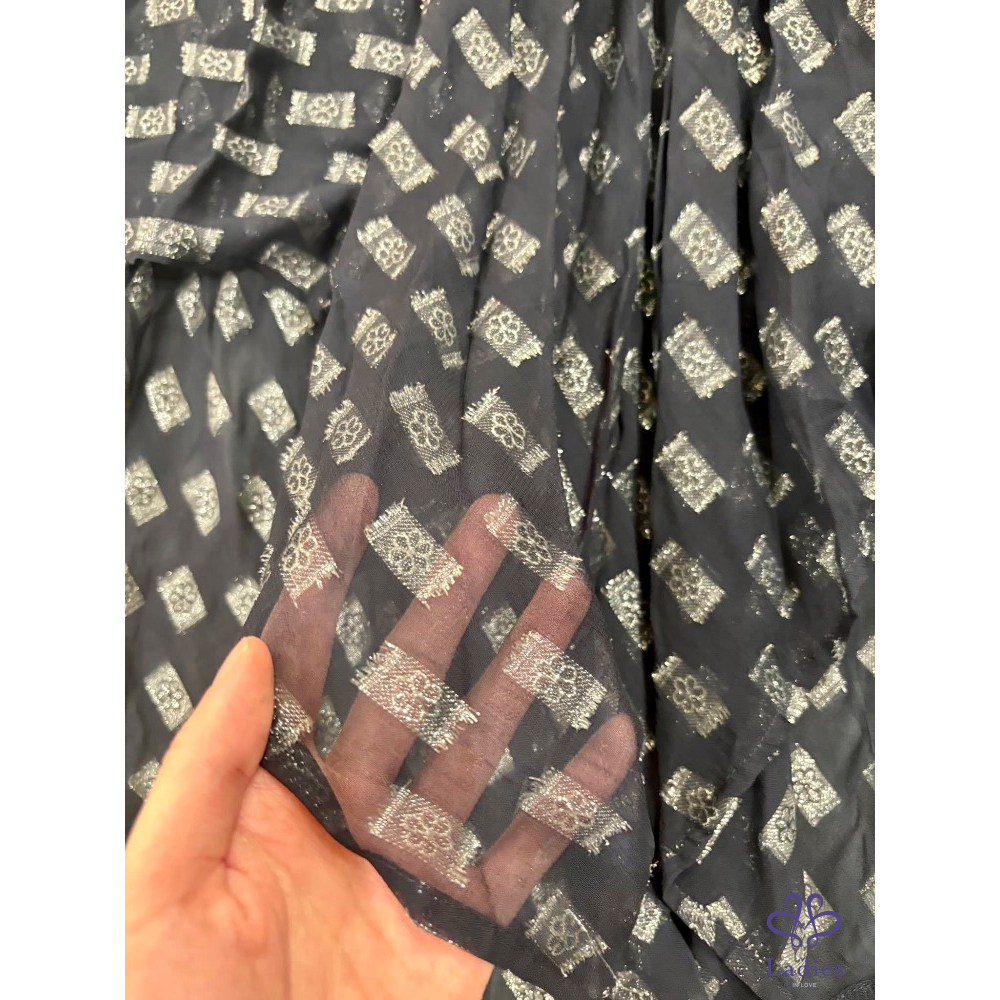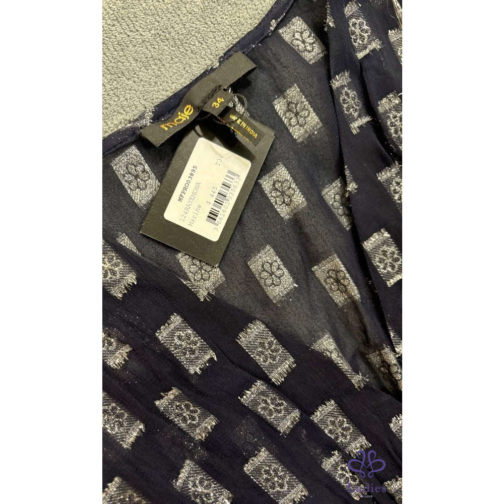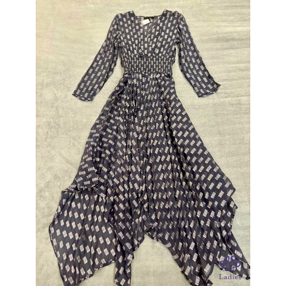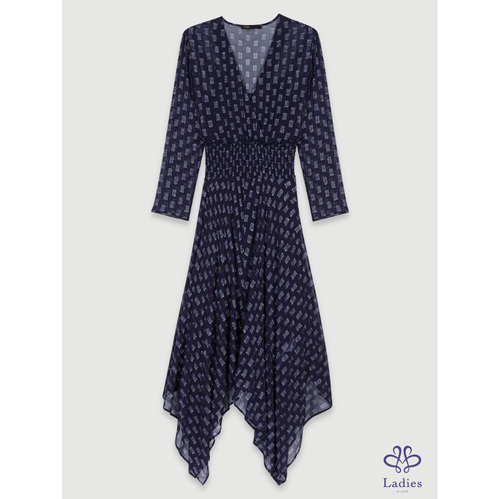MAJE 幾何銀紗印花深藍垂墜感洋裝