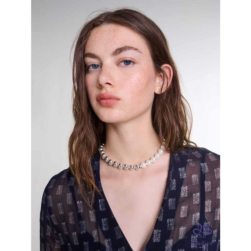 首頁 精品服飾 MAJE 幾何銀紗印花深藍垂墜感洋裝