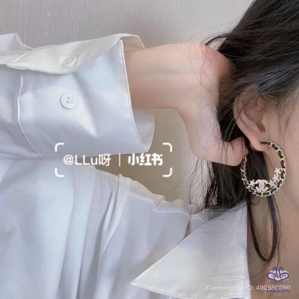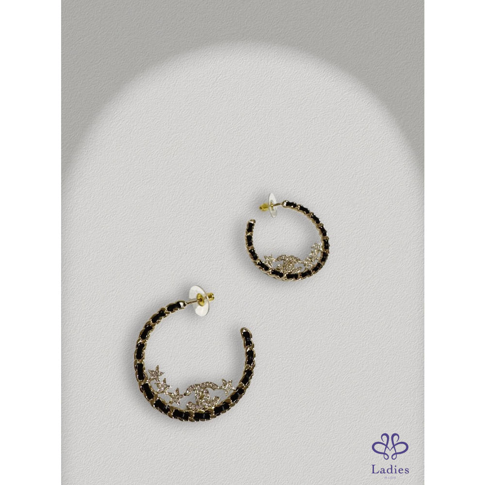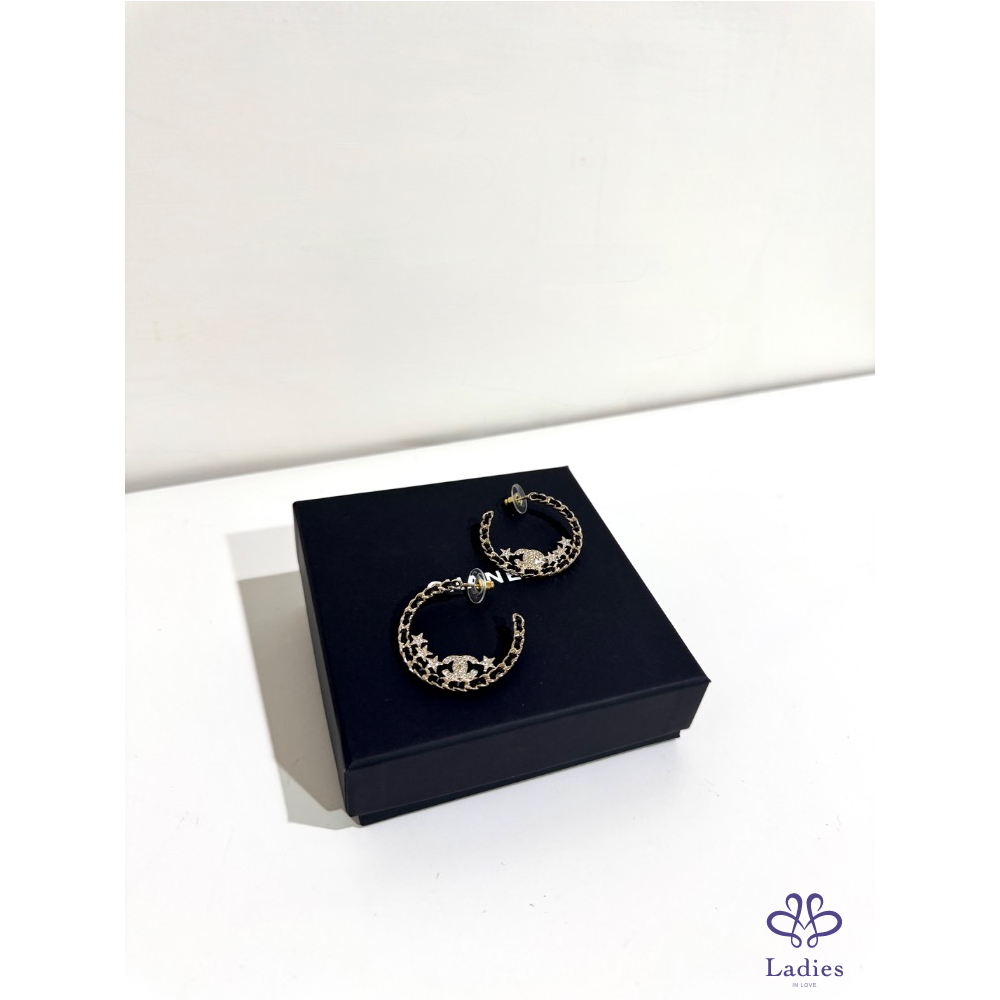 ❣️商品:✨ Chanel 23C 皮穿繩水鑽星星半圓耳環
