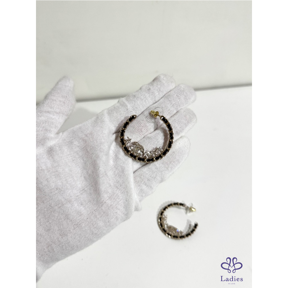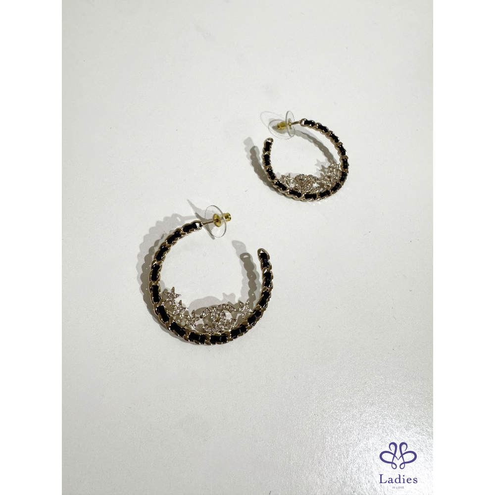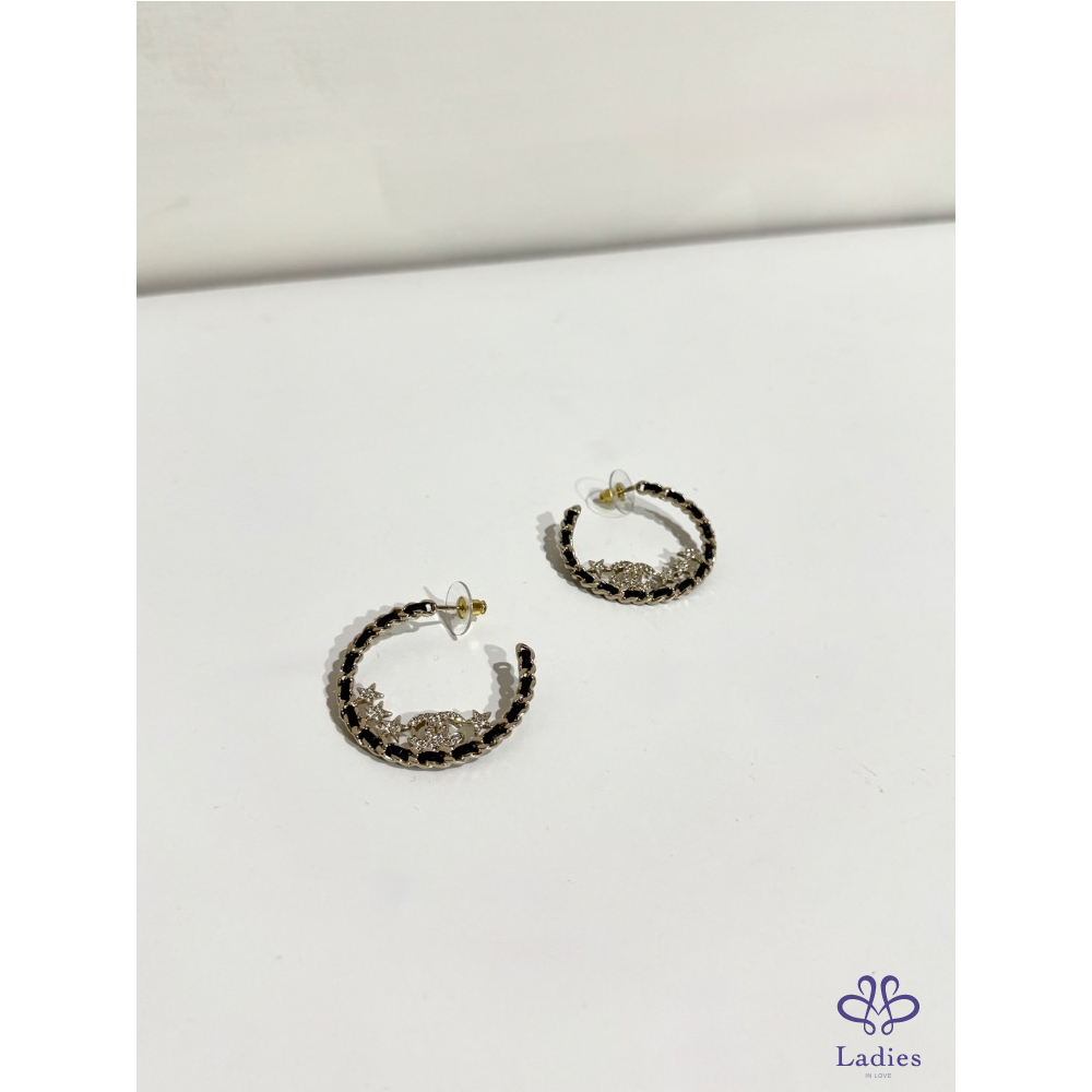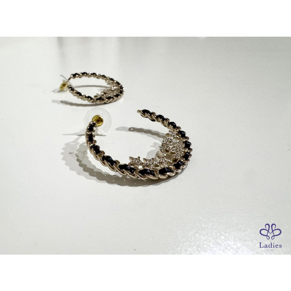 ✨ Chanel 23C 皮穿繩水鑽星星半圓耳環