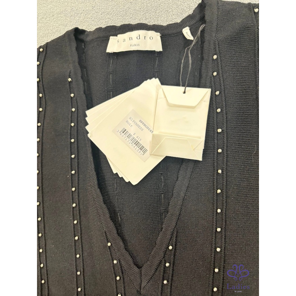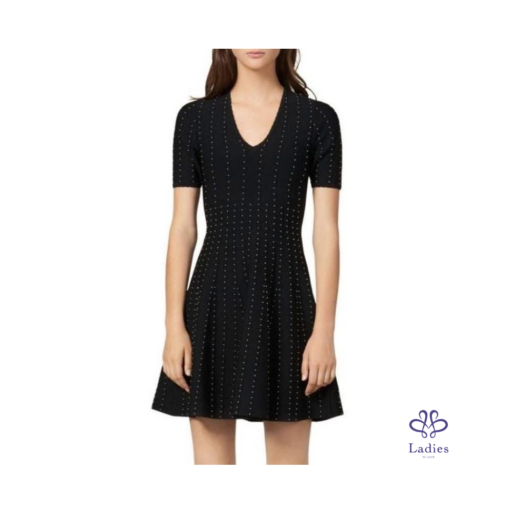 首頁 精品服飾 SANDRO 經典V領深藍串珠針織洋裝