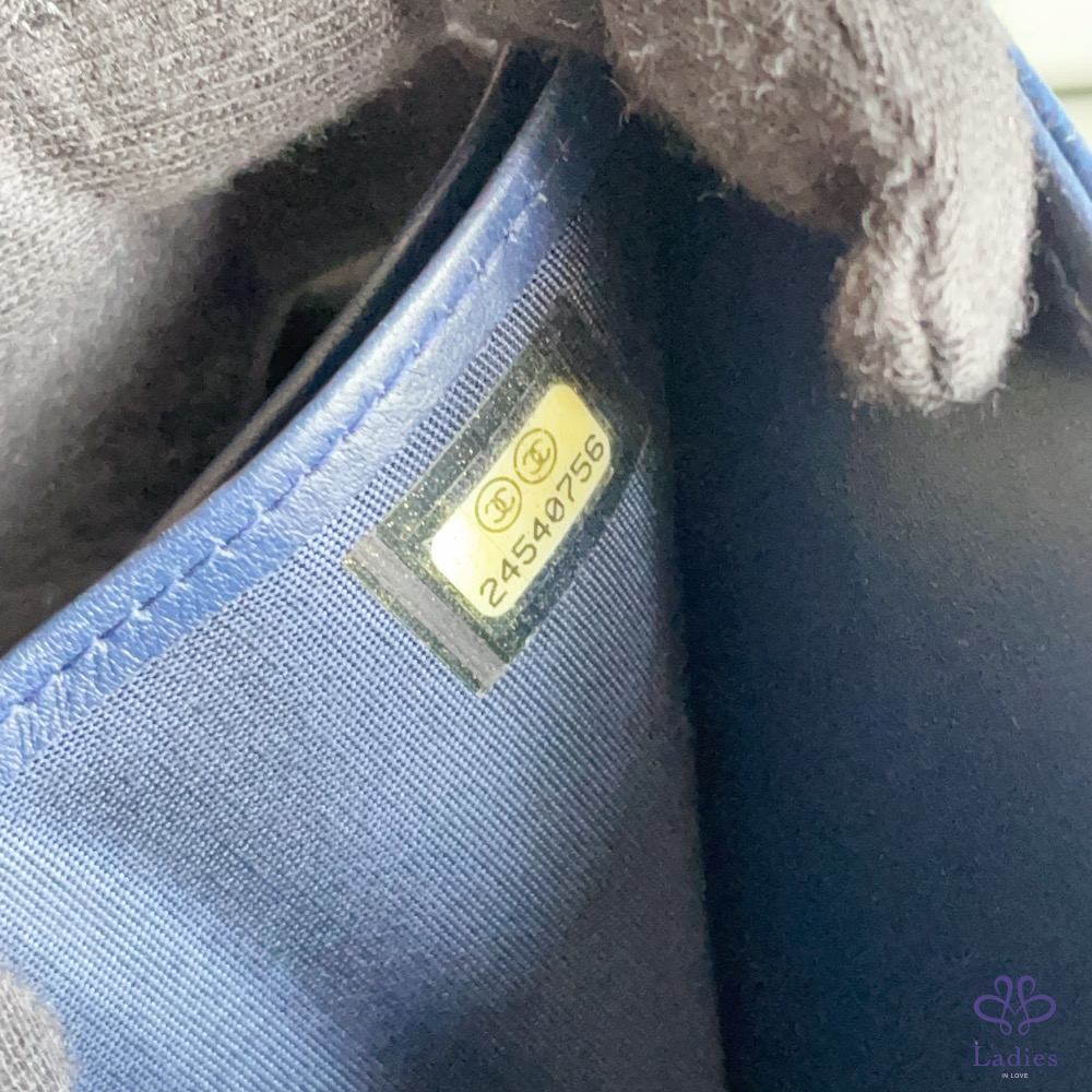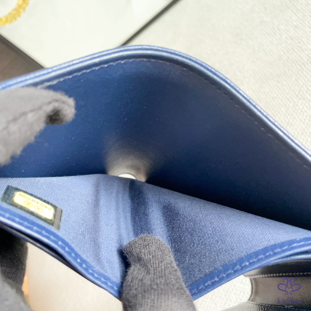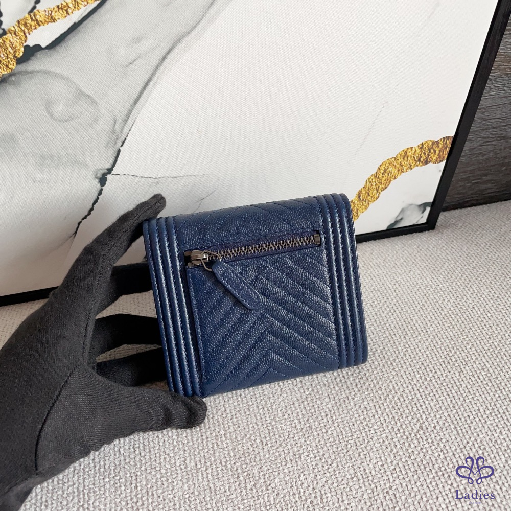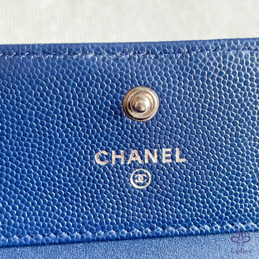 Chanel Boy 三折短夾 藍色銀釦山型紋