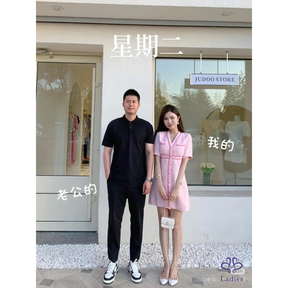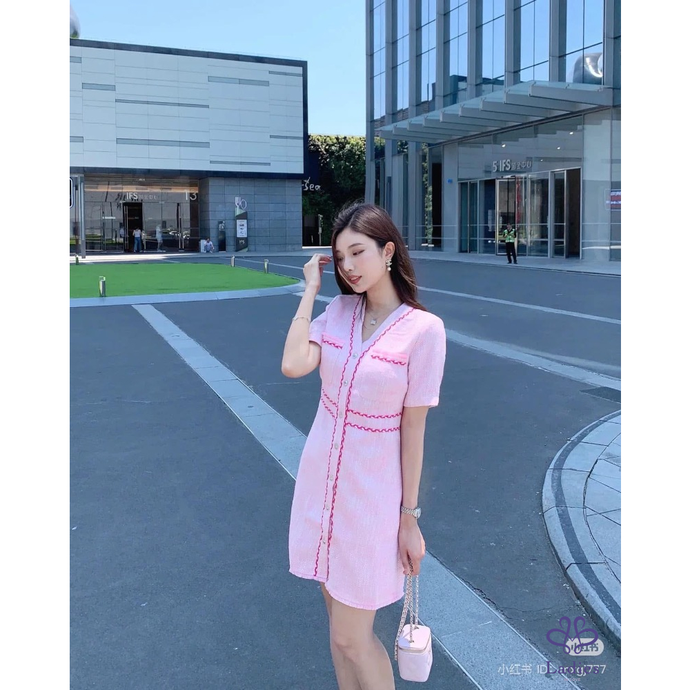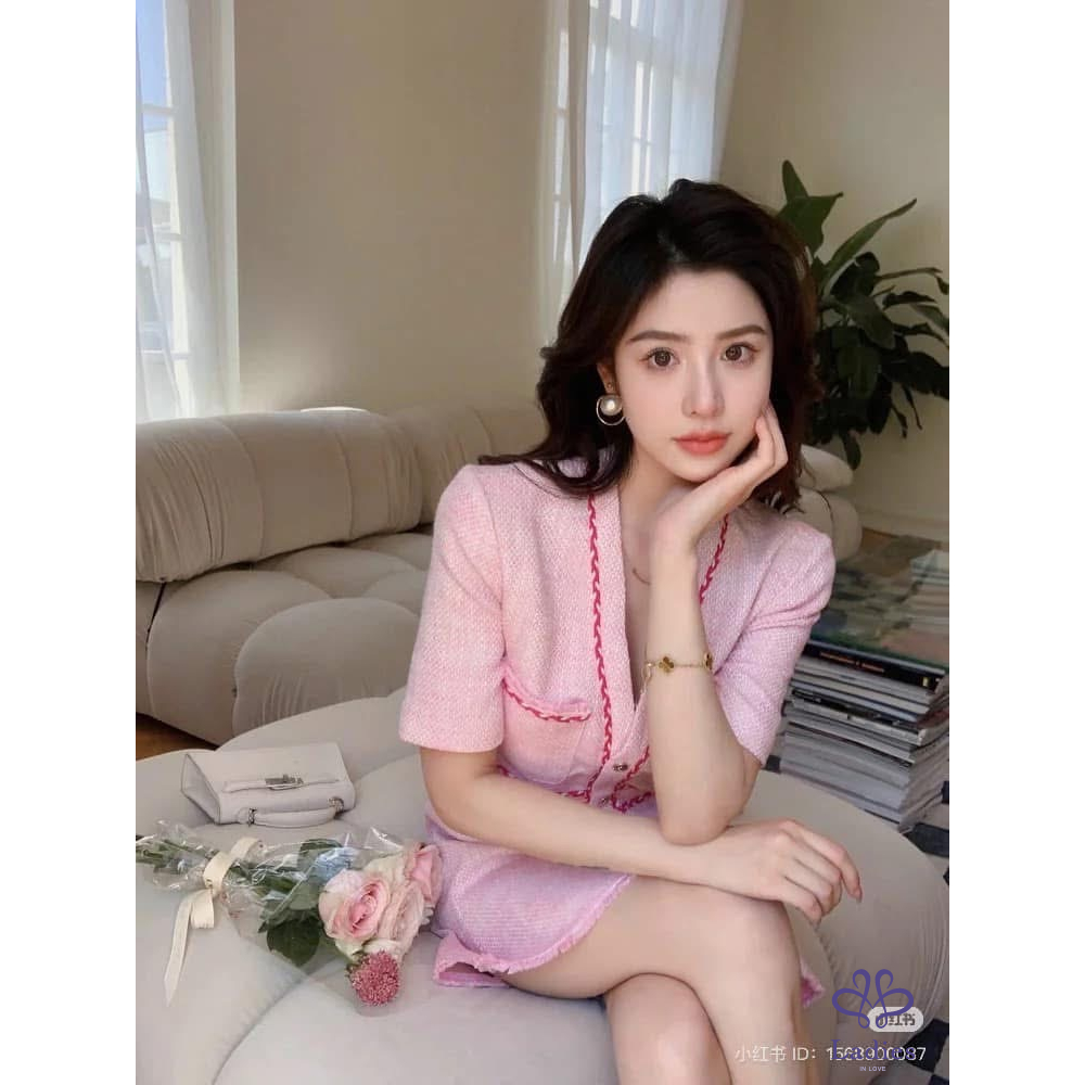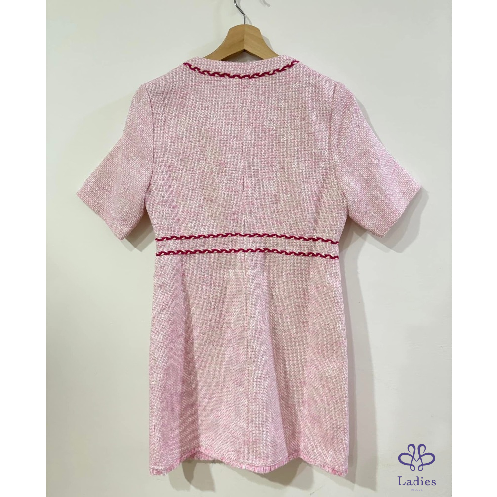 首頁 精品服飾 MAJE 爆款小香風 粉色 粗花呢 洋裝