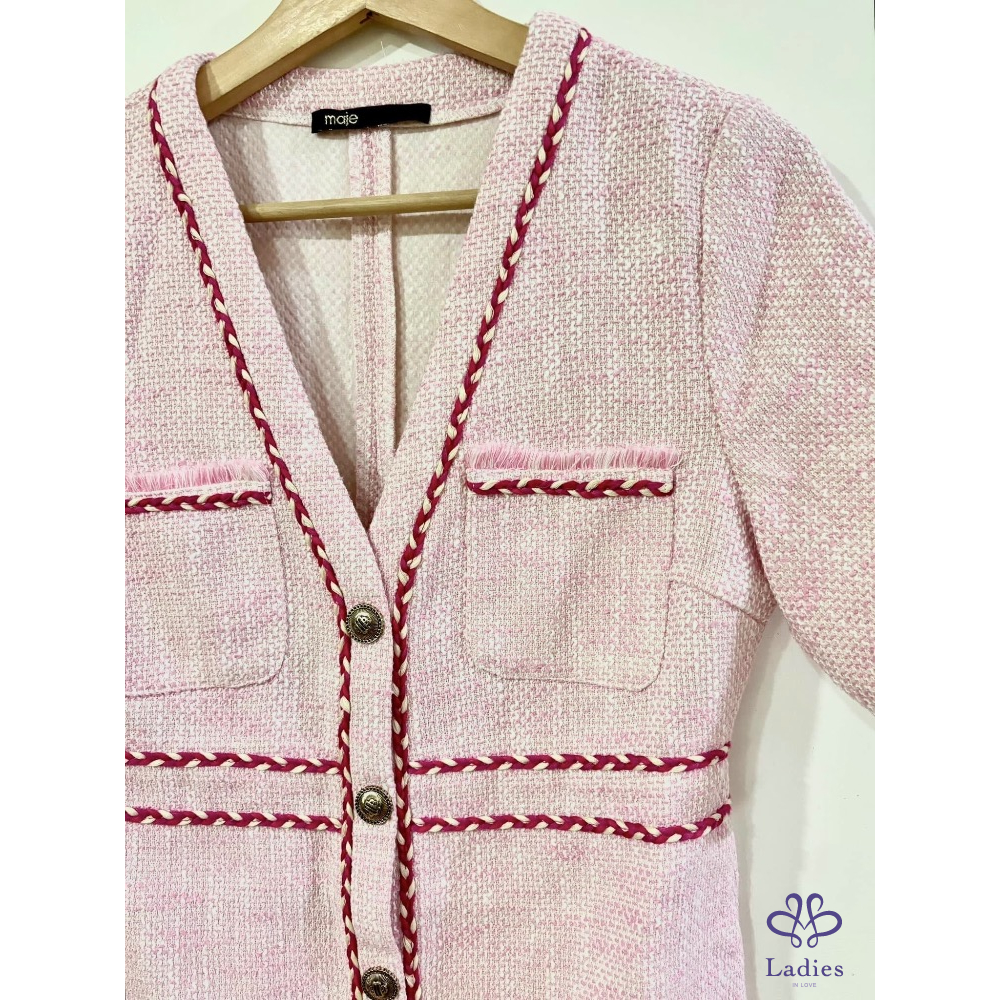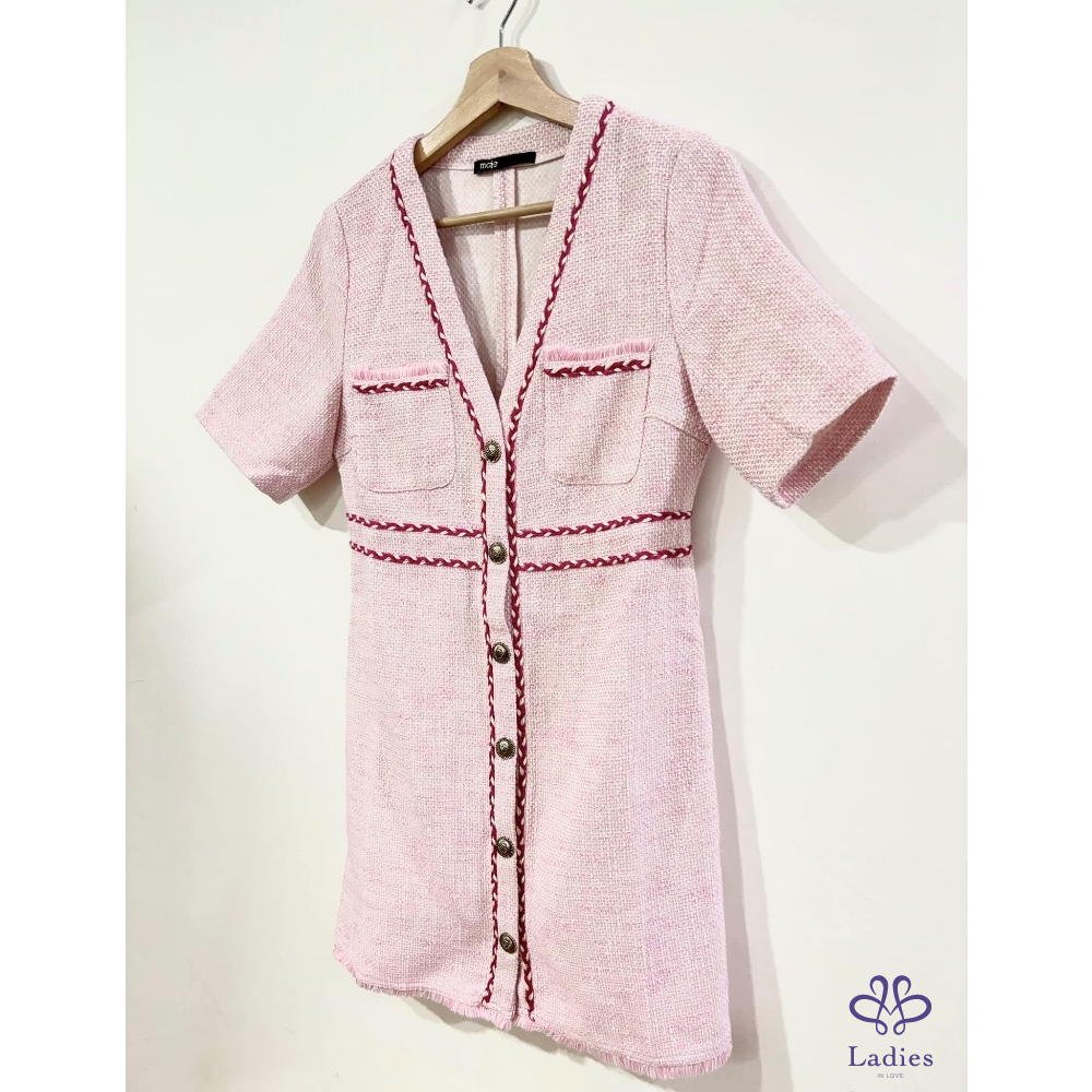 MAJE 爆款小香風 粉色 粗花呢 洋裝